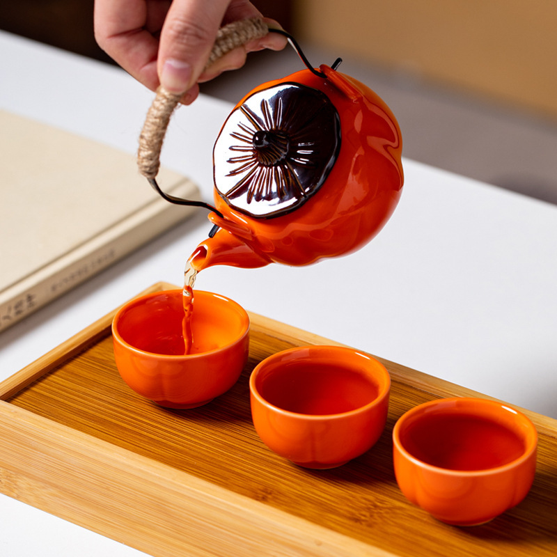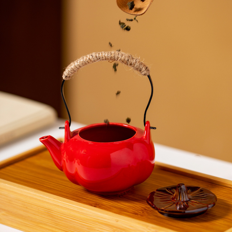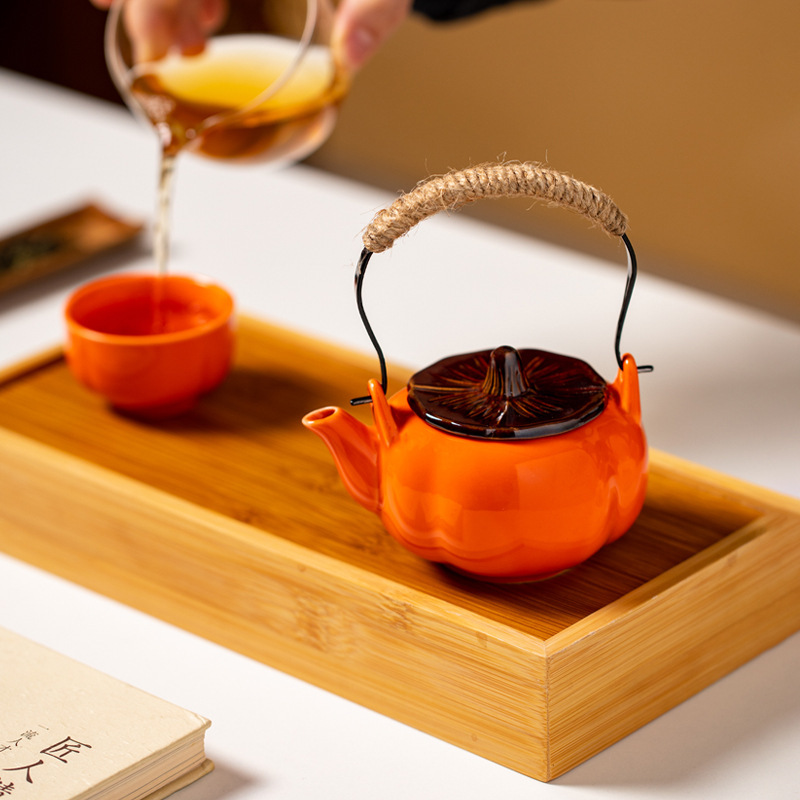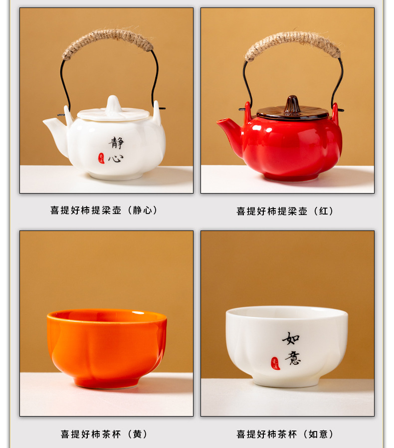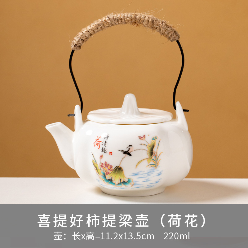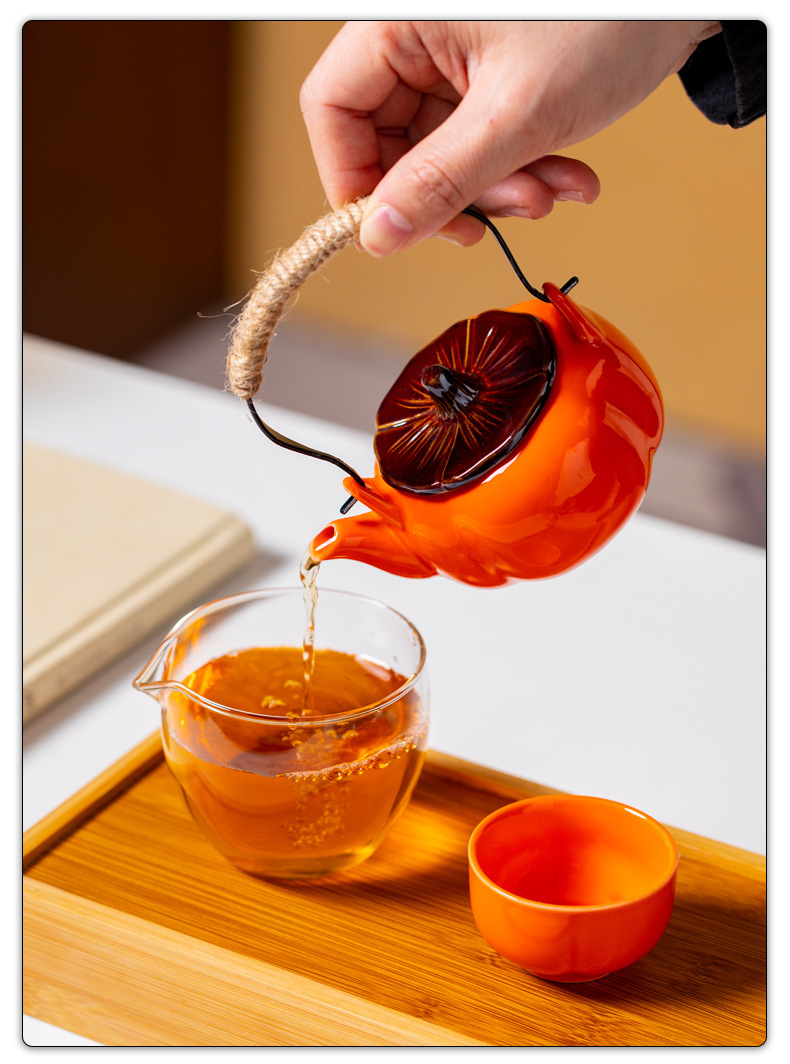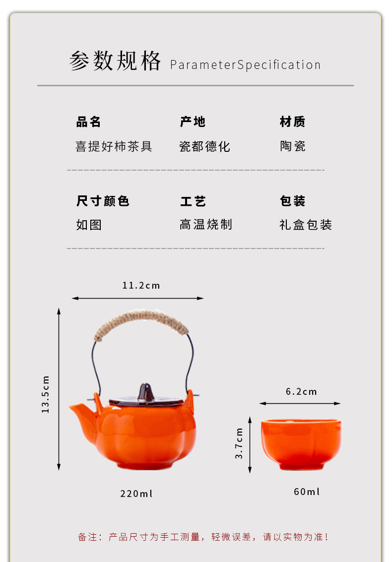 柿柿如意单壶 泡茶壶 小容量提梁壶小手柄茶壶功夫茶具家用过滤孔