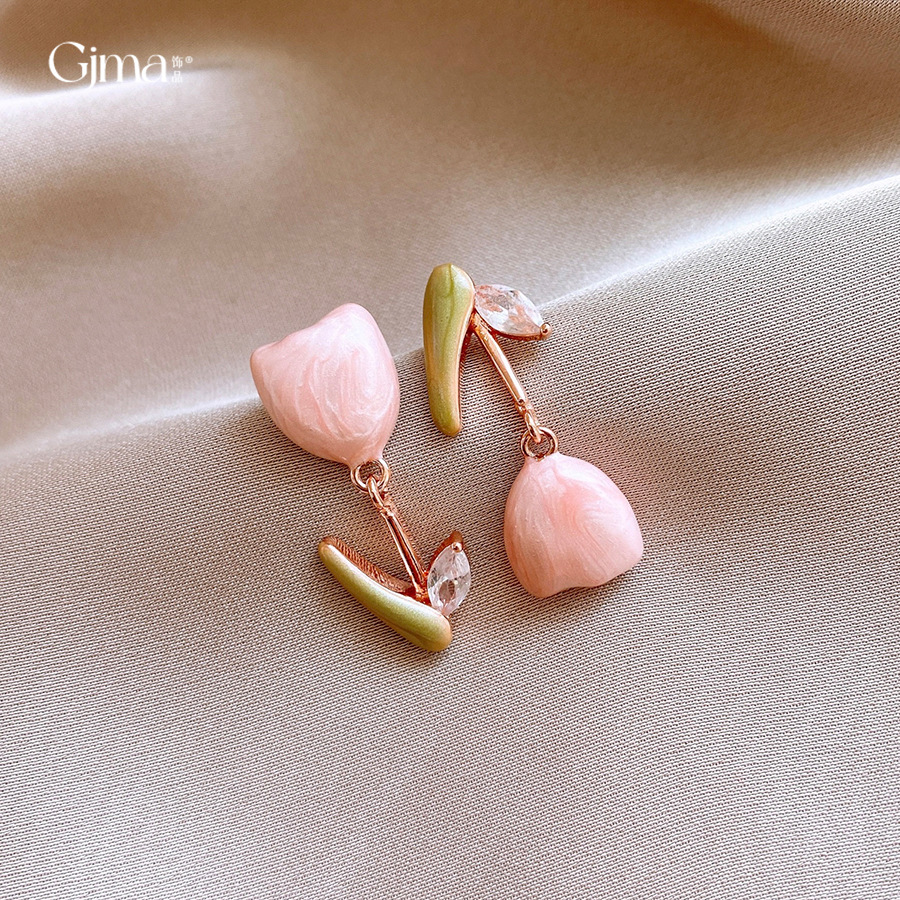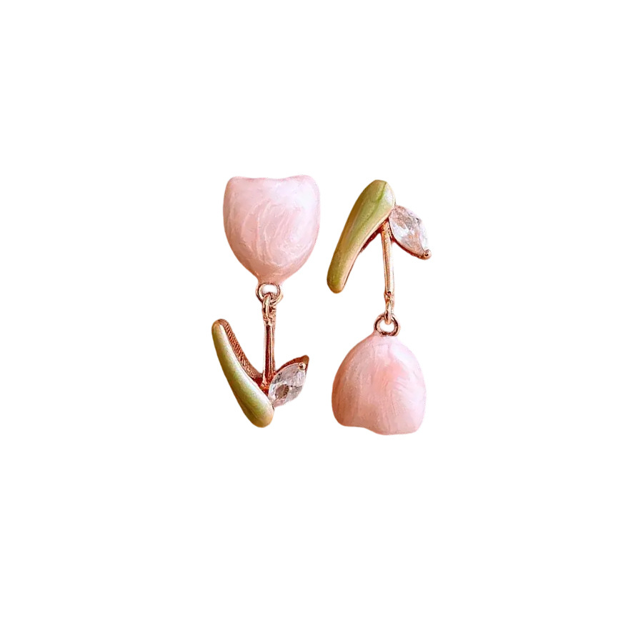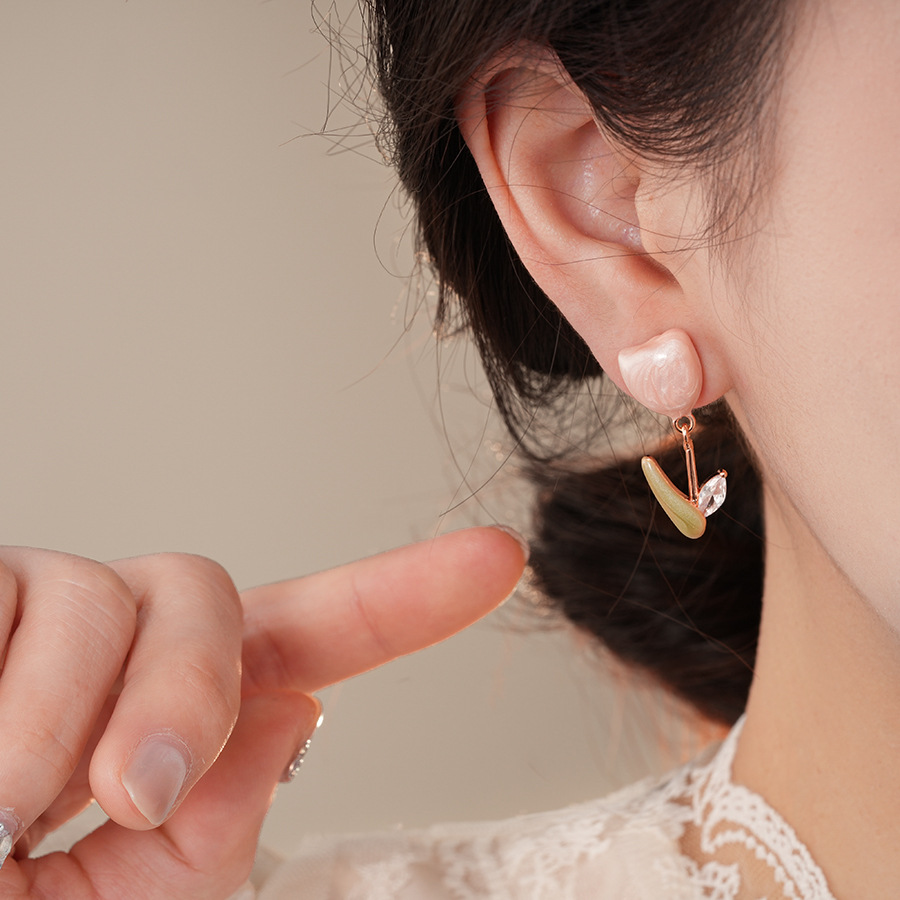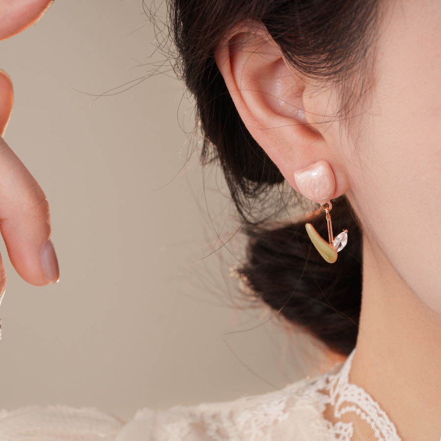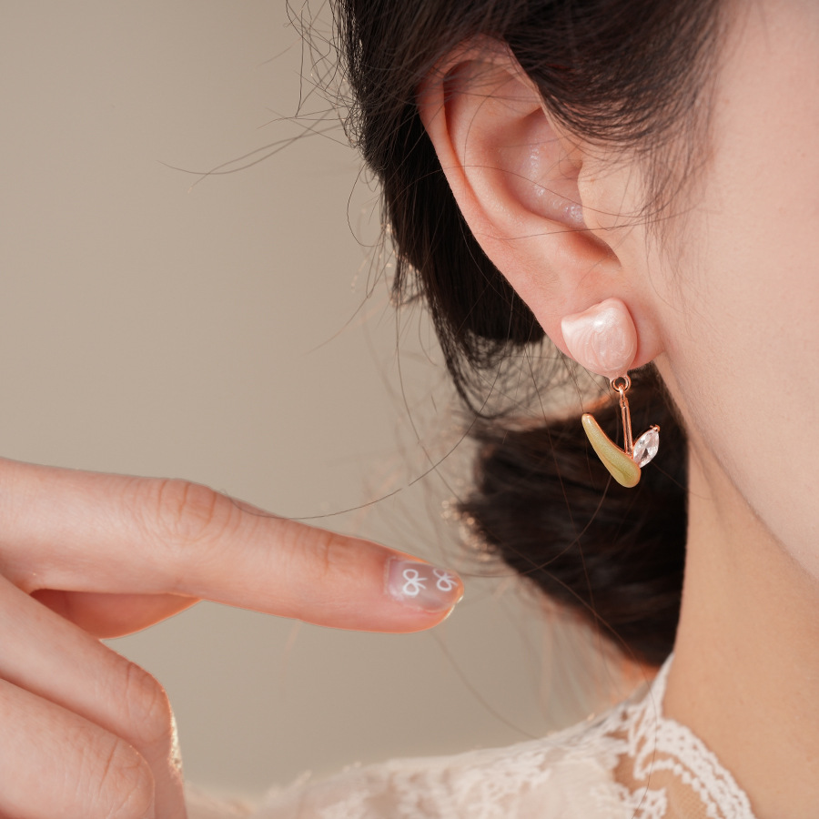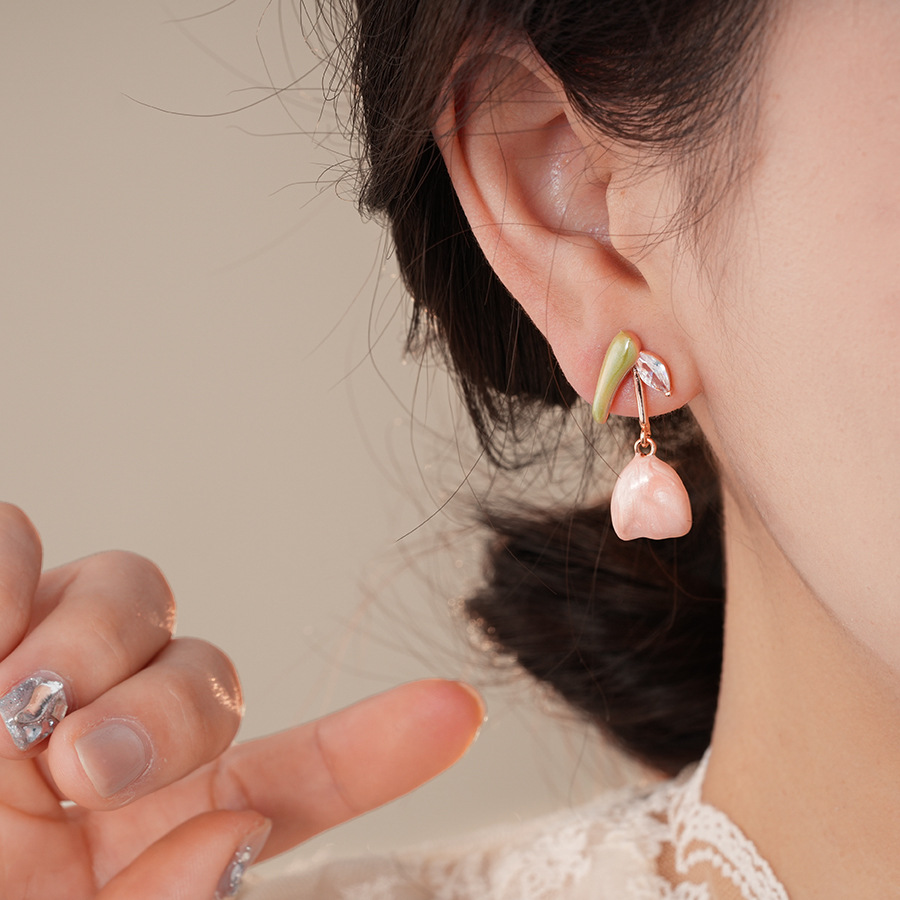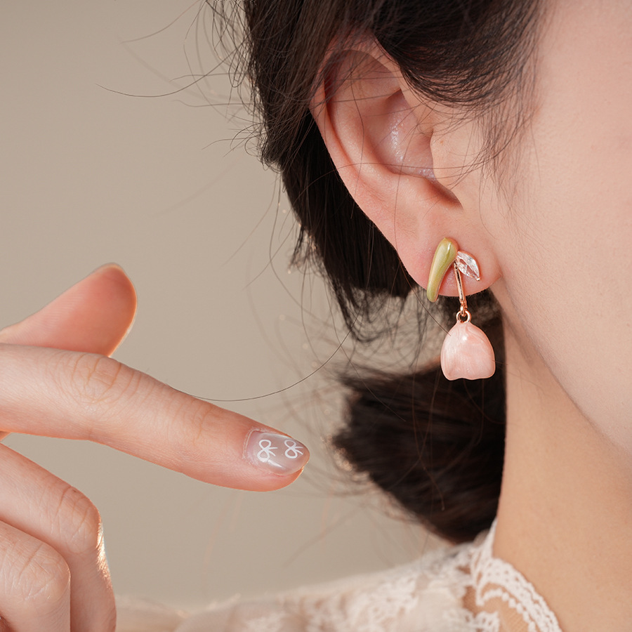 银针粉色滴油锆石郁金香耳钉法式甜美气质耳环时尚百搭高级感耳饰