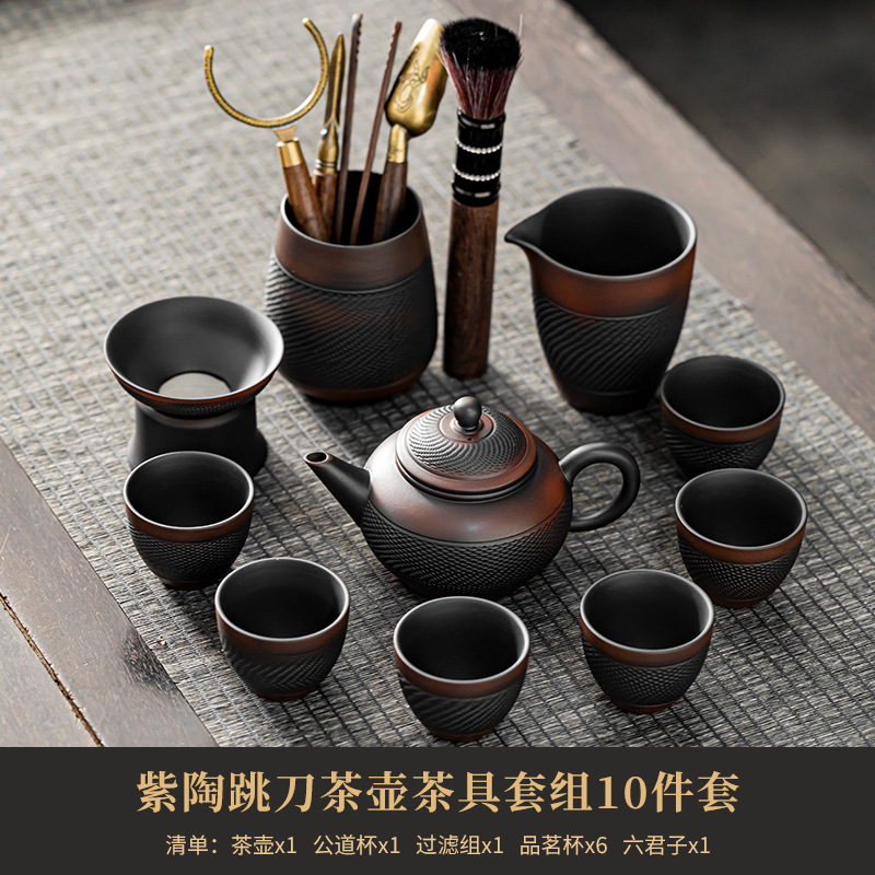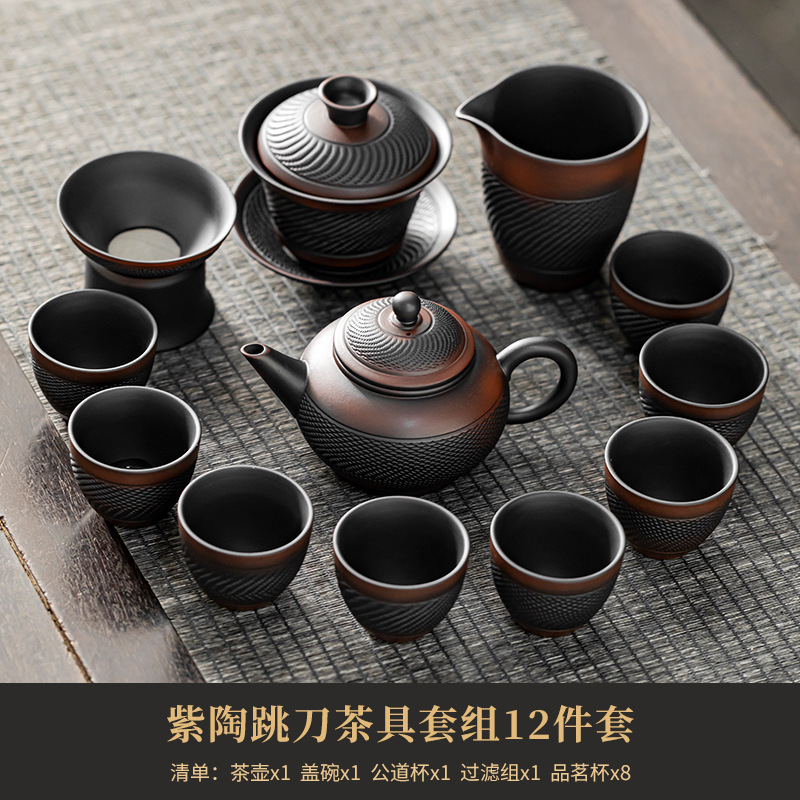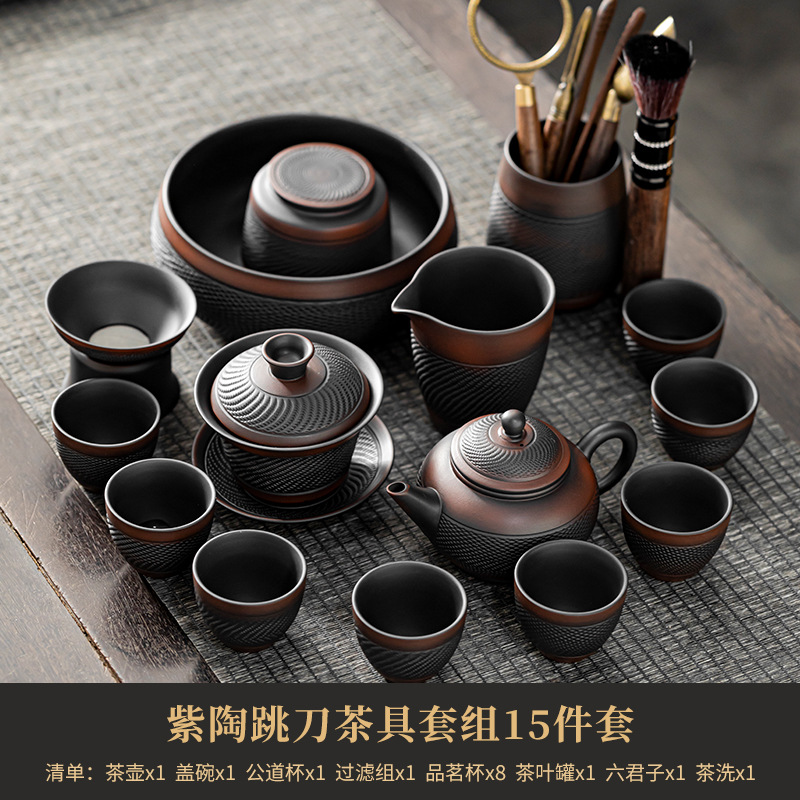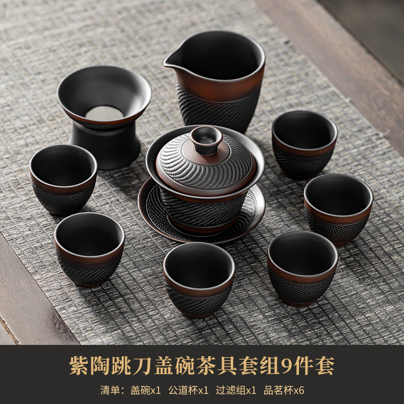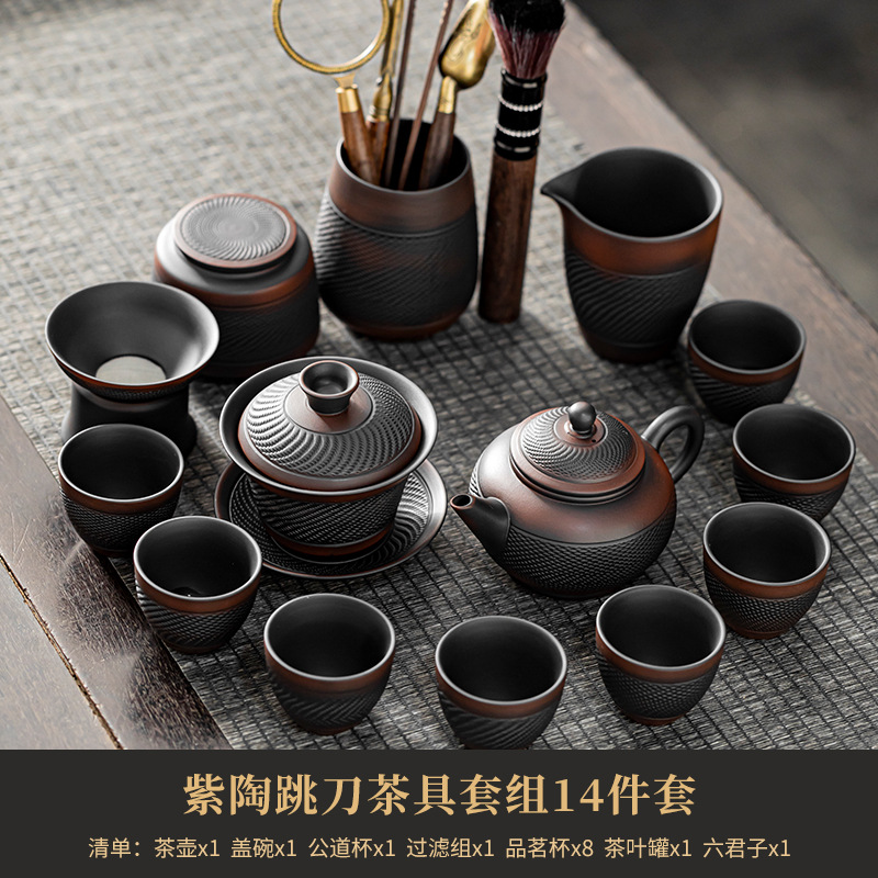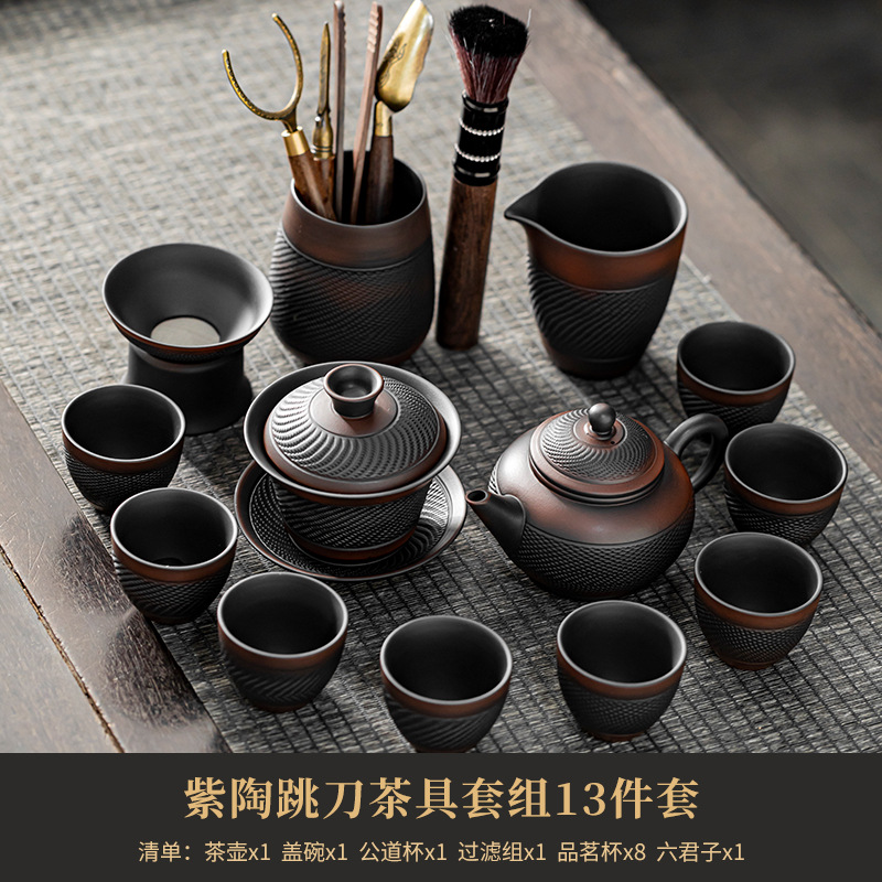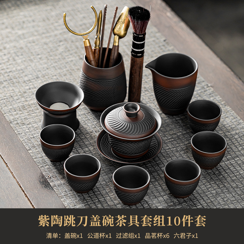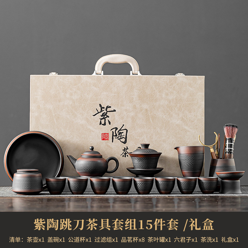 紫陶茶具套装茶壶跳刀高档办公高档陶瓷盖碗复古功夫茶具套装礼盒