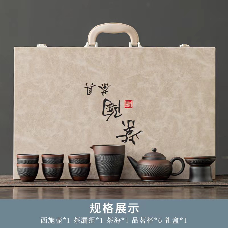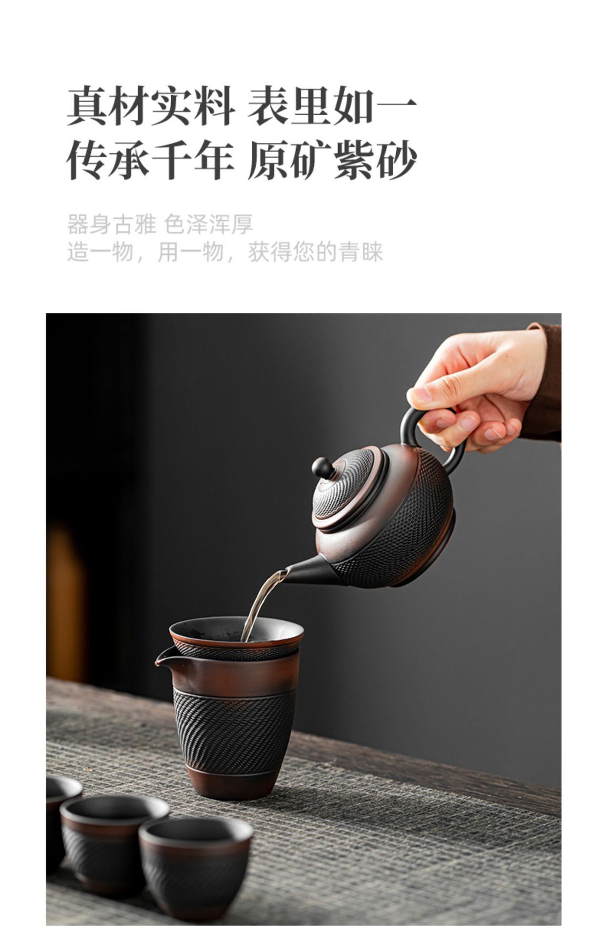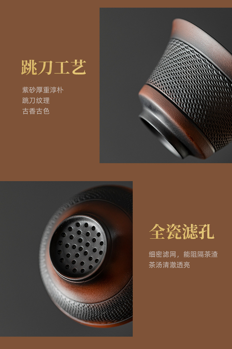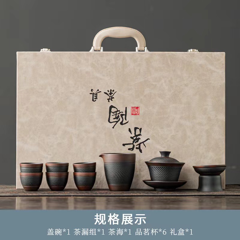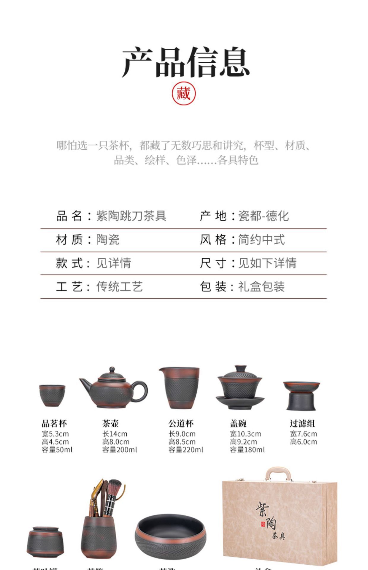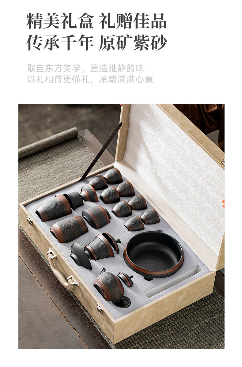 紫陶茶具套装茶壶跳刀高档办公高档陶瓷盖碗复古功夫茶具套装礼盒