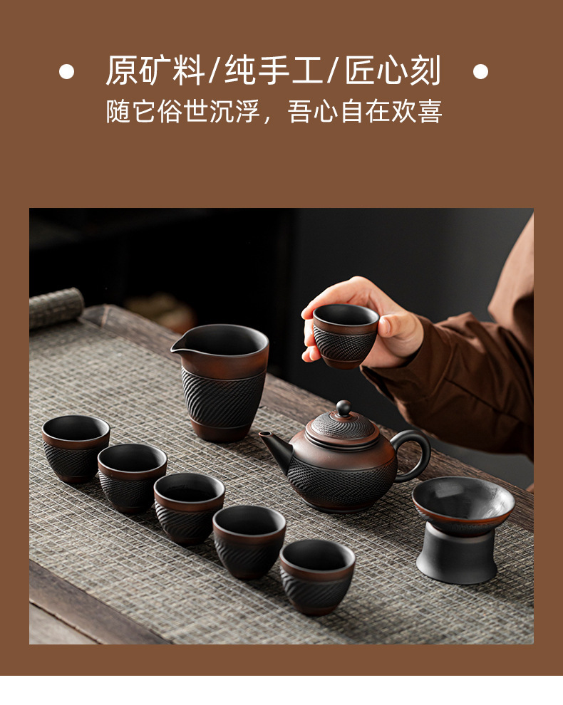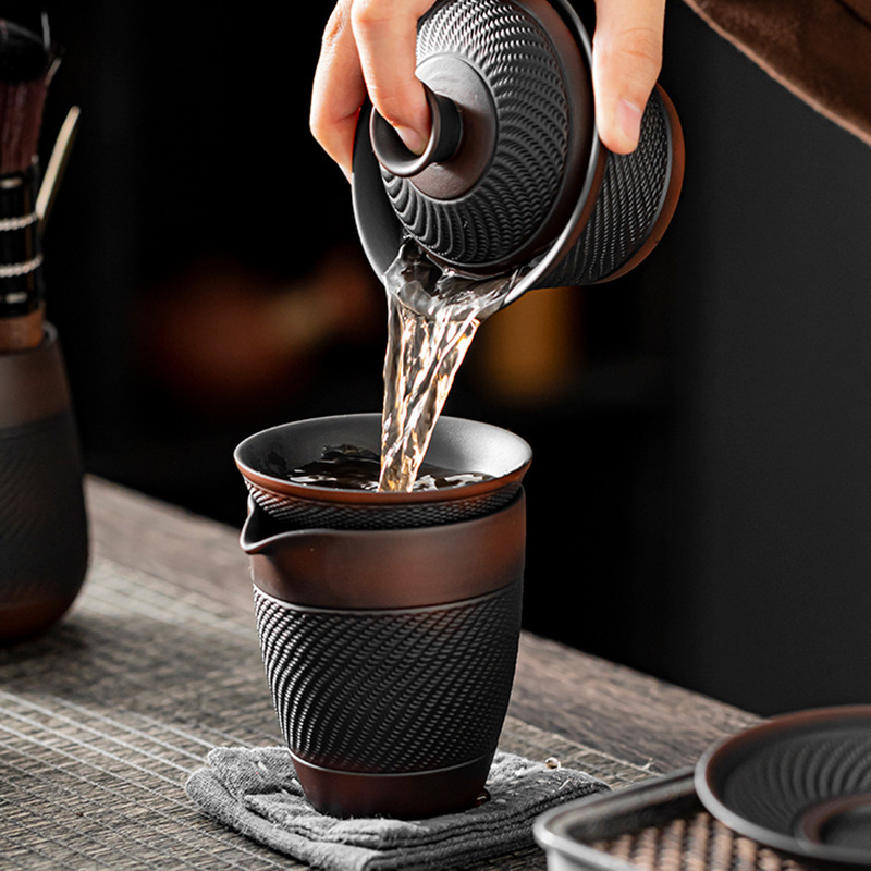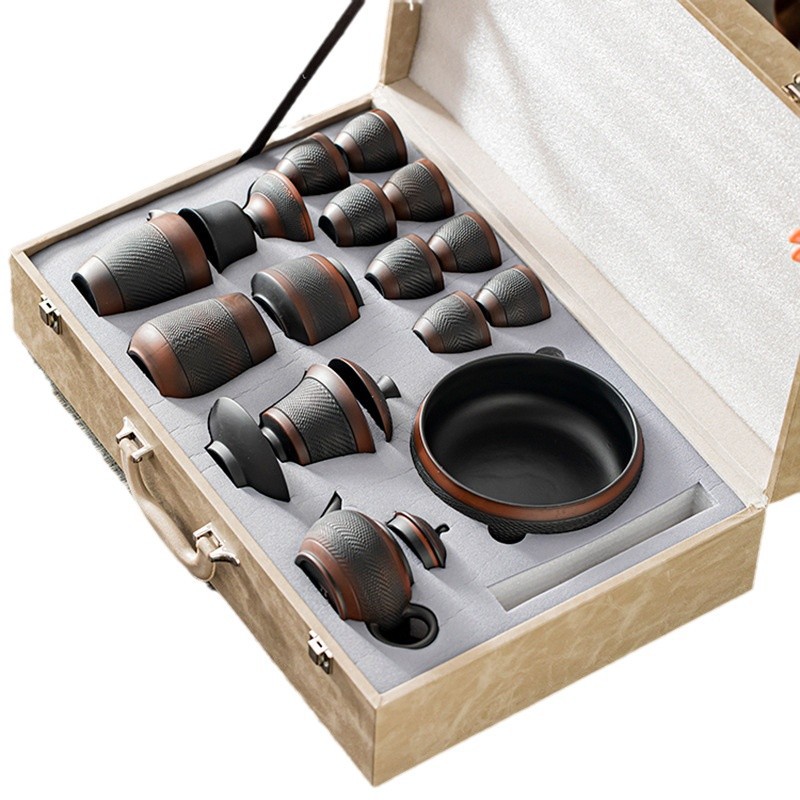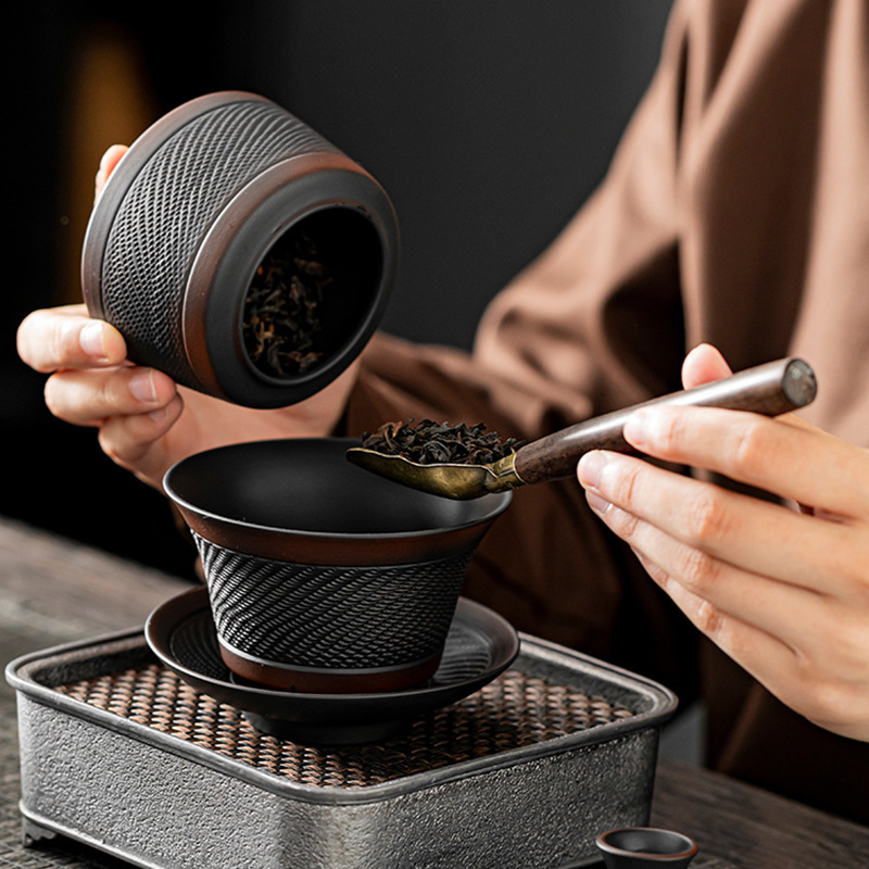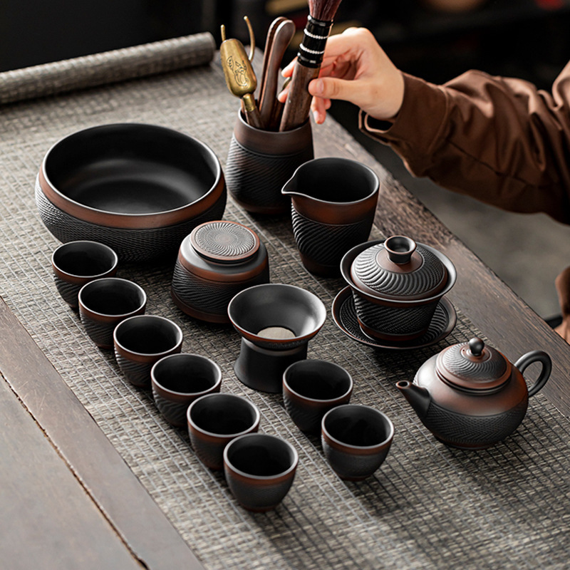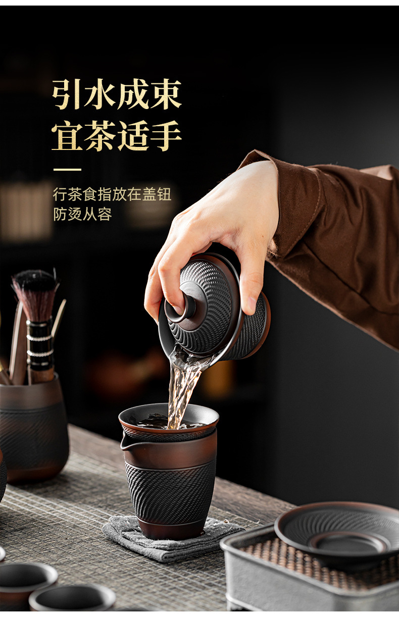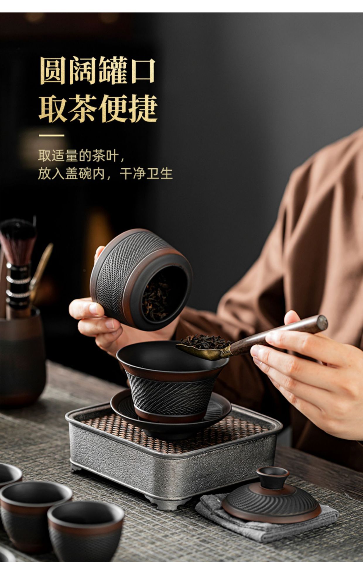紫陶茶具套装茶壶跳刀高档办公高档陶瓷盖碗复古功夫茶具套装礼盒