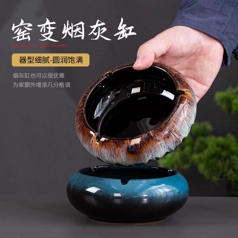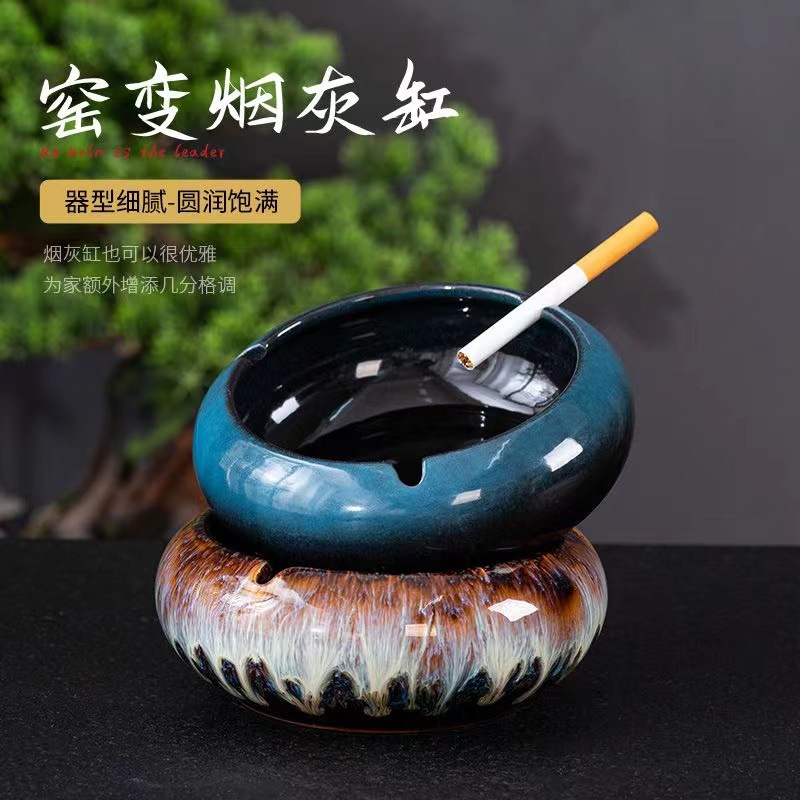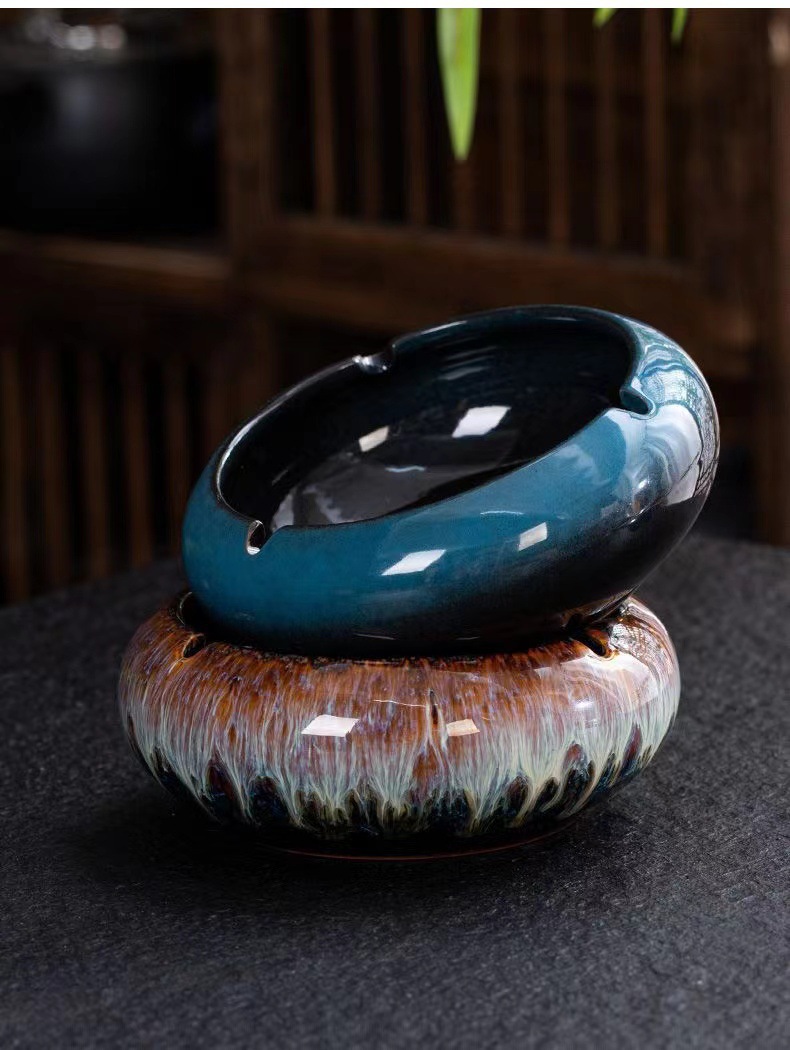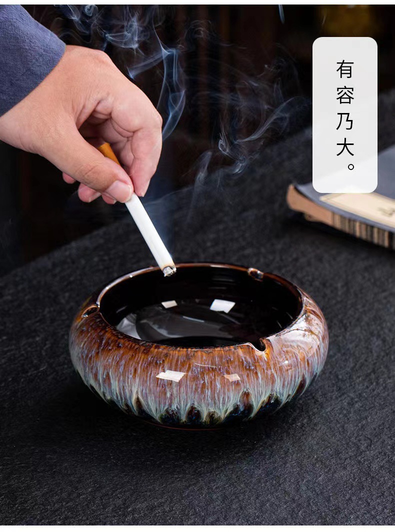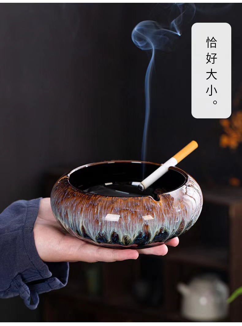 陶瓷烟灰缸烟缸客厅个性办公室防飞灰复古潮流中式轻奢创意批发