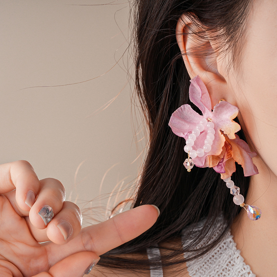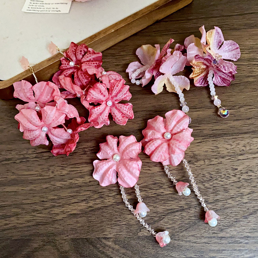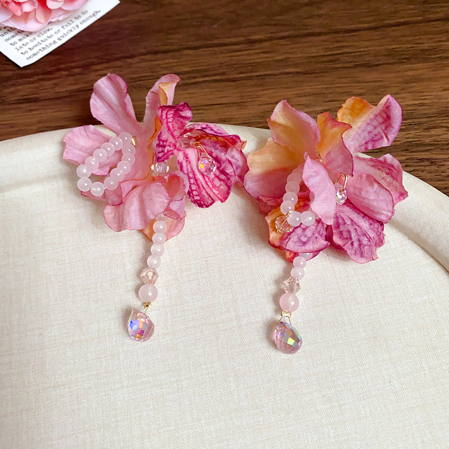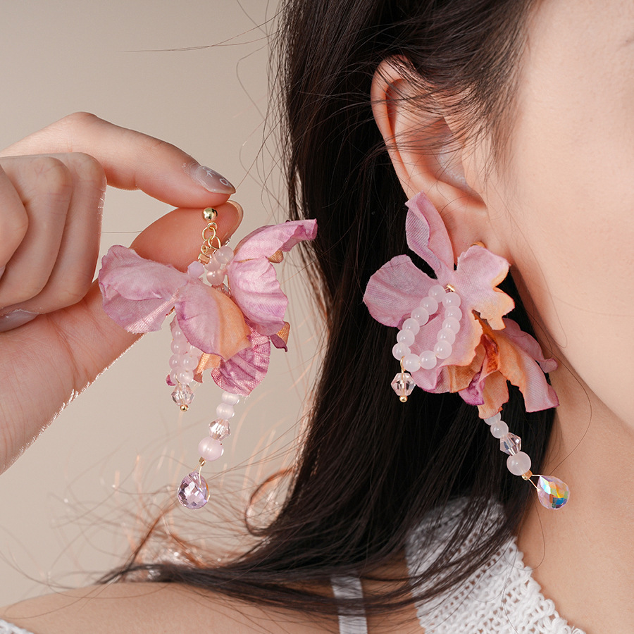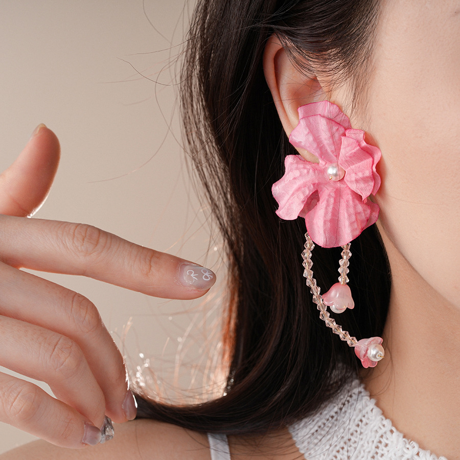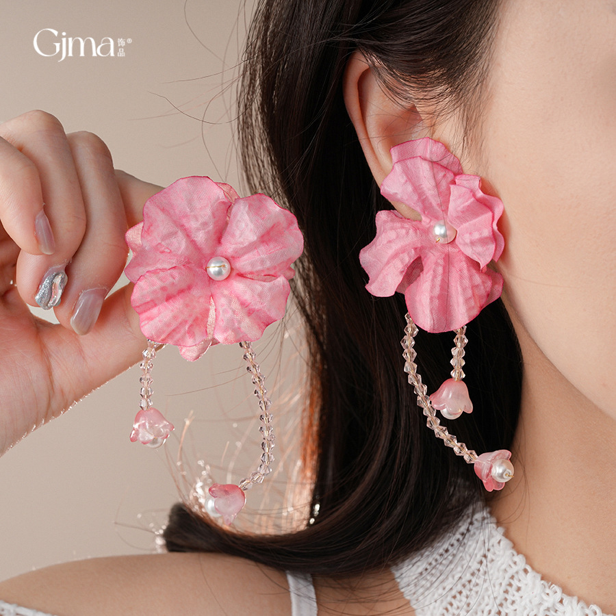 春夏氛围感玻璃珠花朵流苏耳环女海边度假风耳坠甜美夸张个性耳饰