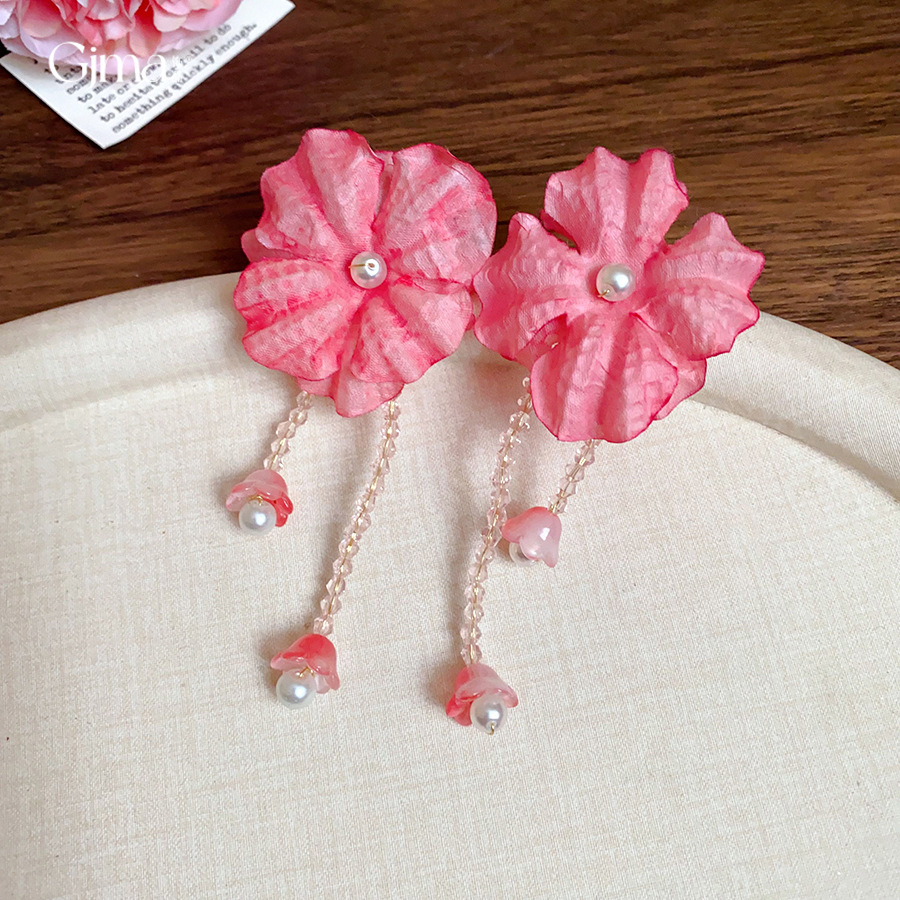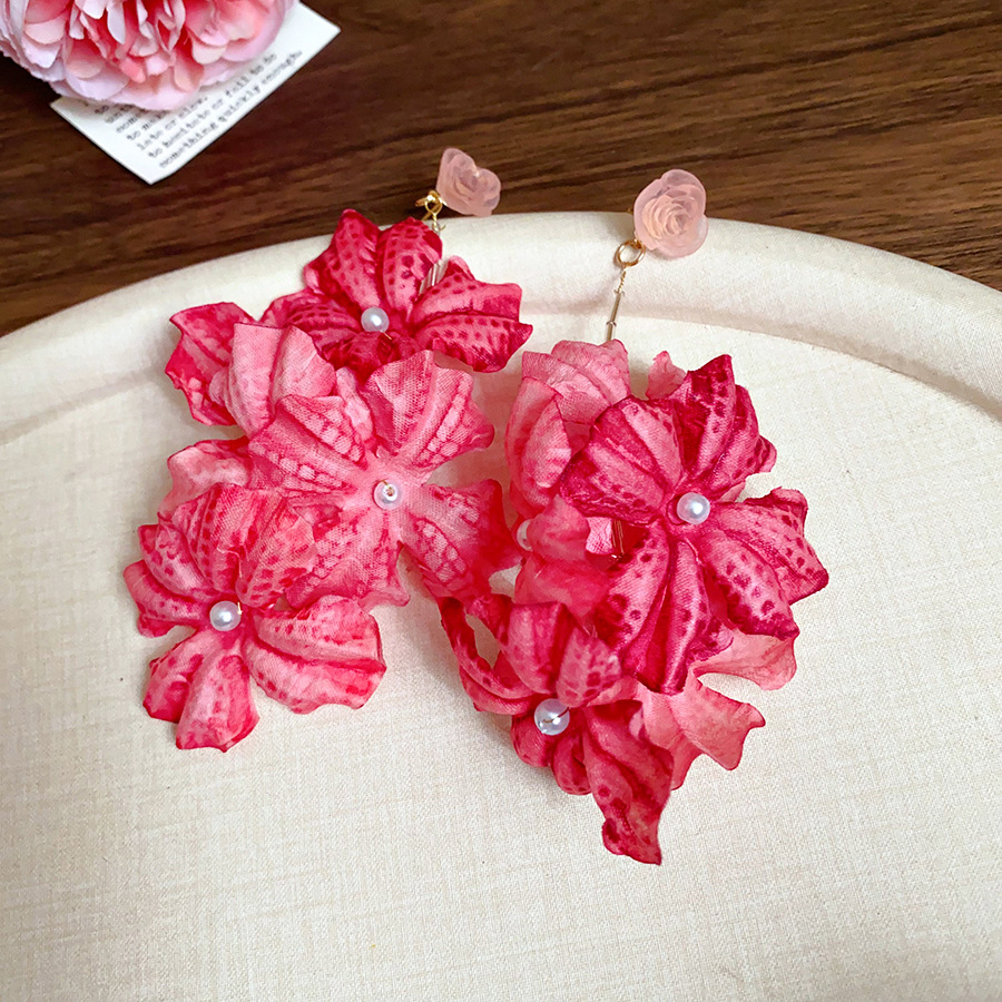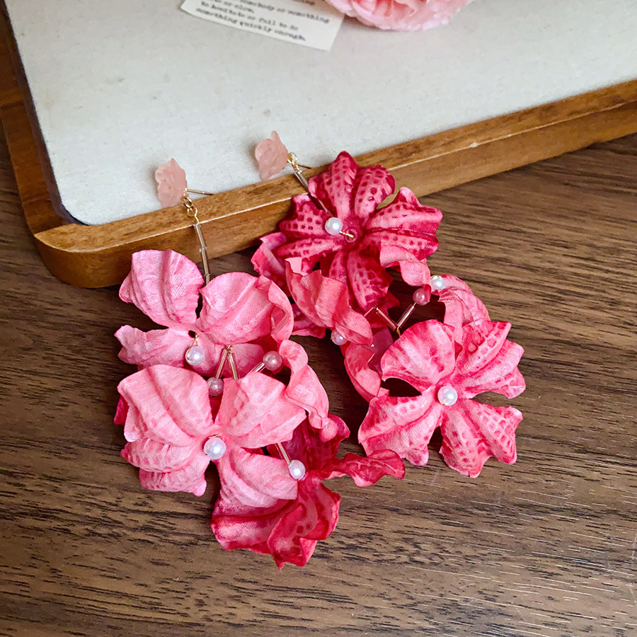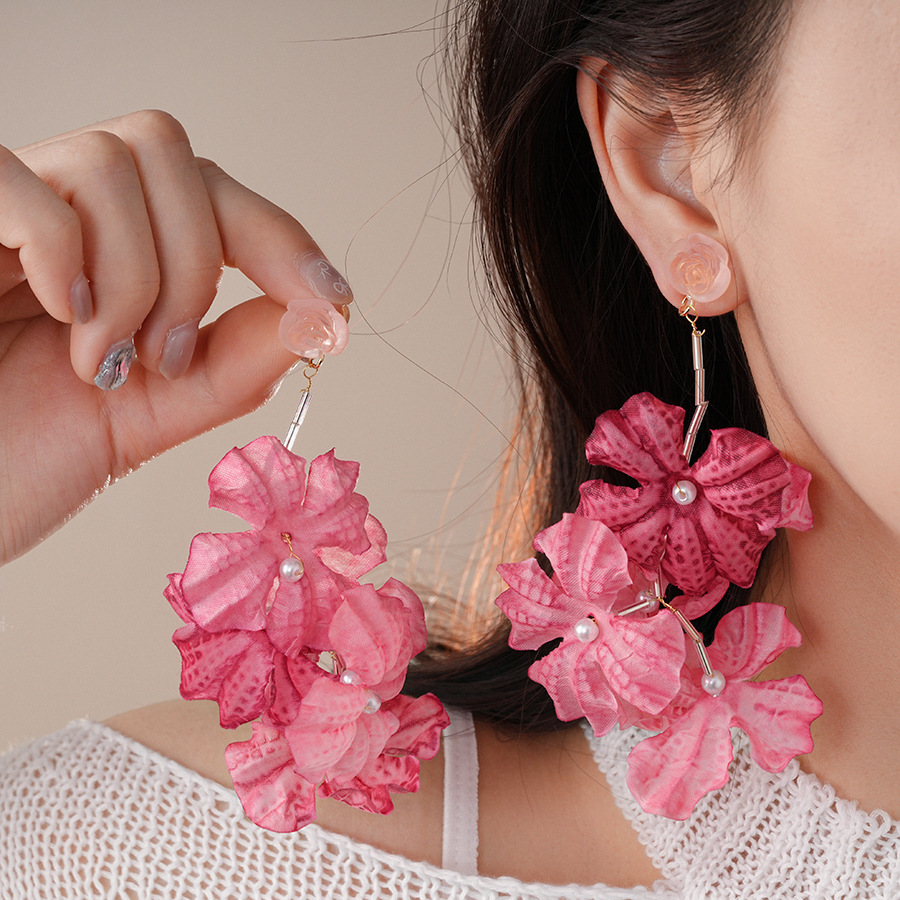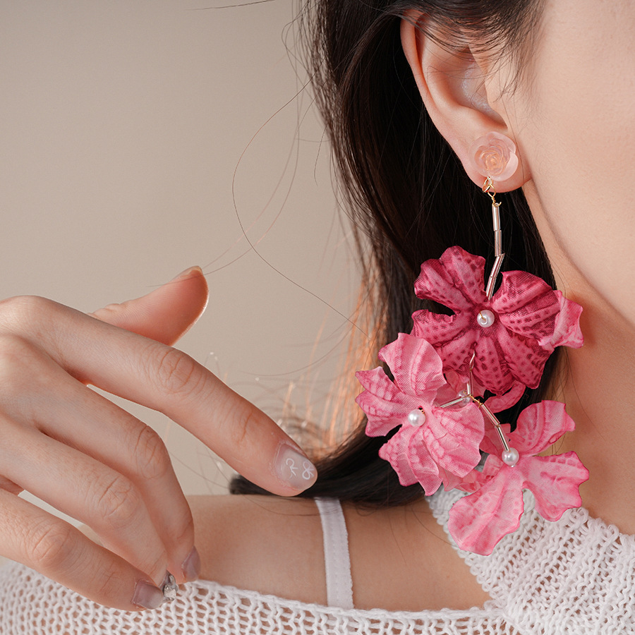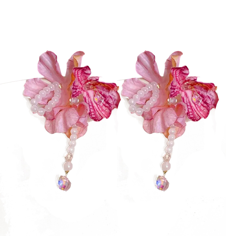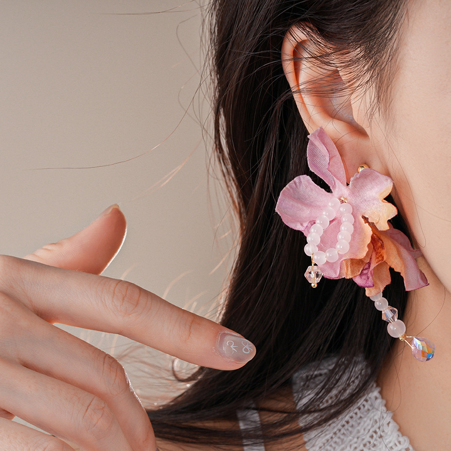 春夏氛围感玻璃珠花朵流苏耳环女海边度假风耳坠甜美夸张个性耳饰