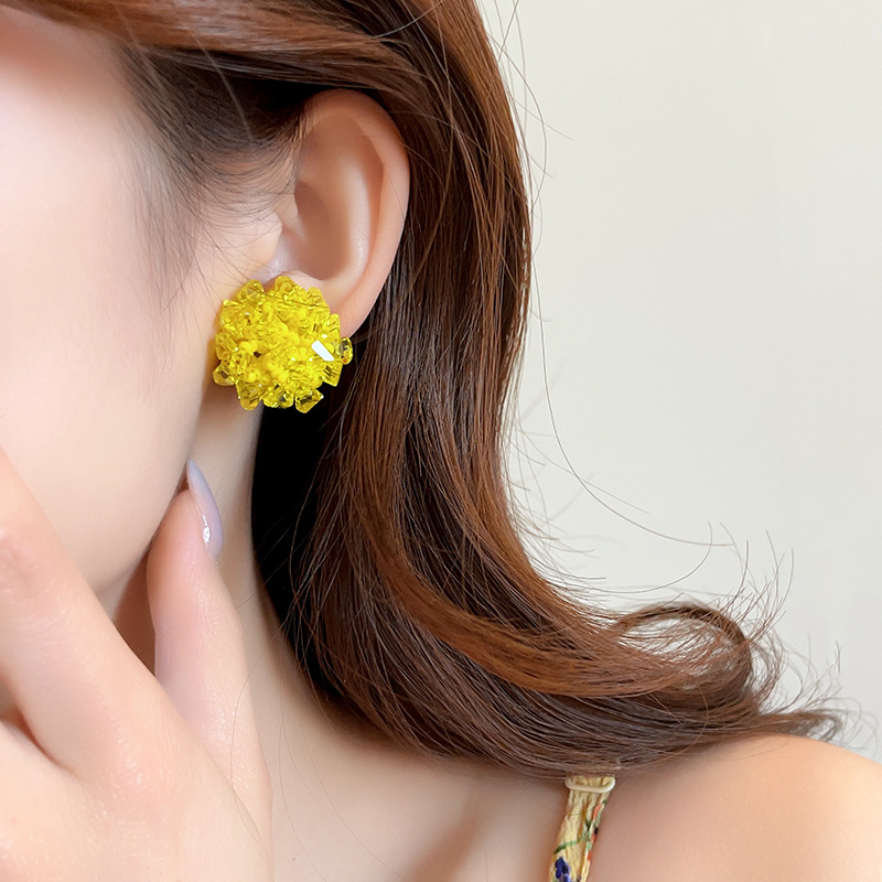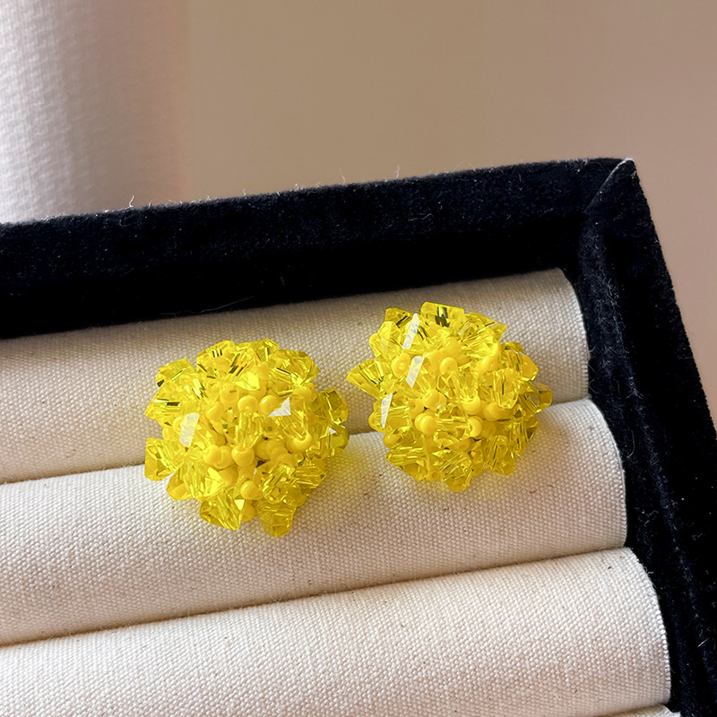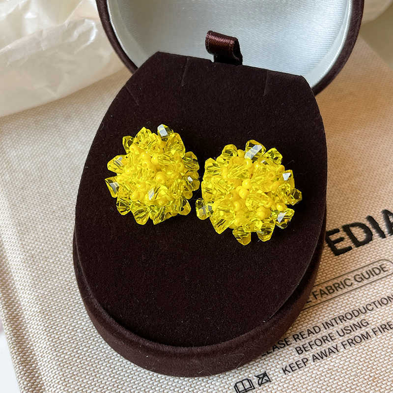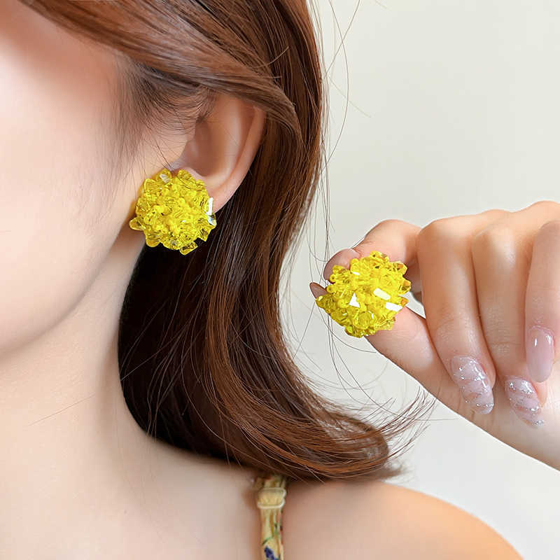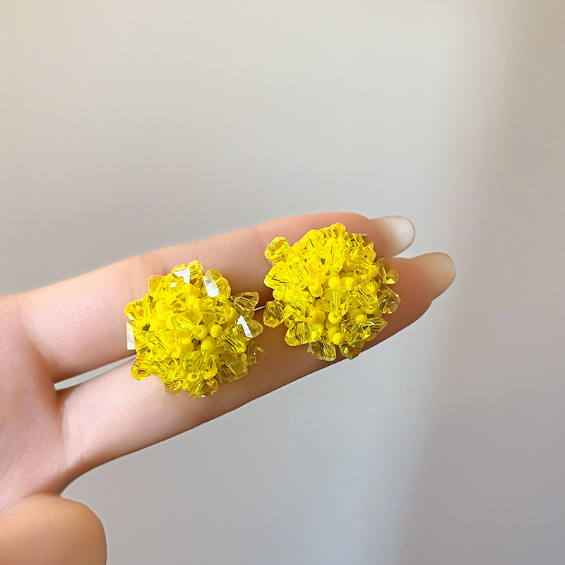 银针黄色玻璃珠米珠花簇耳钉春夏甜美小清新耳环轻奢高级感耳饰女