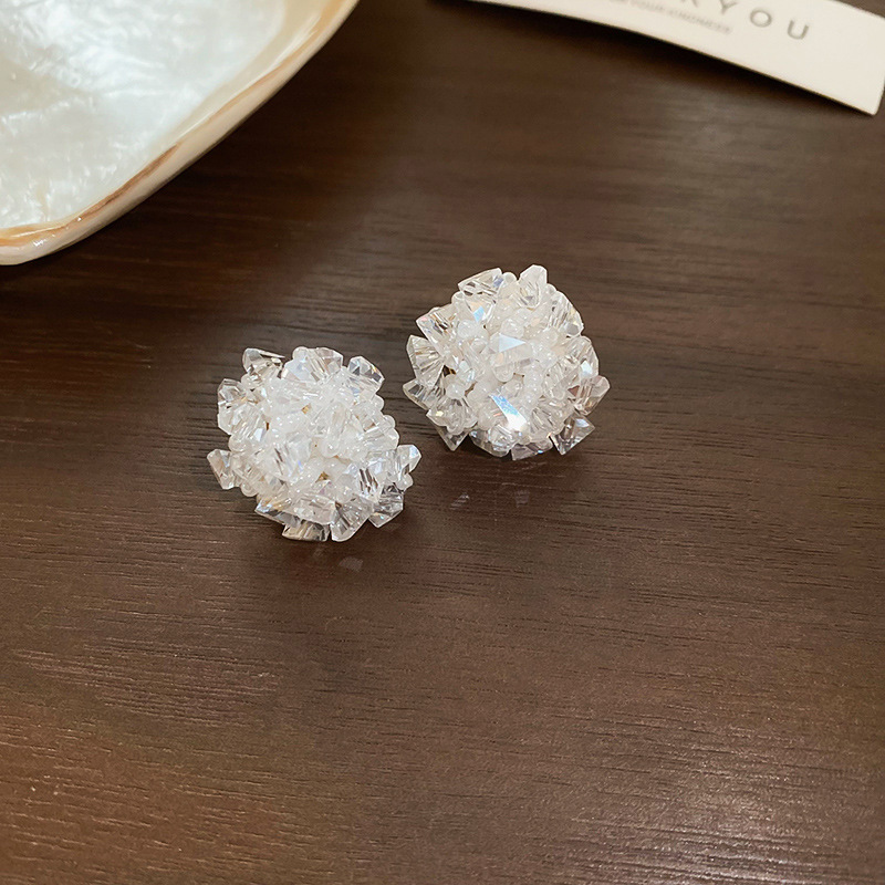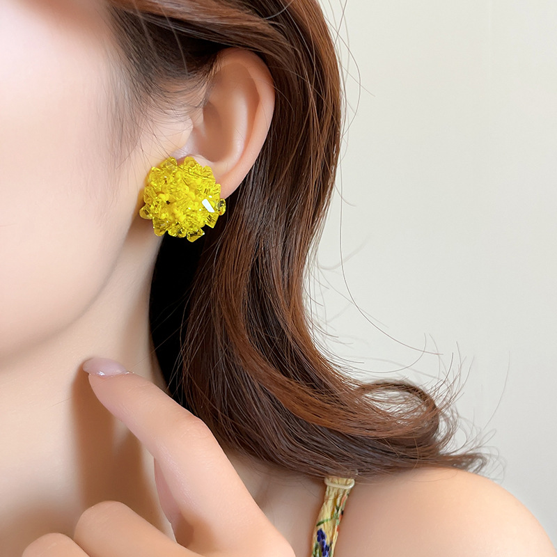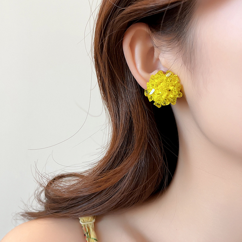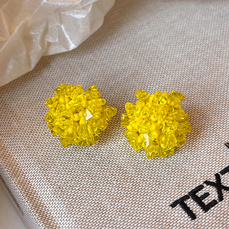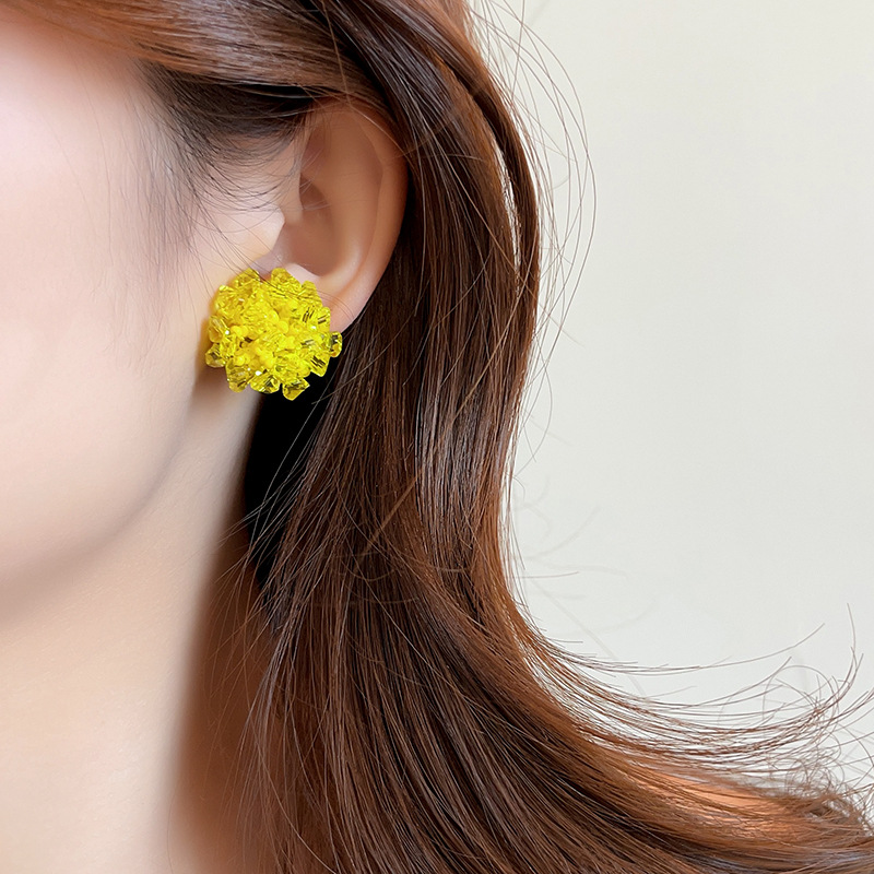 银针黄色玻璃珠米珠花簇耳钉春夏甜美小清新耳环轻奢高级感耳饰女