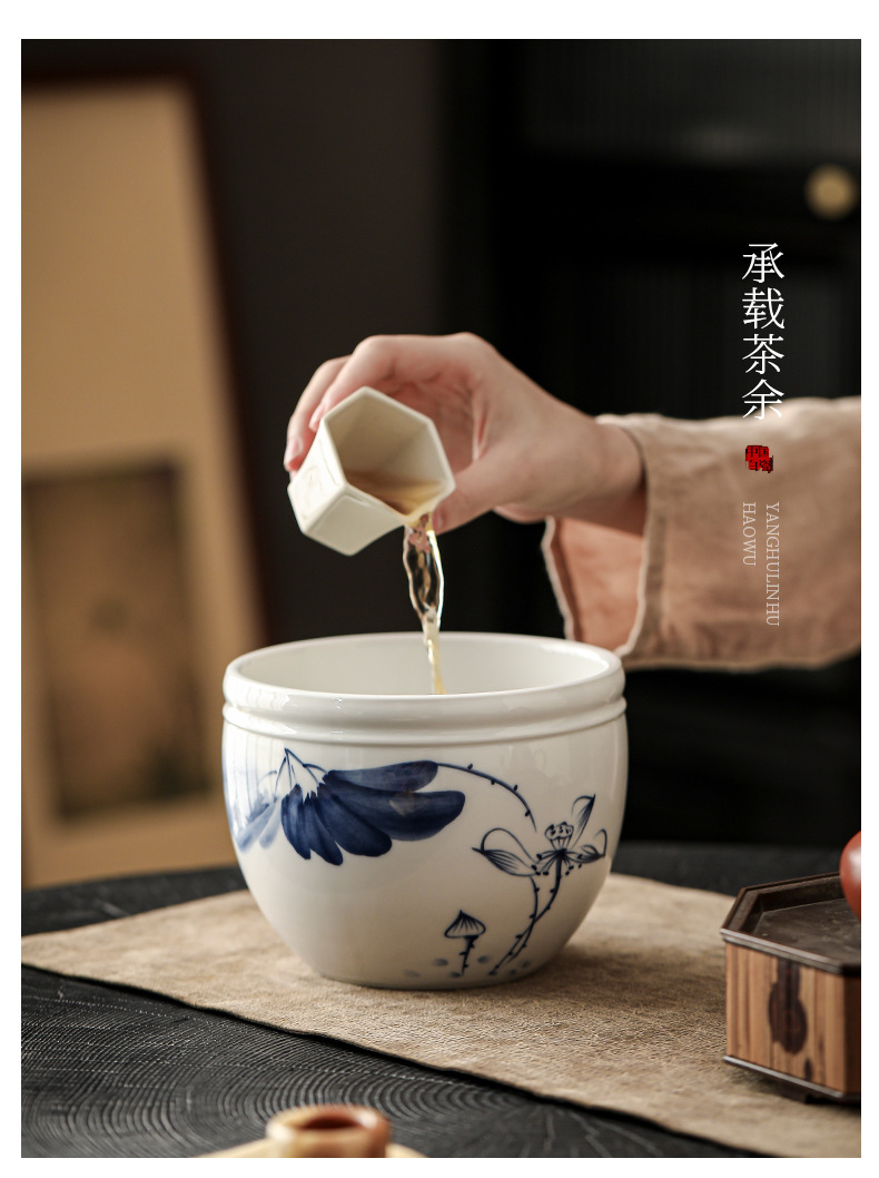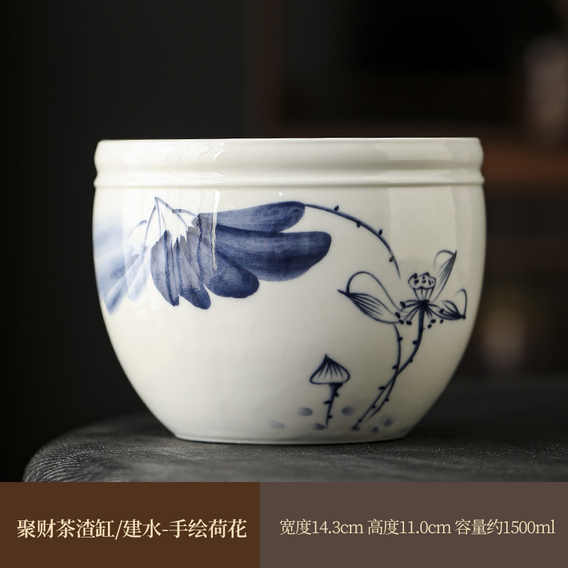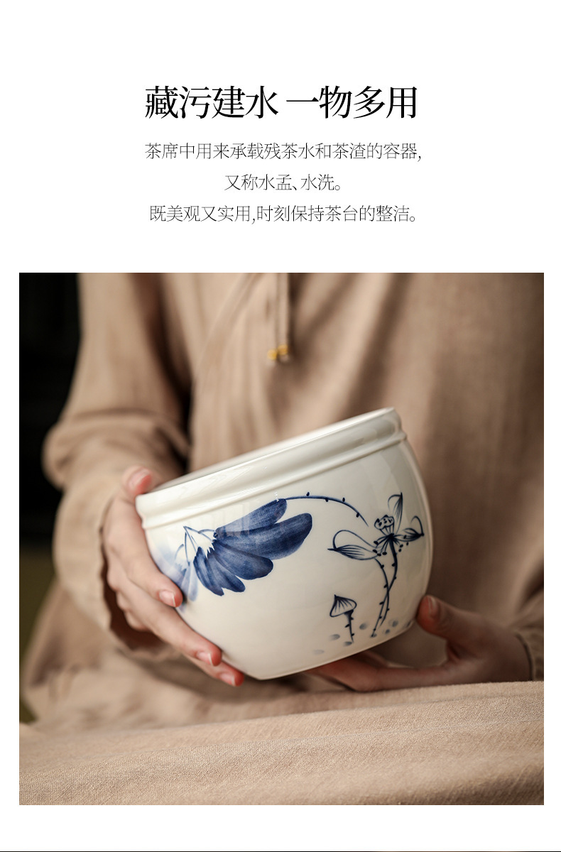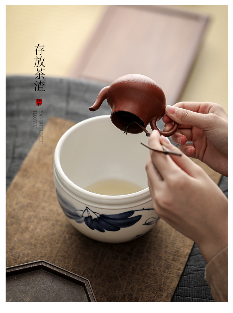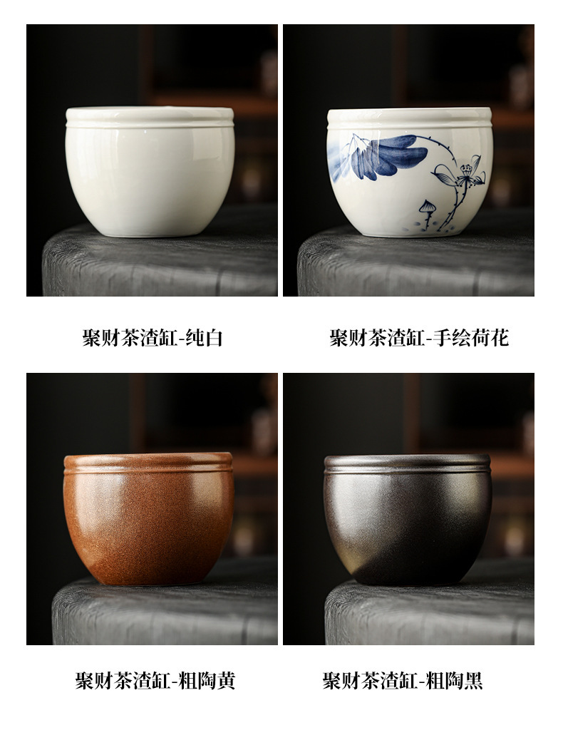 陶瓷茶渣缸茶洗家用茶洗带盖茶钵复古建水钵型茶渣桶孟大号杯水洗