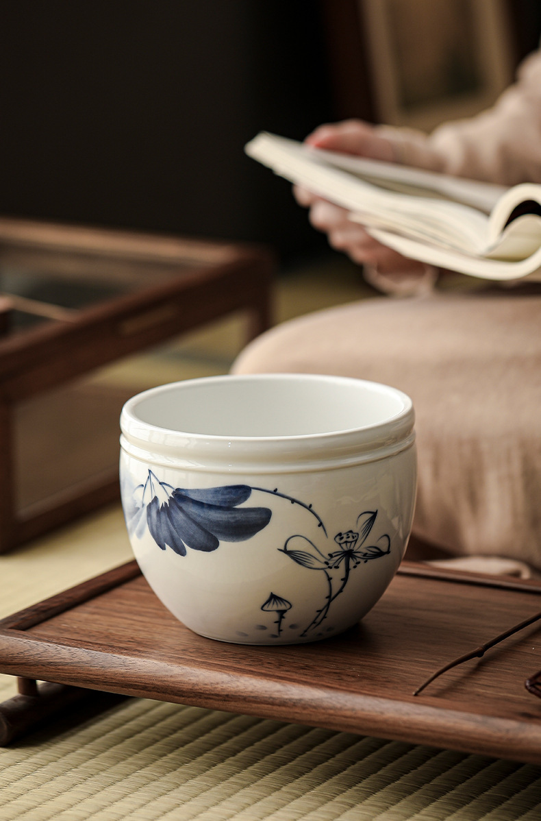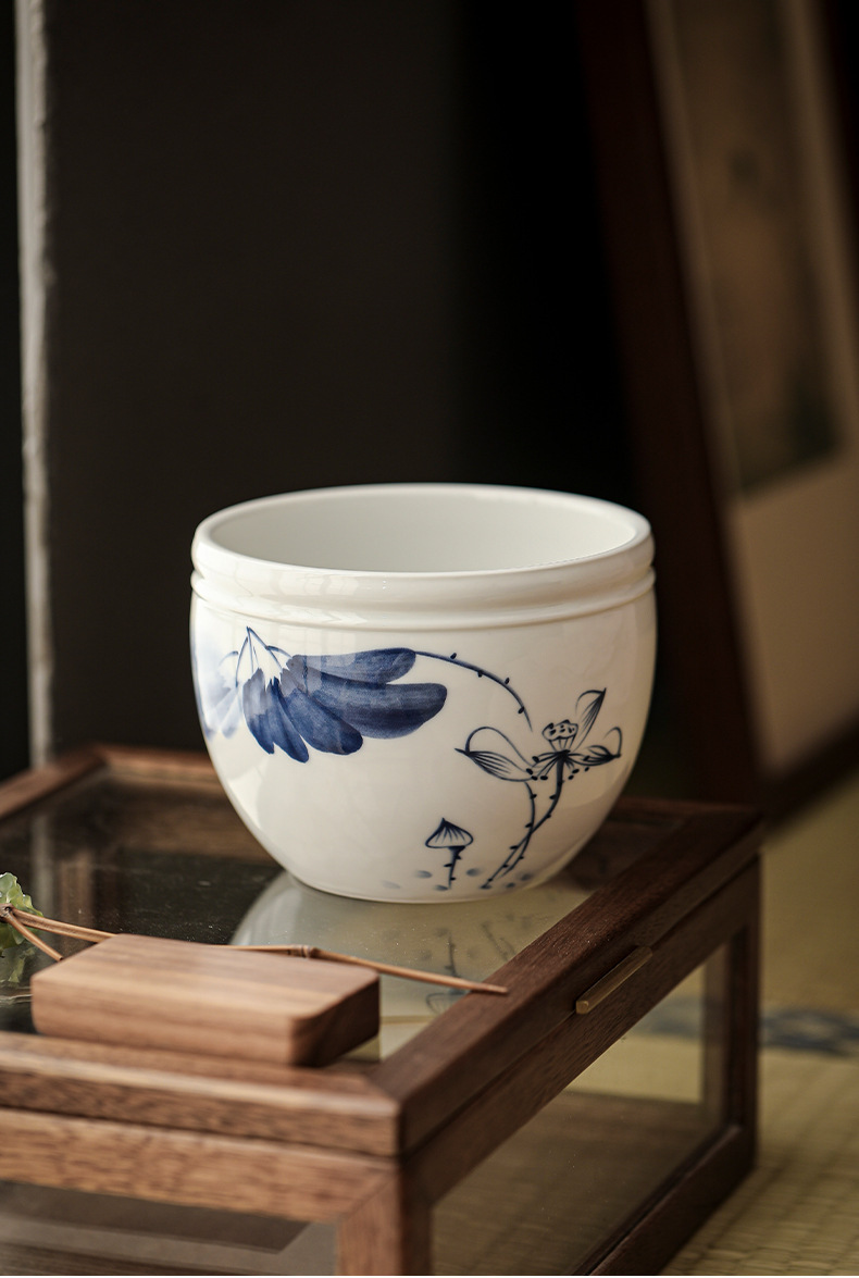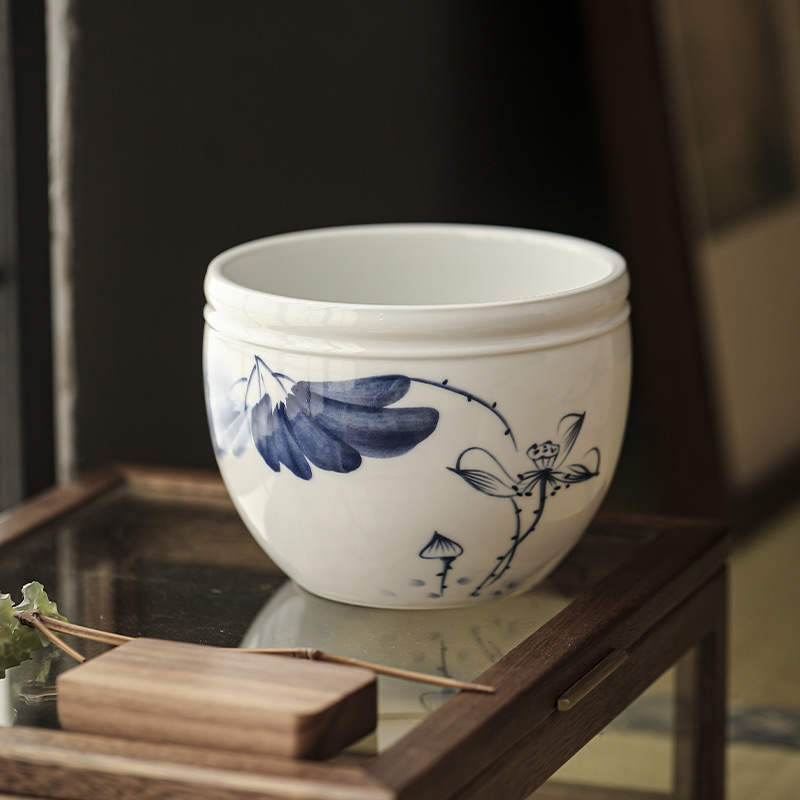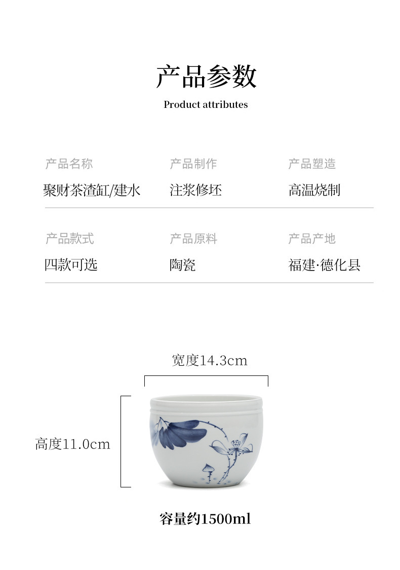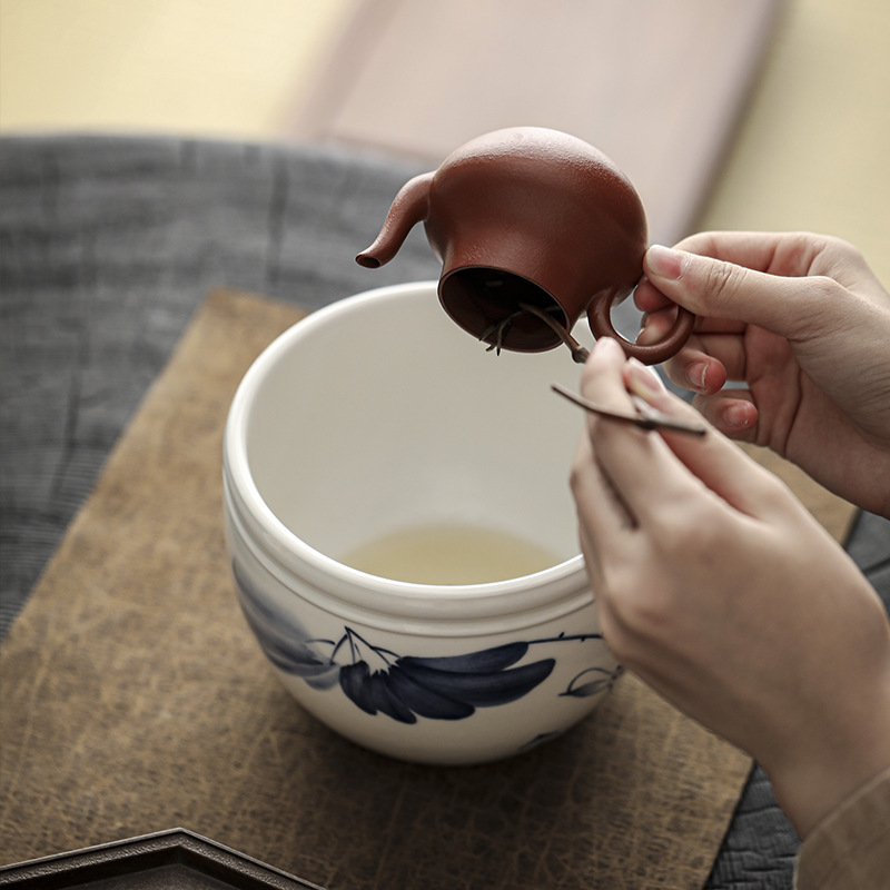 陶瓷茶渣缸茶洗家用茶洗带盖茶钵复古建水钵型茶渣桶孟大号杯水洗