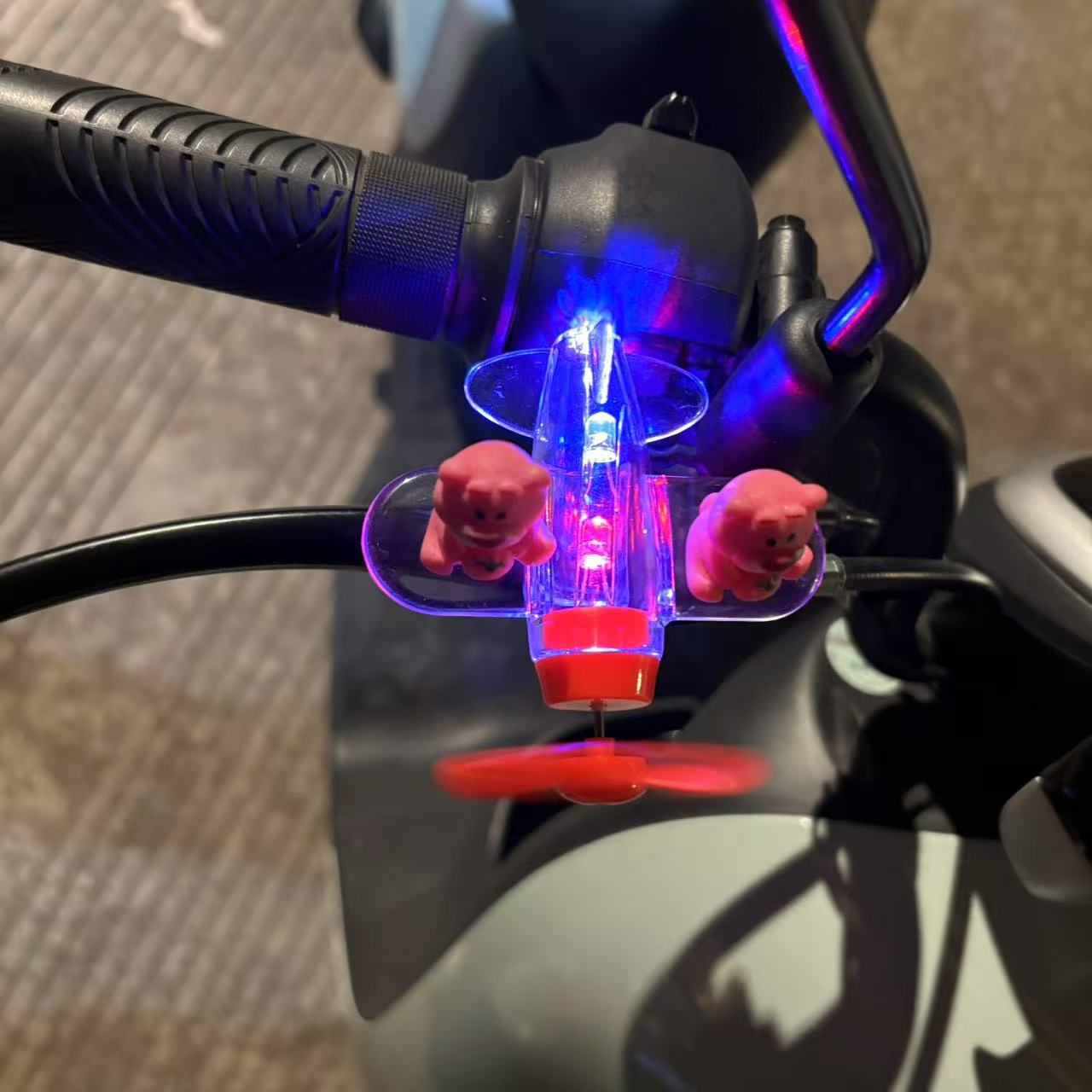 车载摆件风力旋转发光发电小飞机电动车光彩灯自行车头盔风能发光