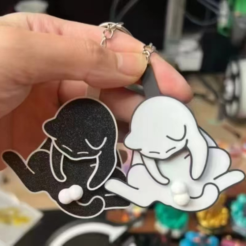 3D创意抽拉玩蛋猫捣蛋猫旋转狗钥匙扣挂件可爱搞怪可旋转包包挂件