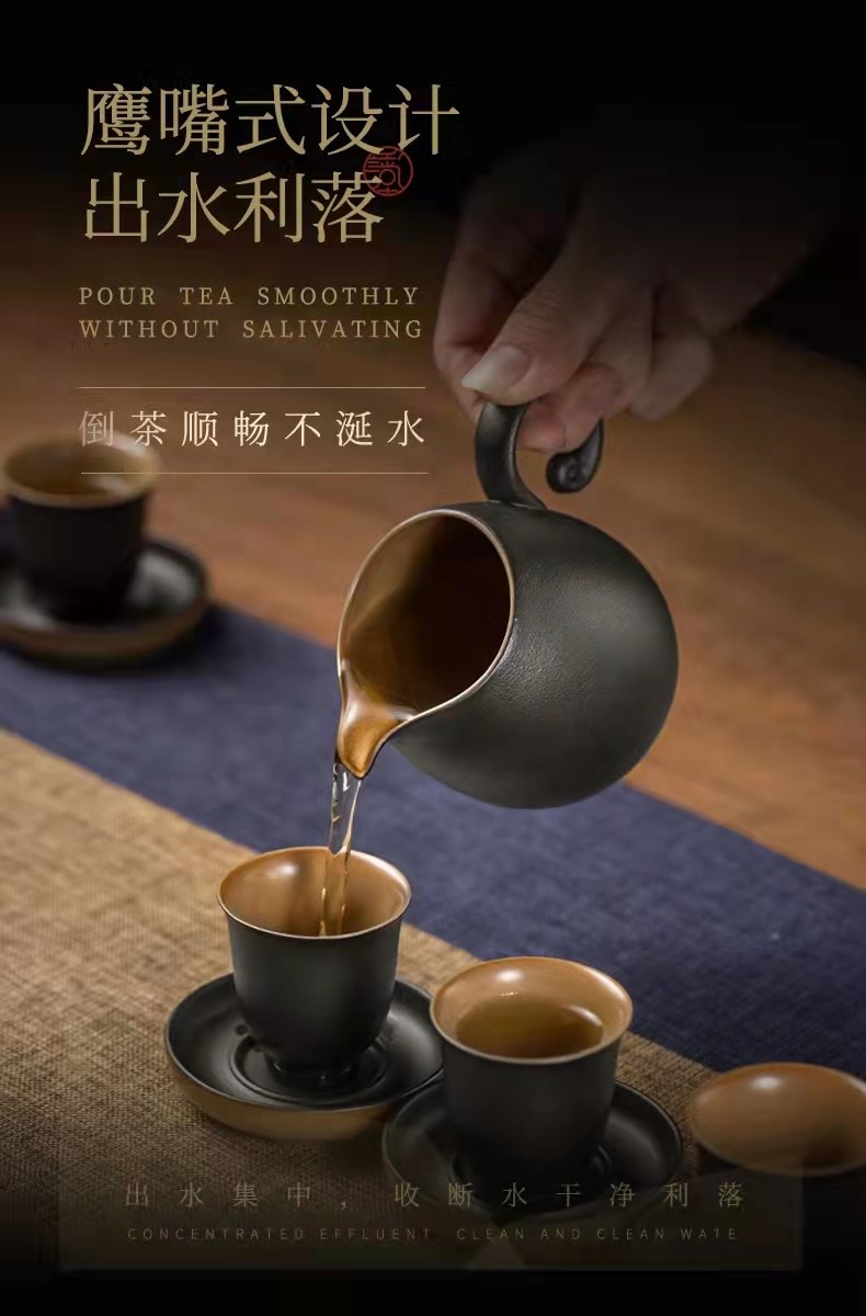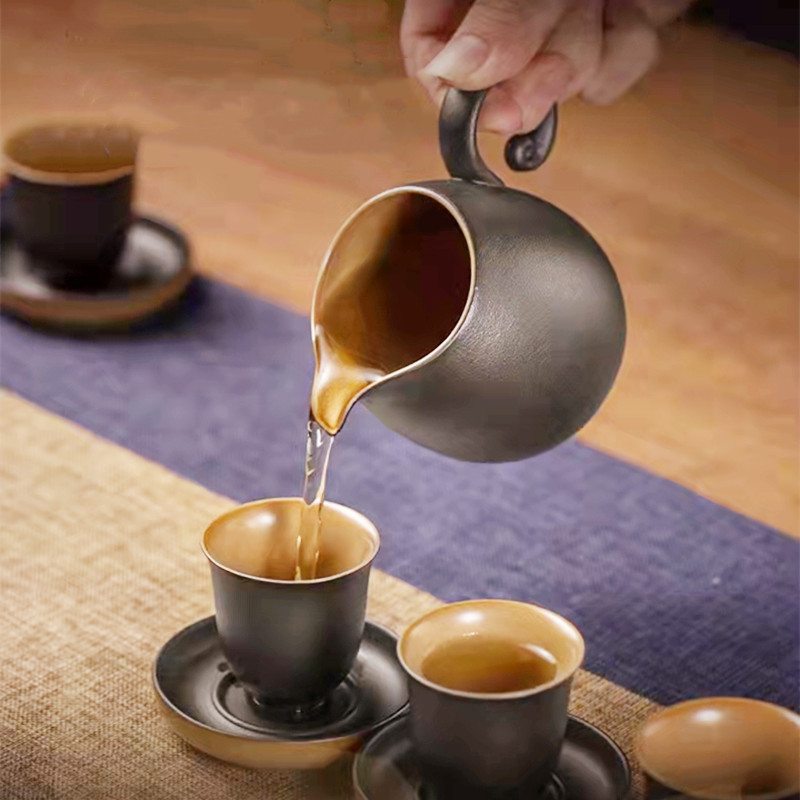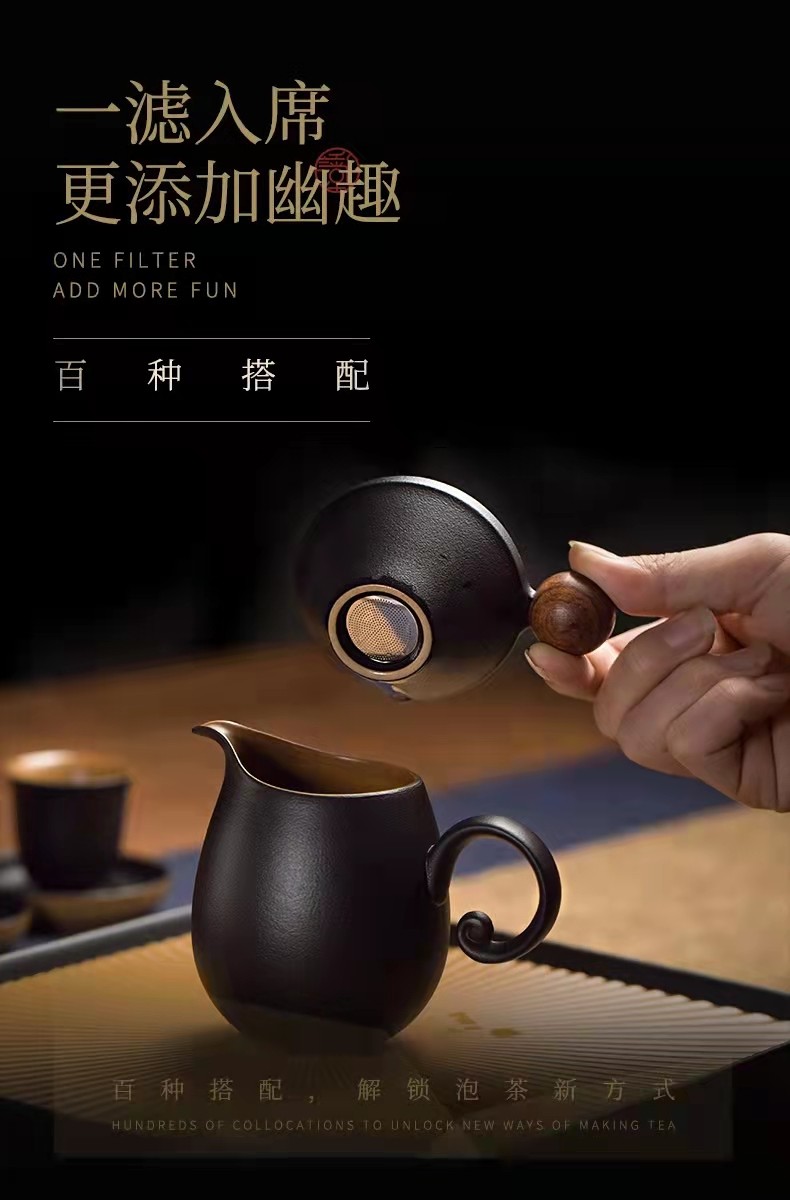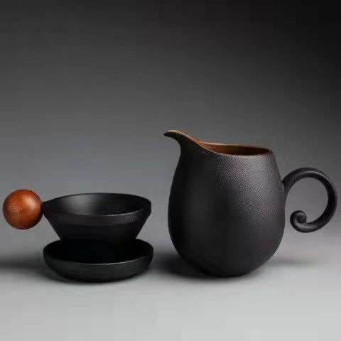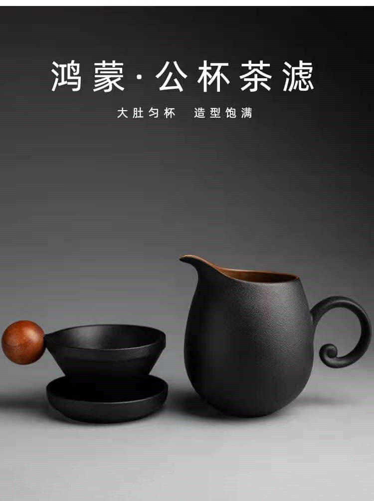 黑陶公道杯公杯茶漏一体套装简约陶瓷大号茶海分茶器功夫茶具配件