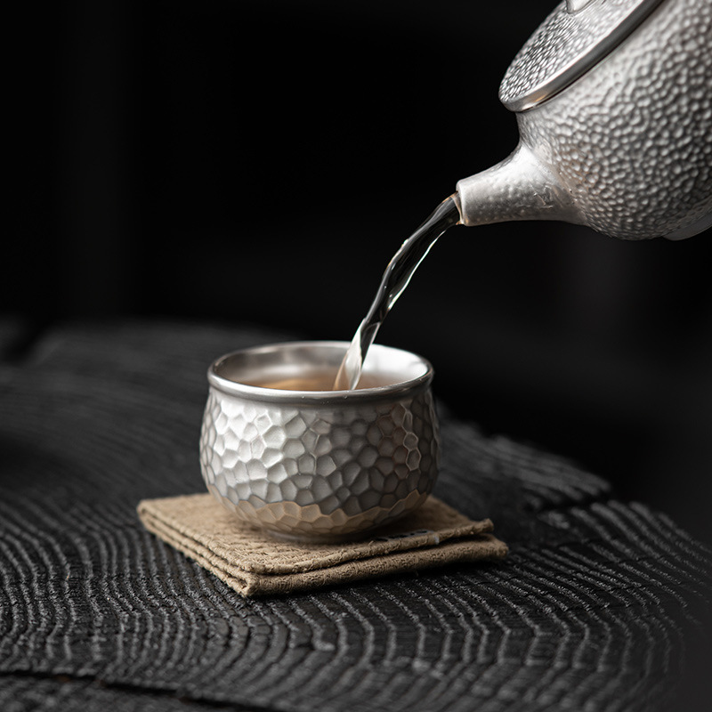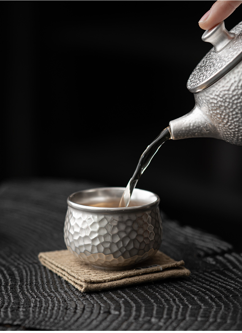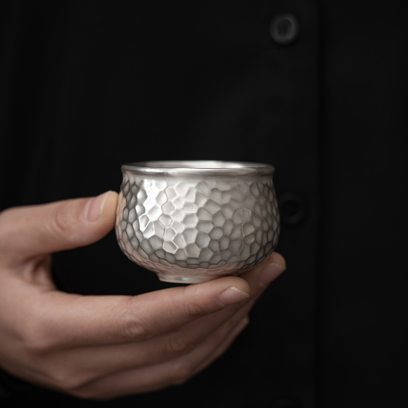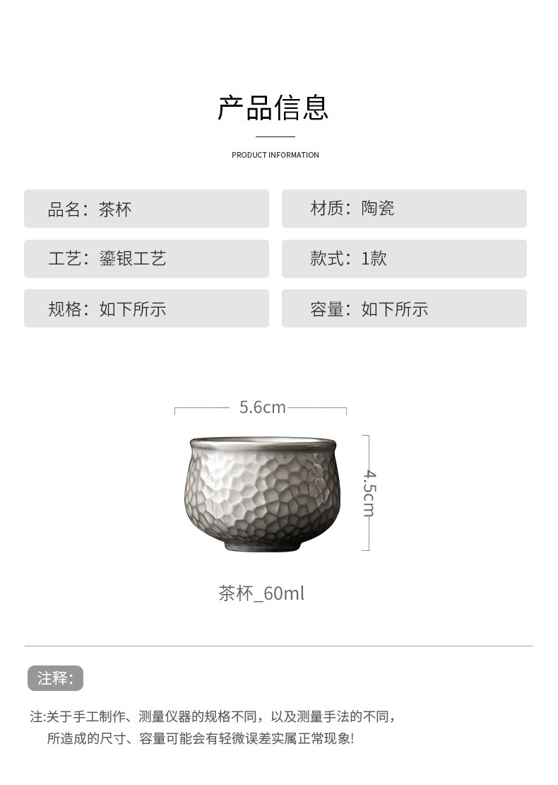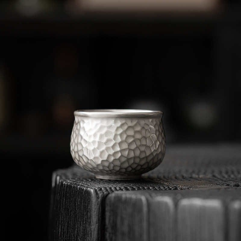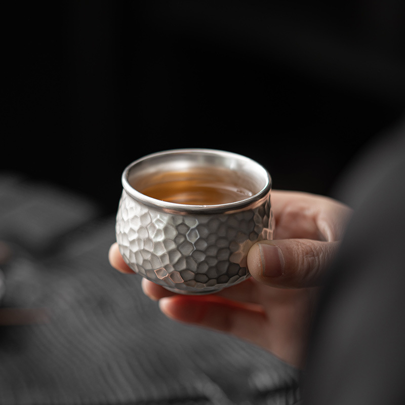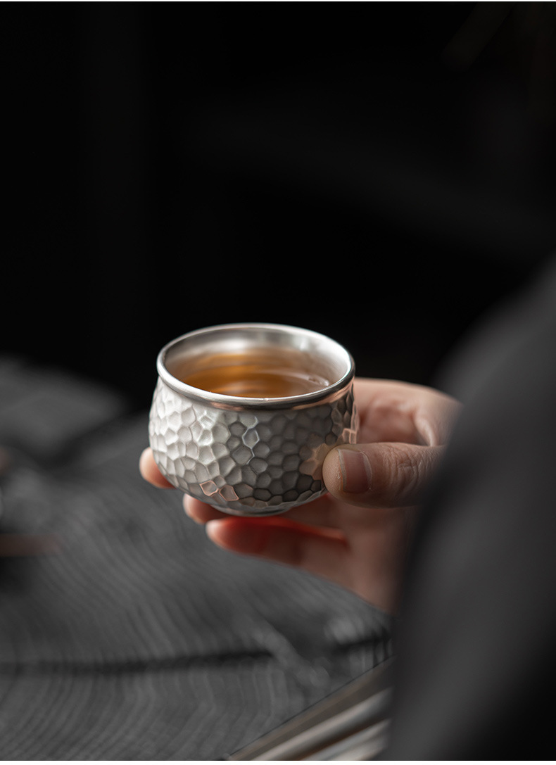 999足银鎏银杯锤纹茶杯个人专用主人杯品茗茶盏高档瓷胎送礼单杯