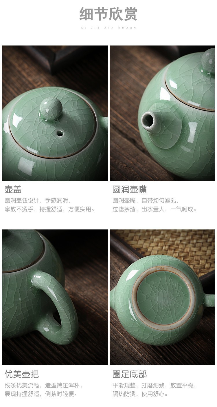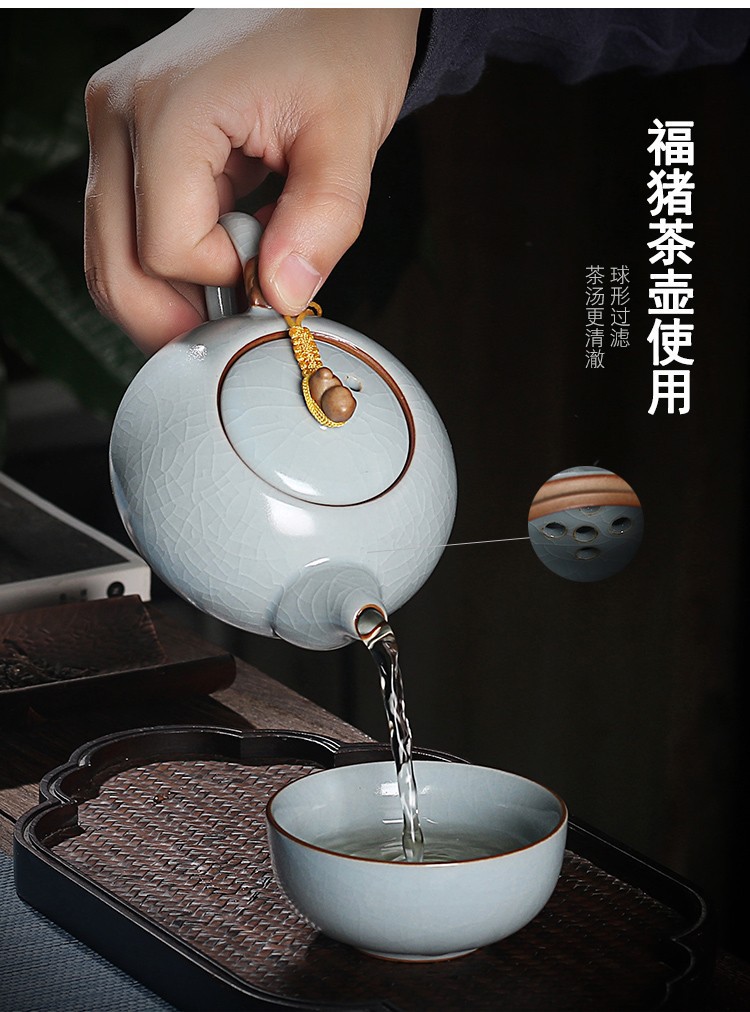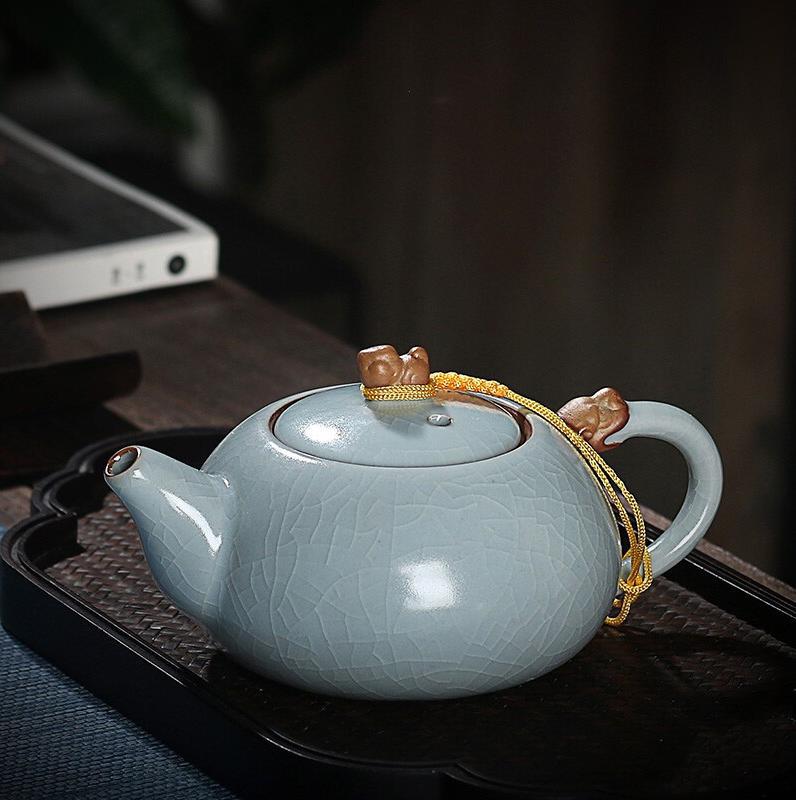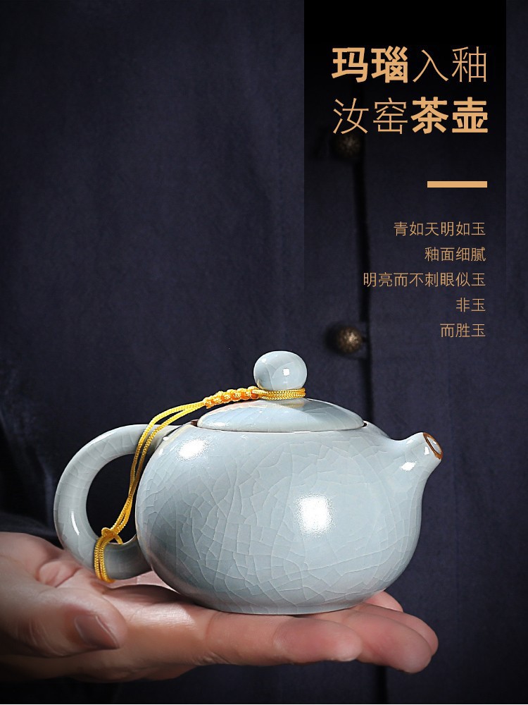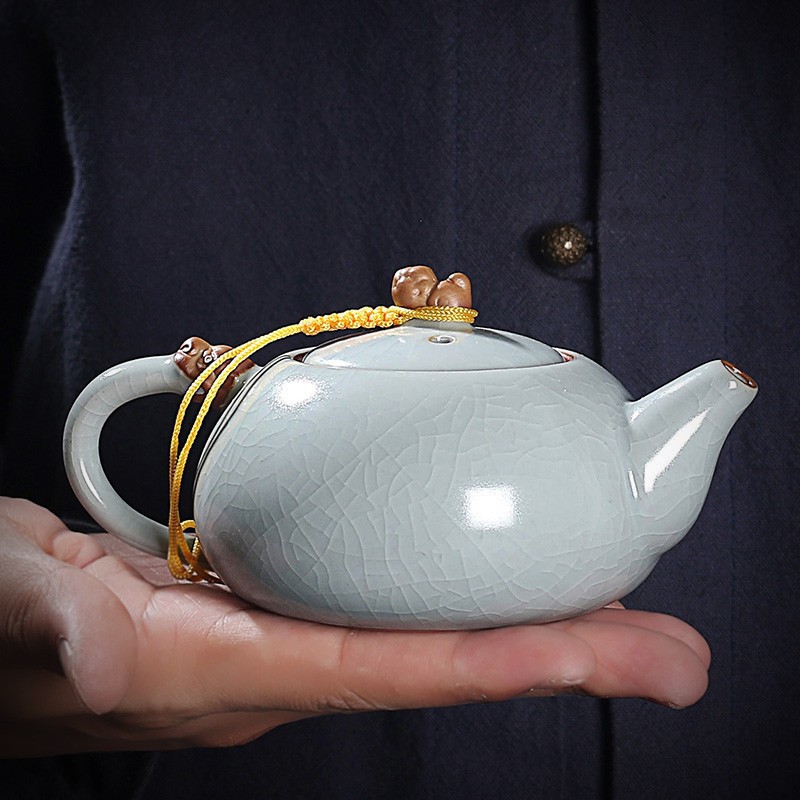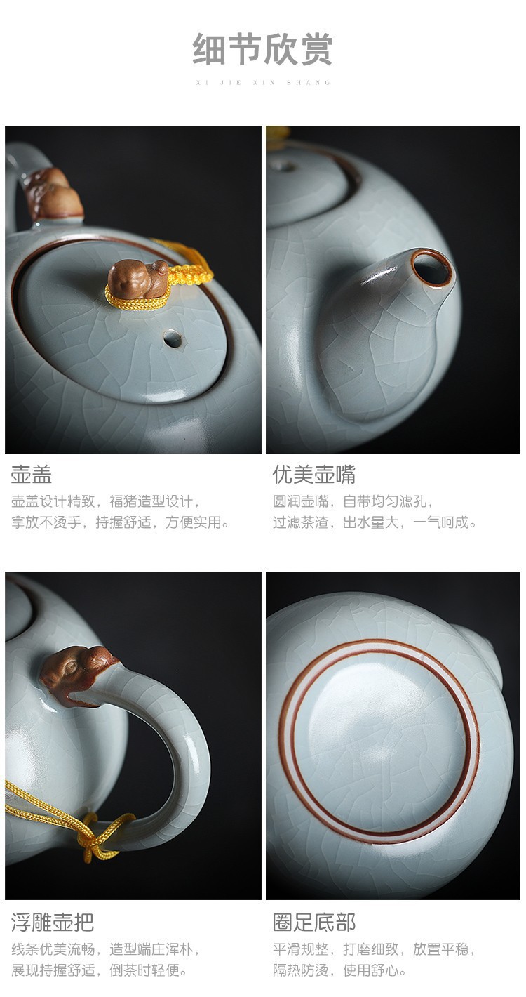 哥窑茶壶陶瓷茶具小茶壶开片汝瓷功夫红茶泡茶壶家用开片单壶西施