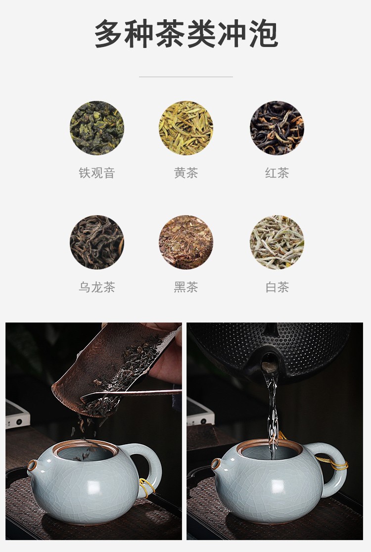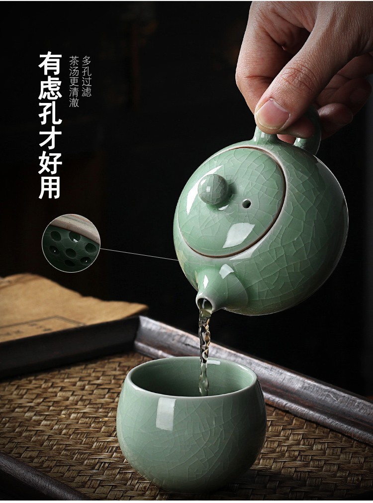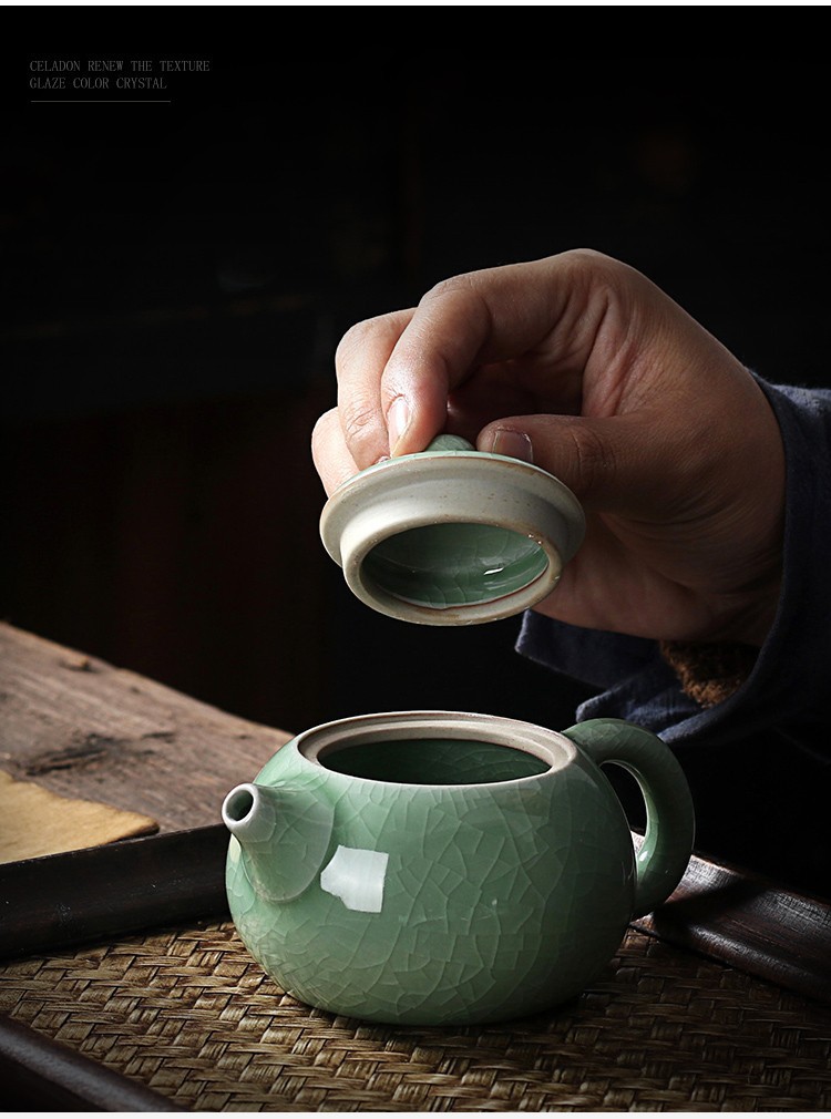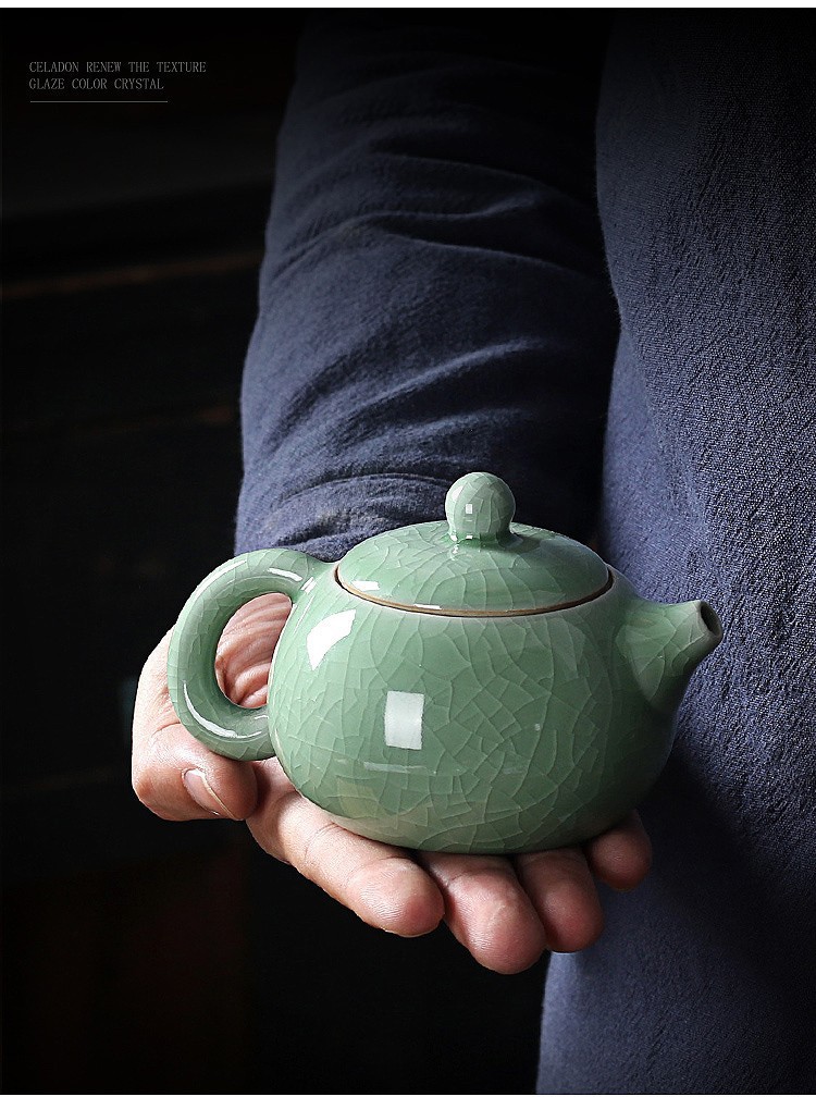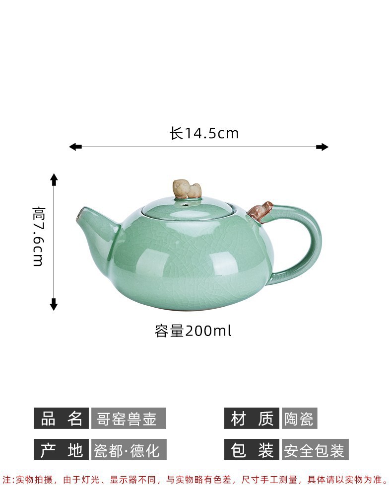哥窑茶壶陶瓷茶具小茶壶开片汝瓷功夫红茶泡茶壶家用开片单壶西施
