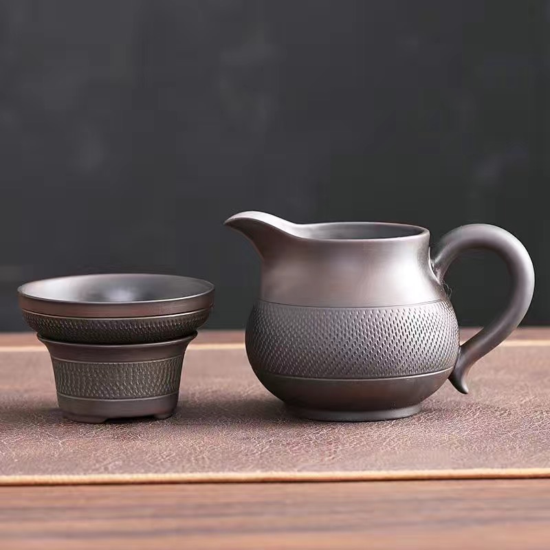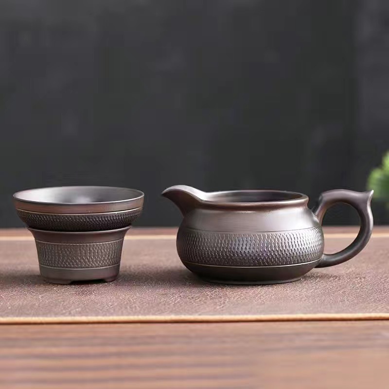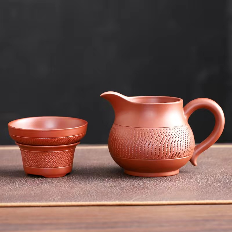 紫砂公道杯纯手工跳刀高档公杯茶滤一体功夫茶具零配件分茶器中式