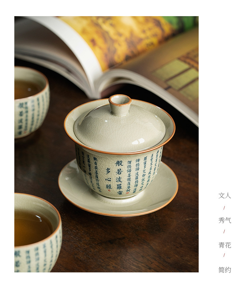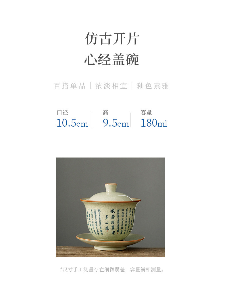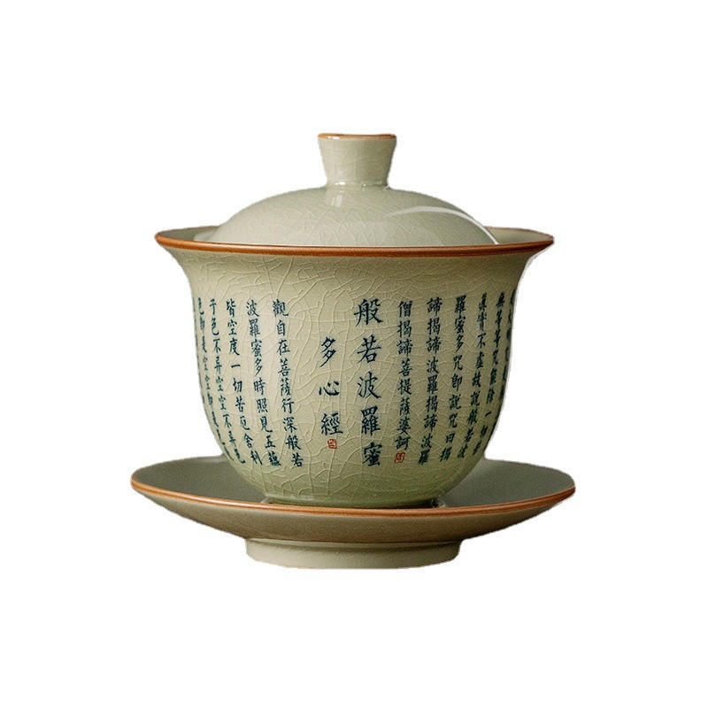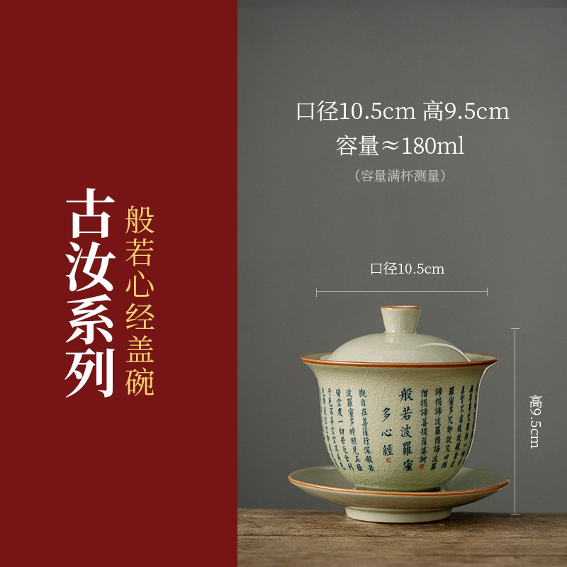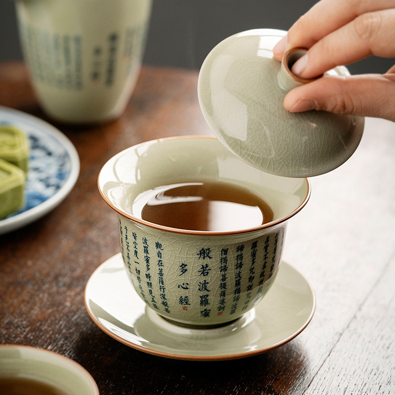 老陶泥复古中式般若菠萝蜜心经三才盖碗陶瓷功夫茶具家用泡茶碗
