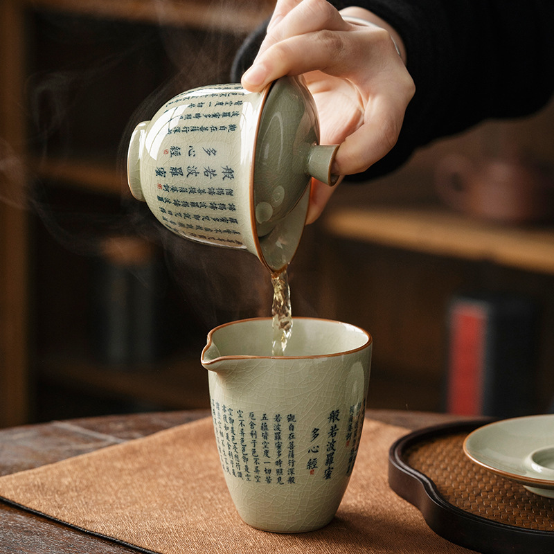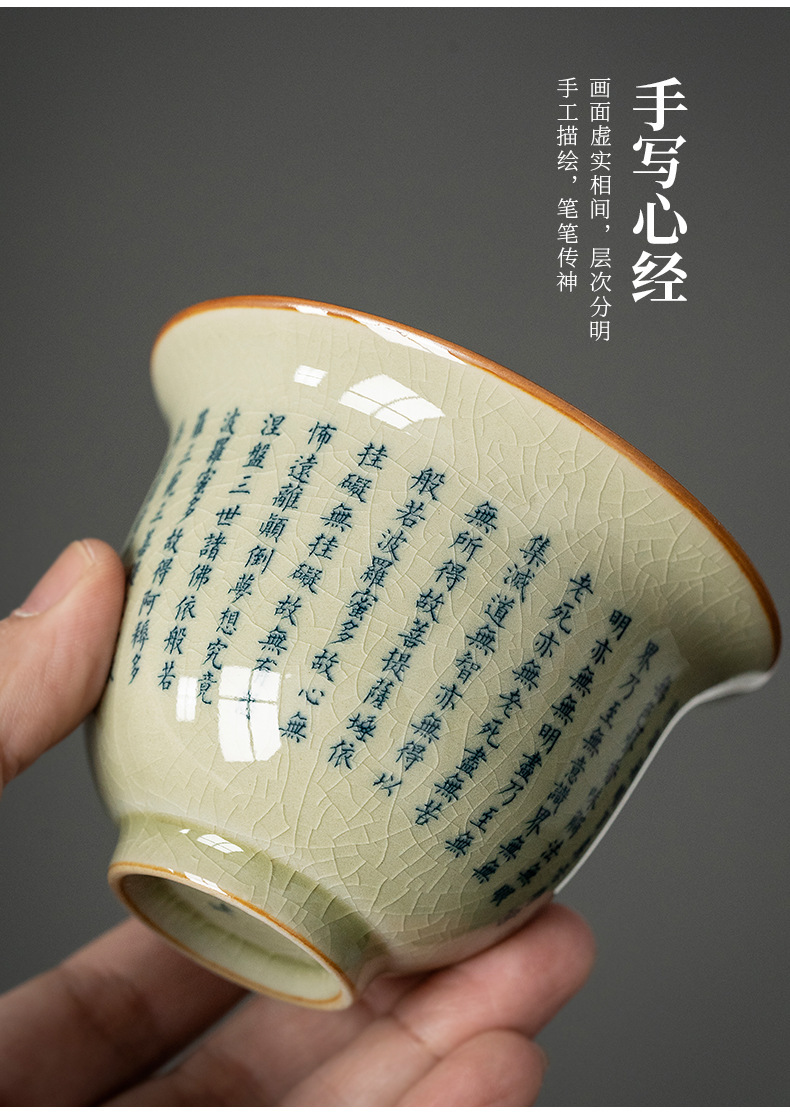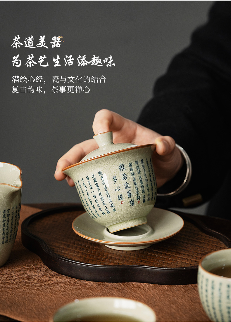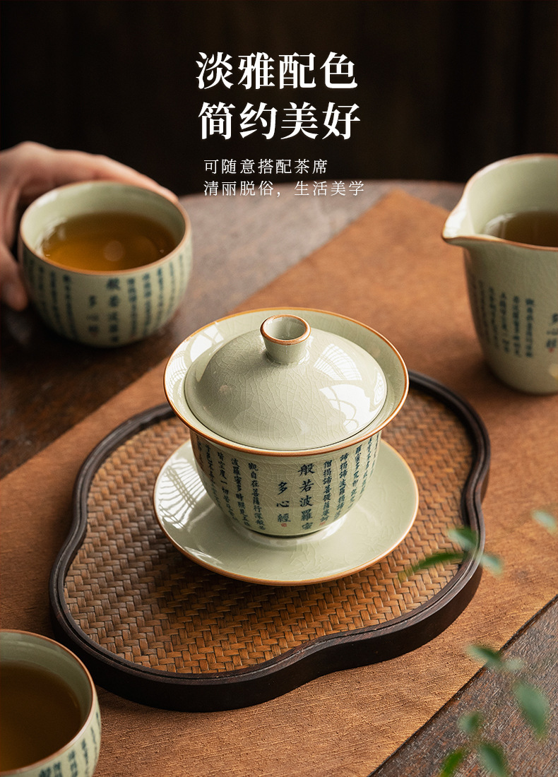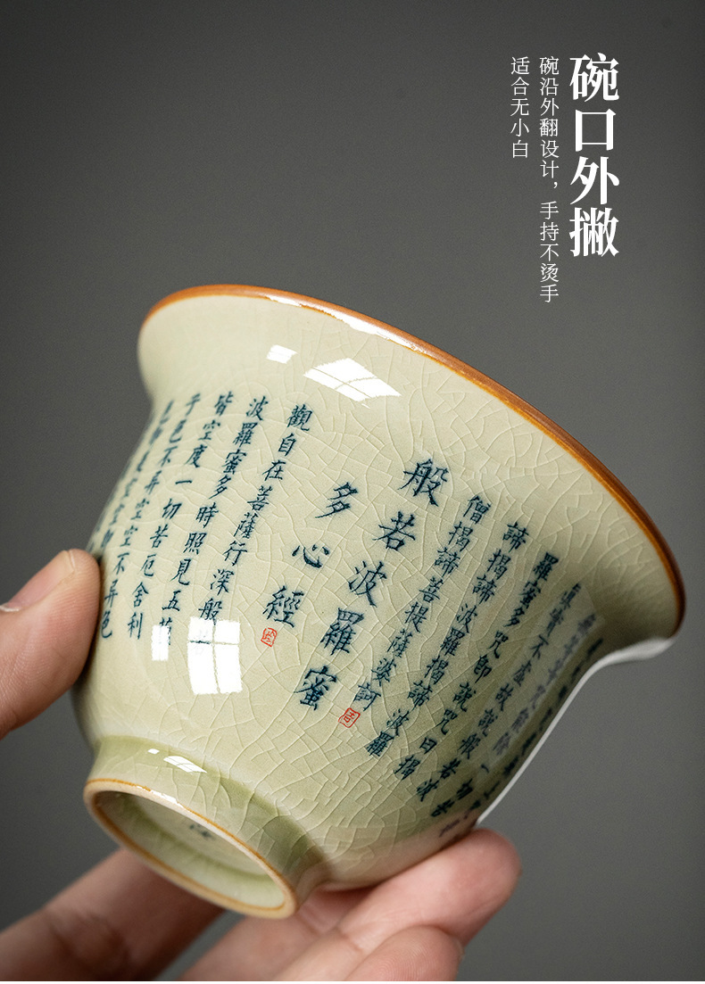 老陶泥复古中式般若菠萝蜜心经三才盖碗陶瓷功夫茶具家用泡茶碗
