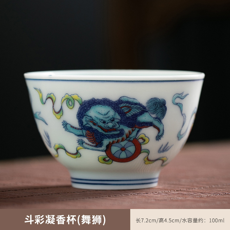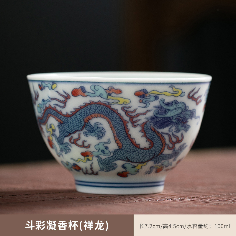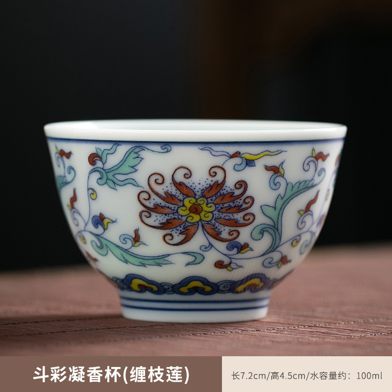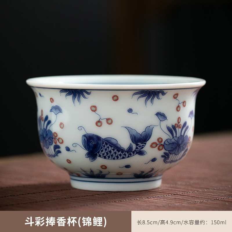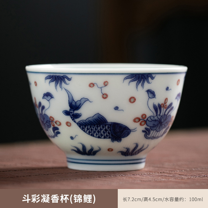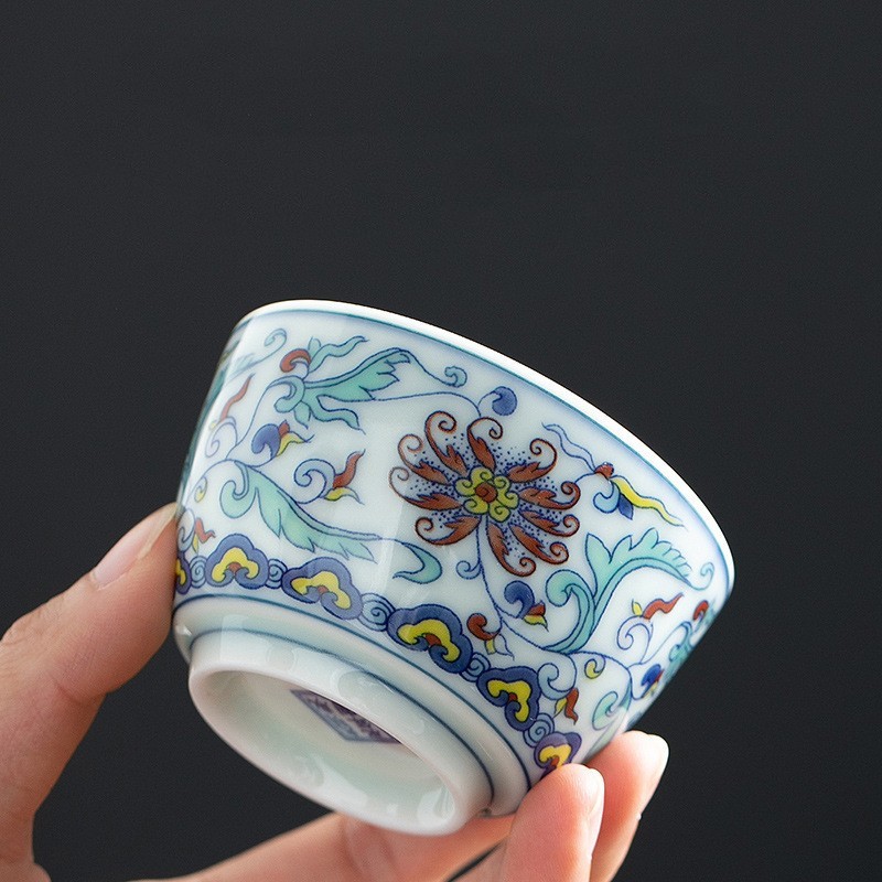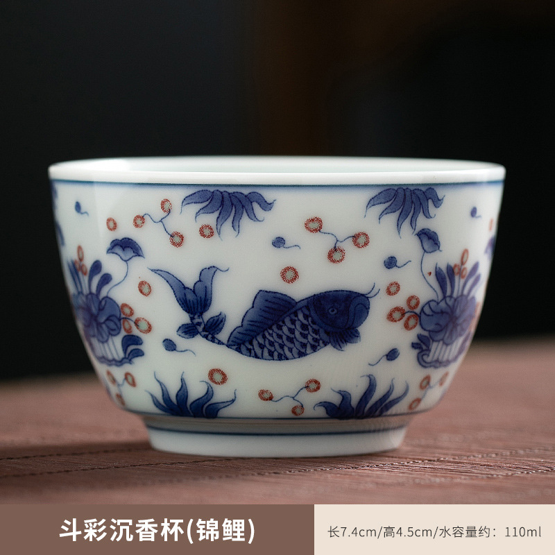 复古斗彩釉下青花茶杯陶瓷主人杯单杯茶盏品茗杯茶碗个人中式防烫