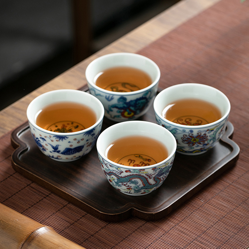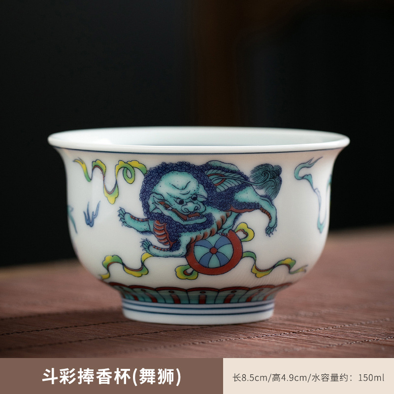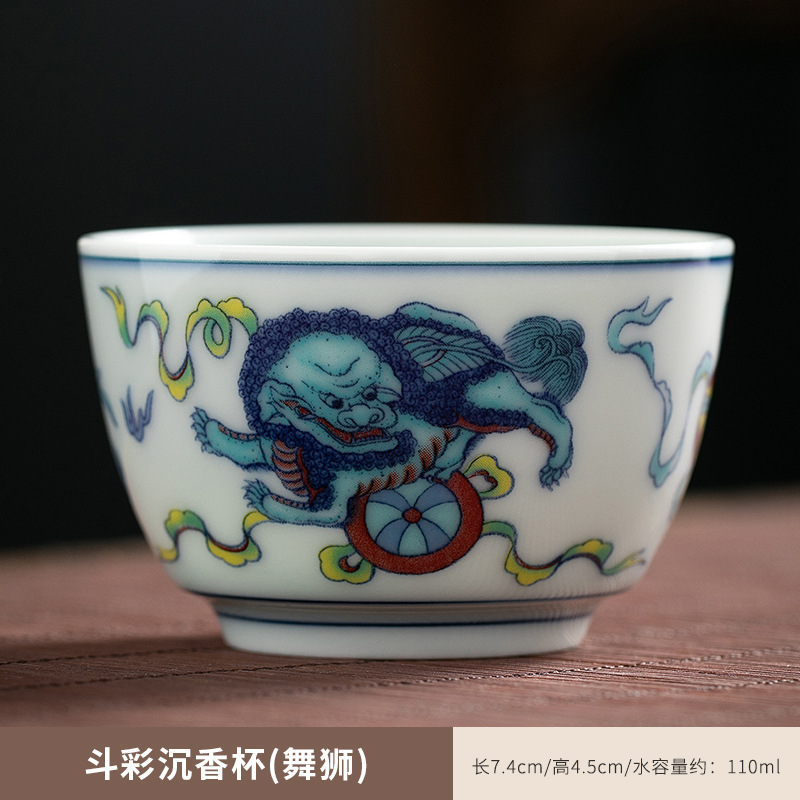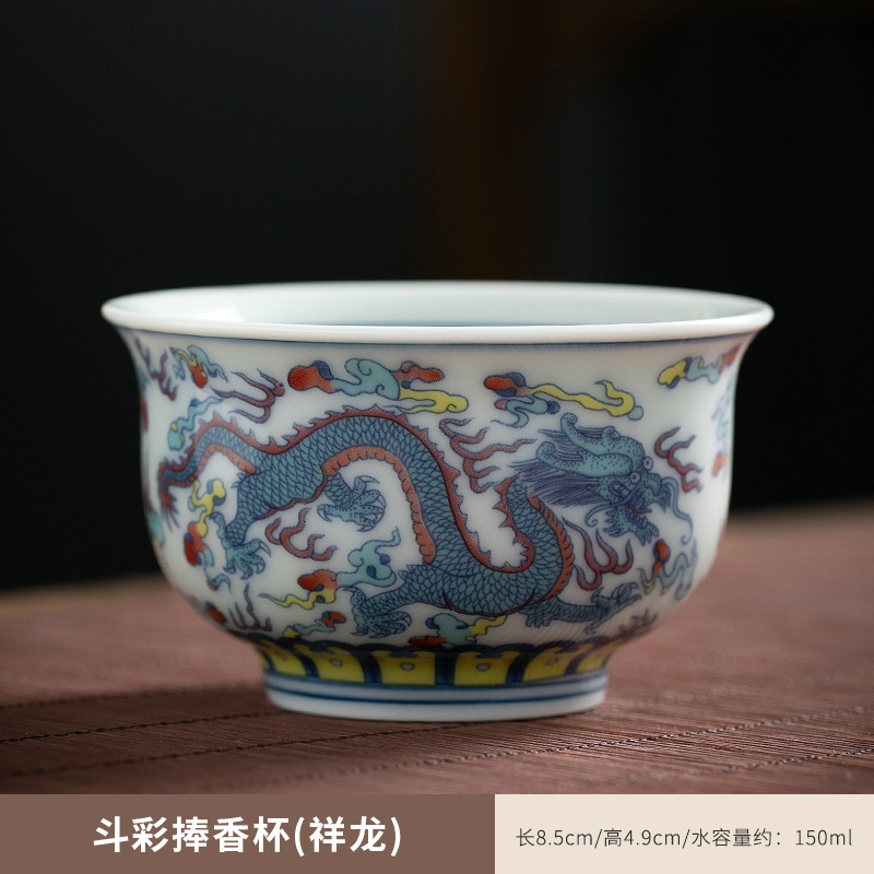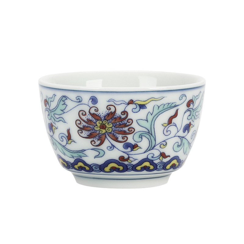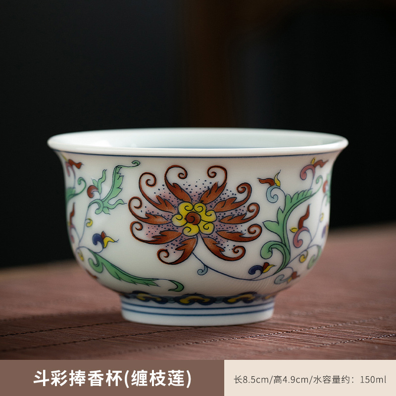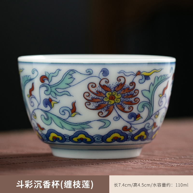 复古斗彩釉下青花茶杯陶瓷主人杯单杯茶盏品茗杯茶碗个人中式防烫