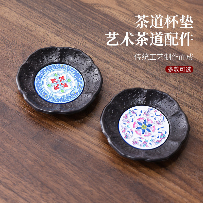 中式花型茶杯垫隔热防烫吸水杯托功夫茶具零配茶道办公室泡茶防滑