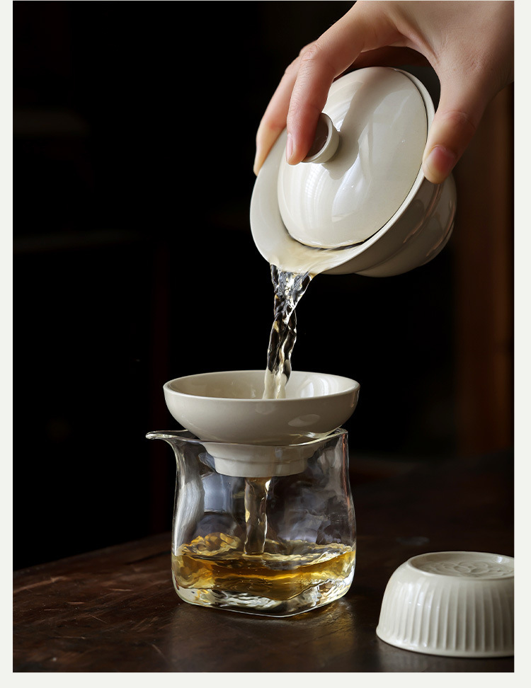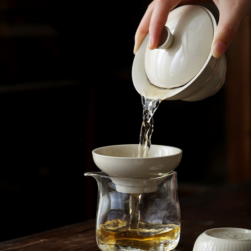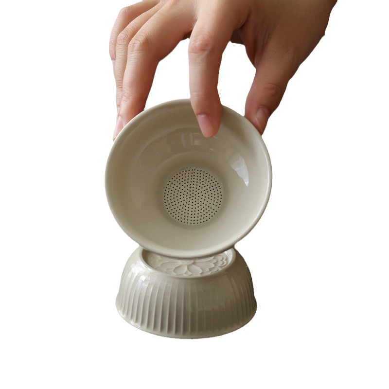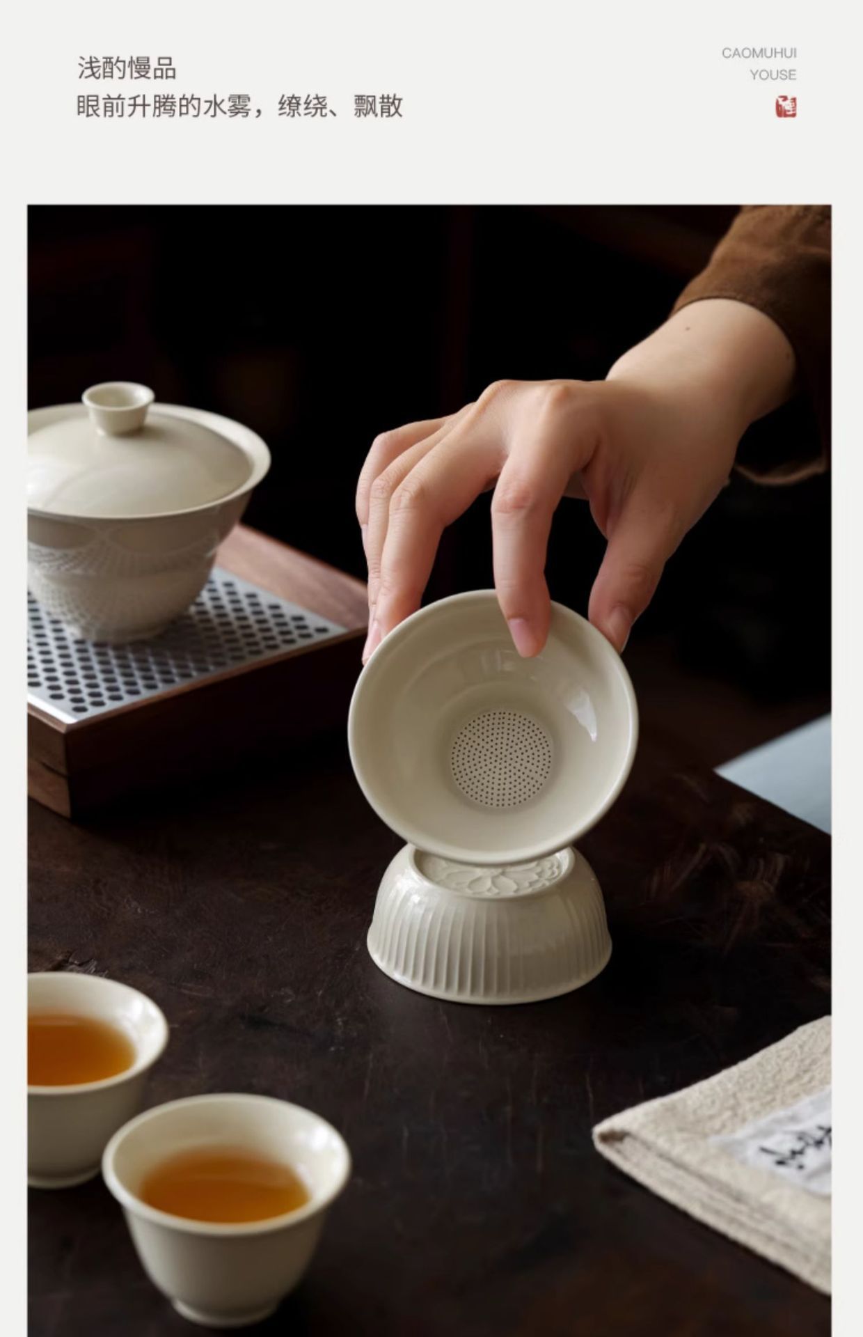 陶瓷草木灰茶滤茶漏组整套高档茶叶过滤网茶水分离器茶具零配件