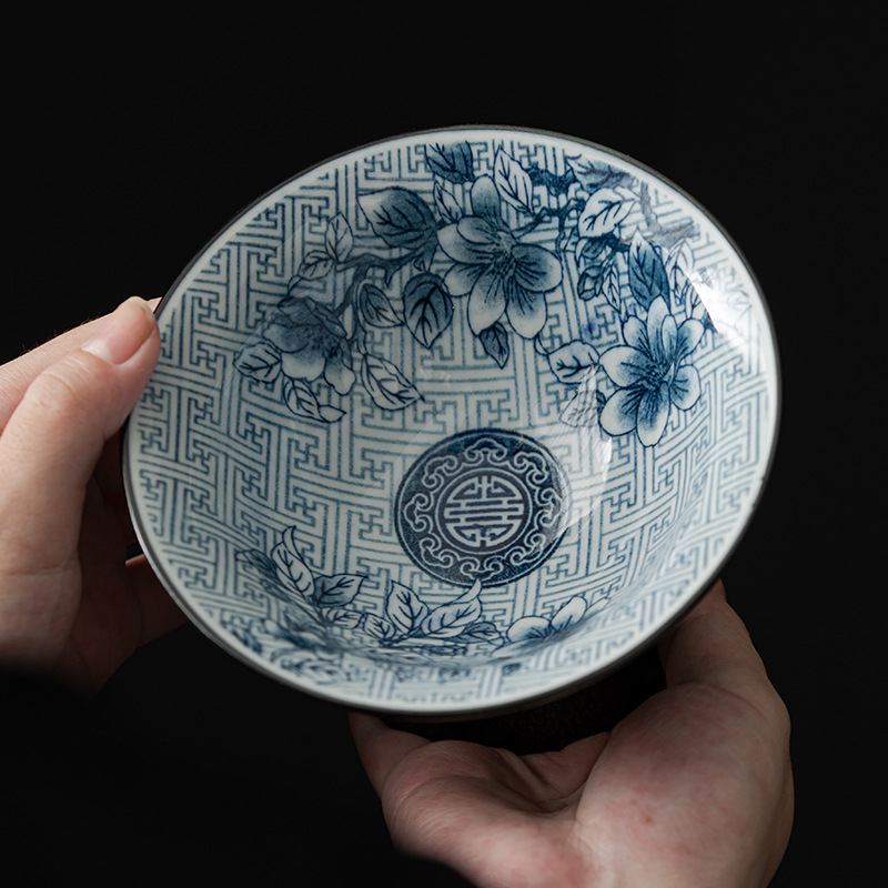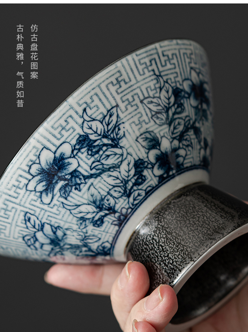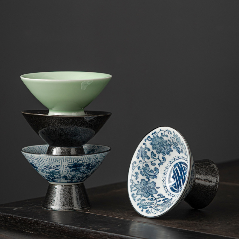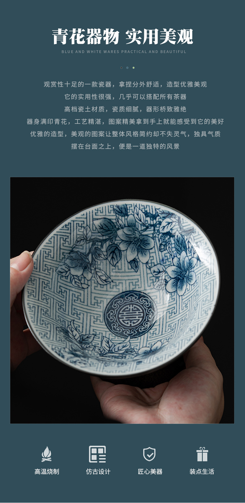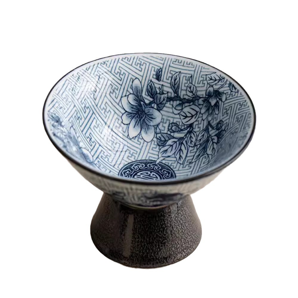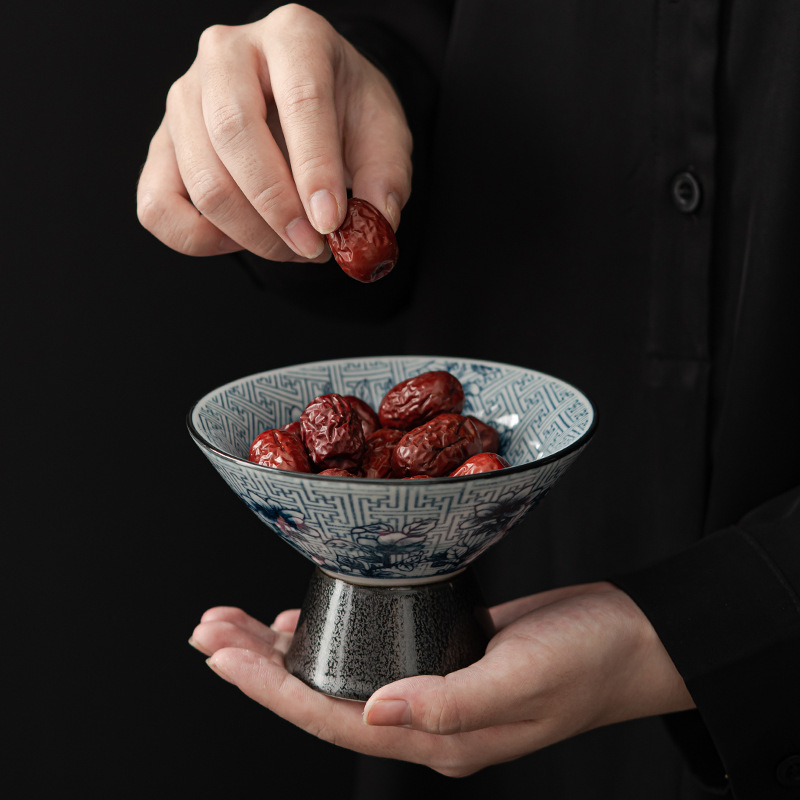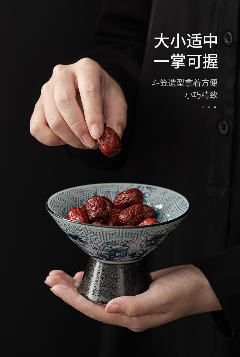 复古青花陶瓷茶点盘中式水果盘高脚家用零食盘茶几点干果心盘茶碟