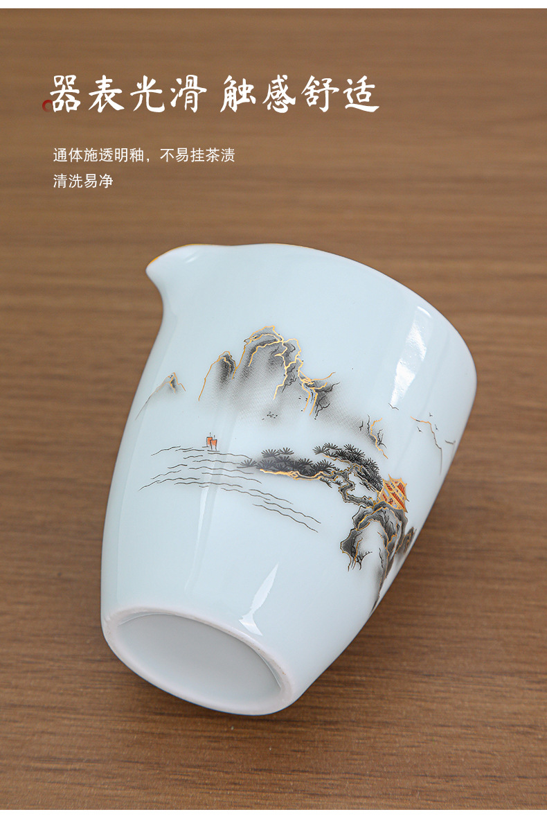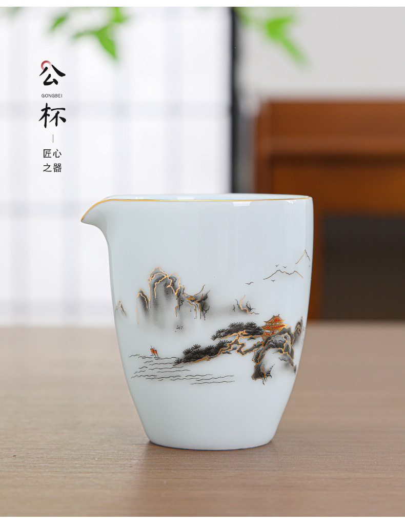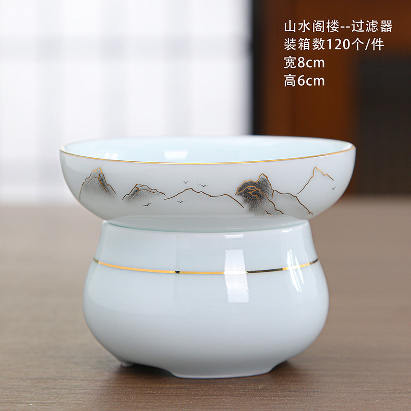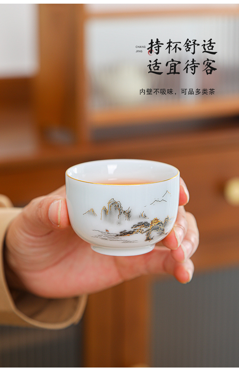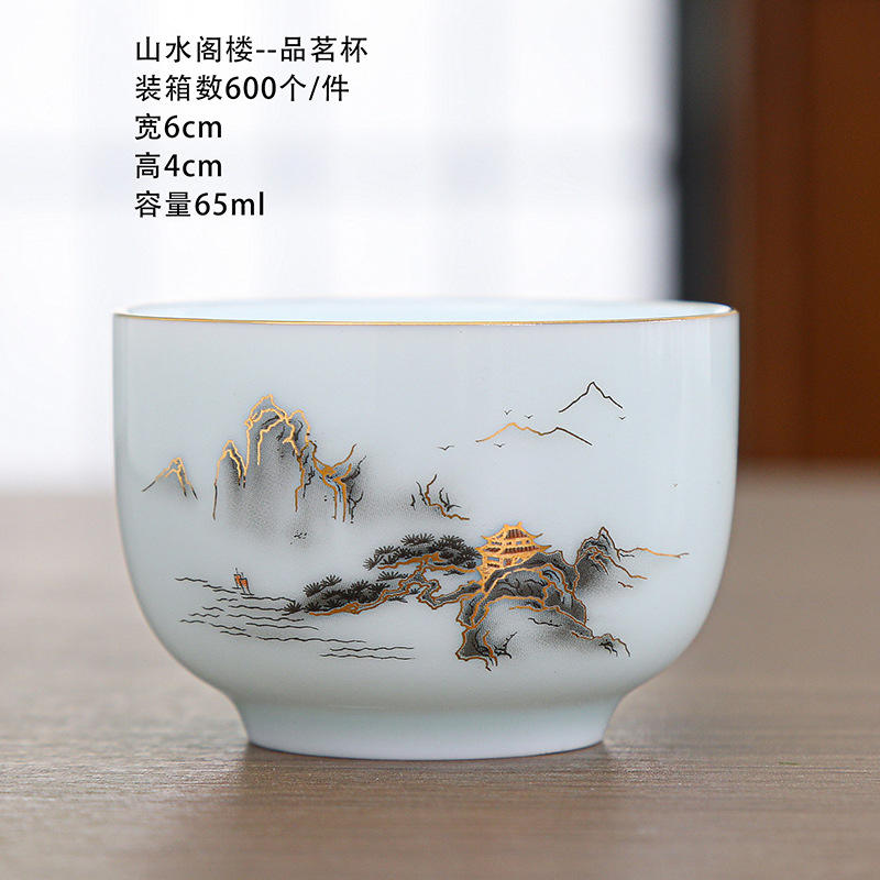 陶瓷茶杯中式描金家用待客喝茶品茗杯功夫茶山水小茶杯过滤公道杯