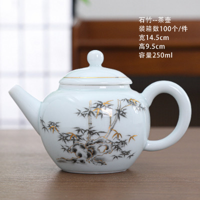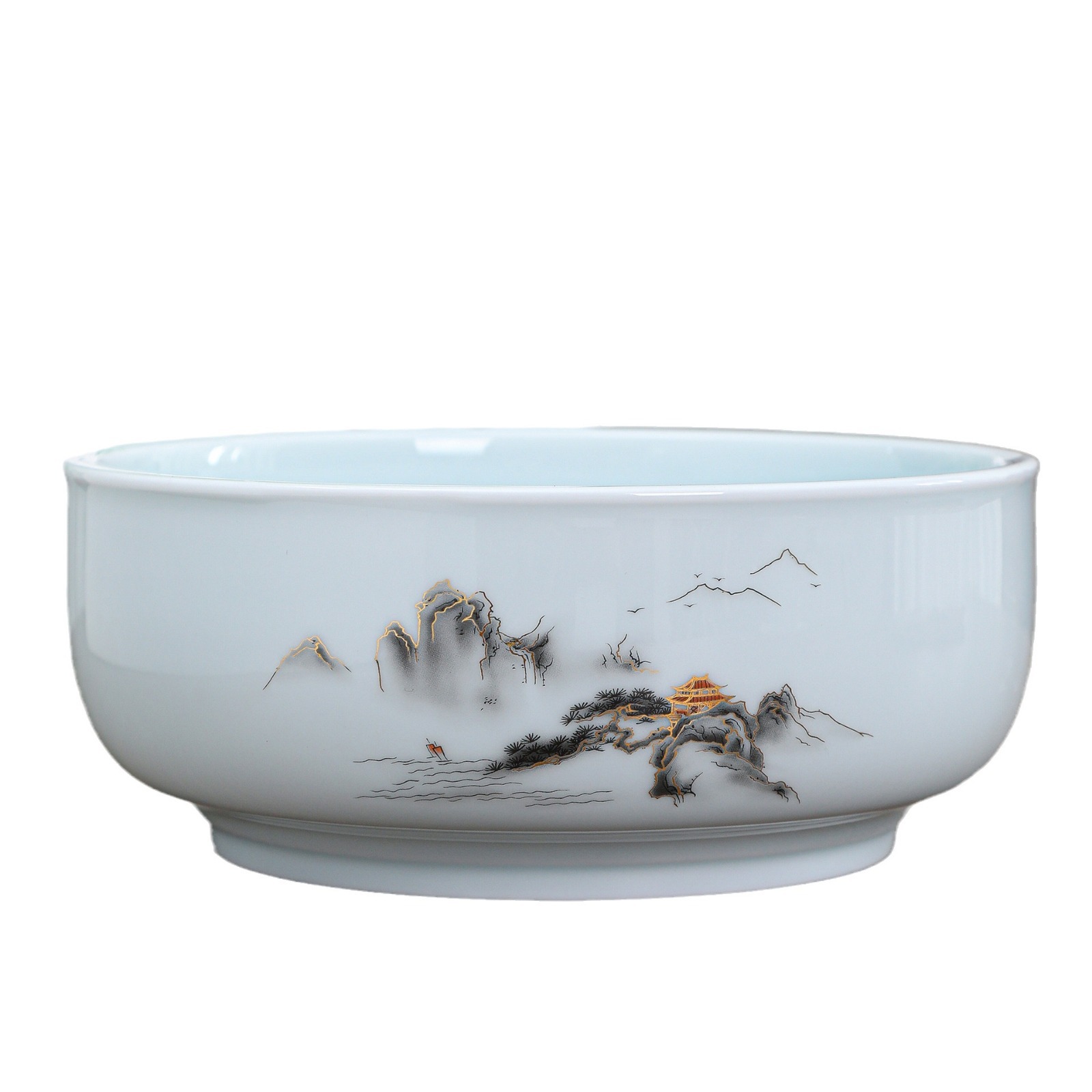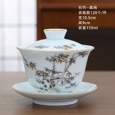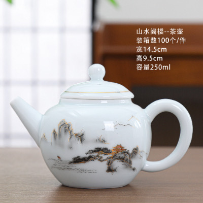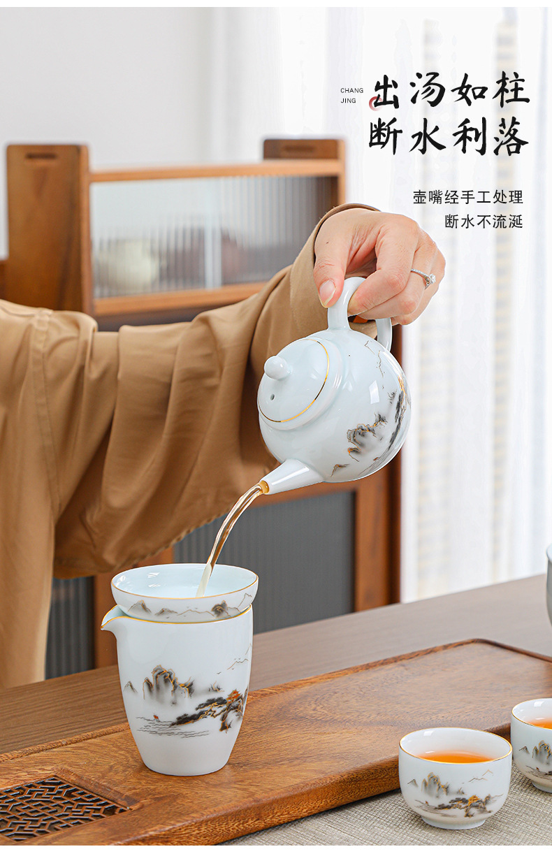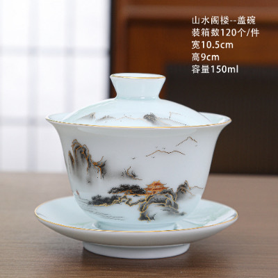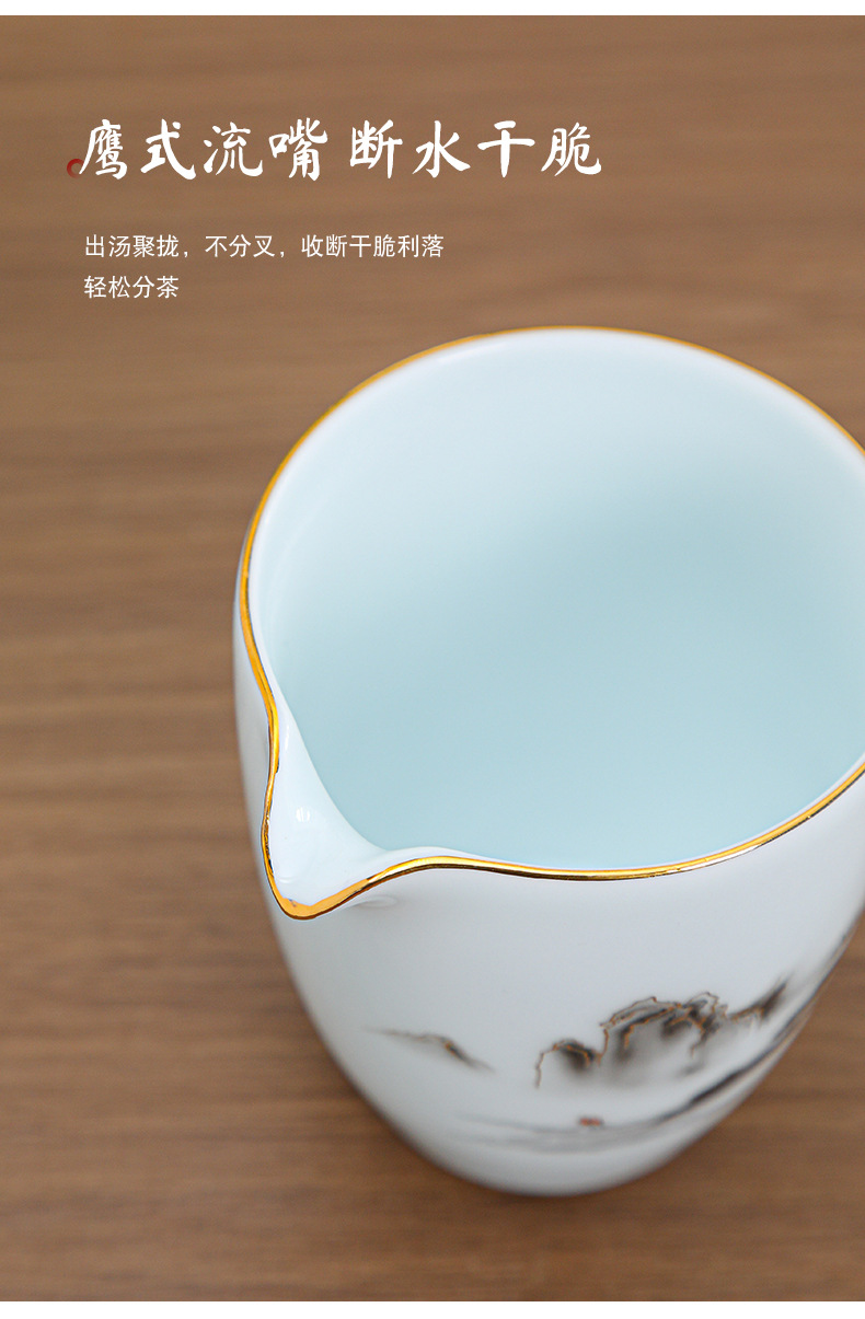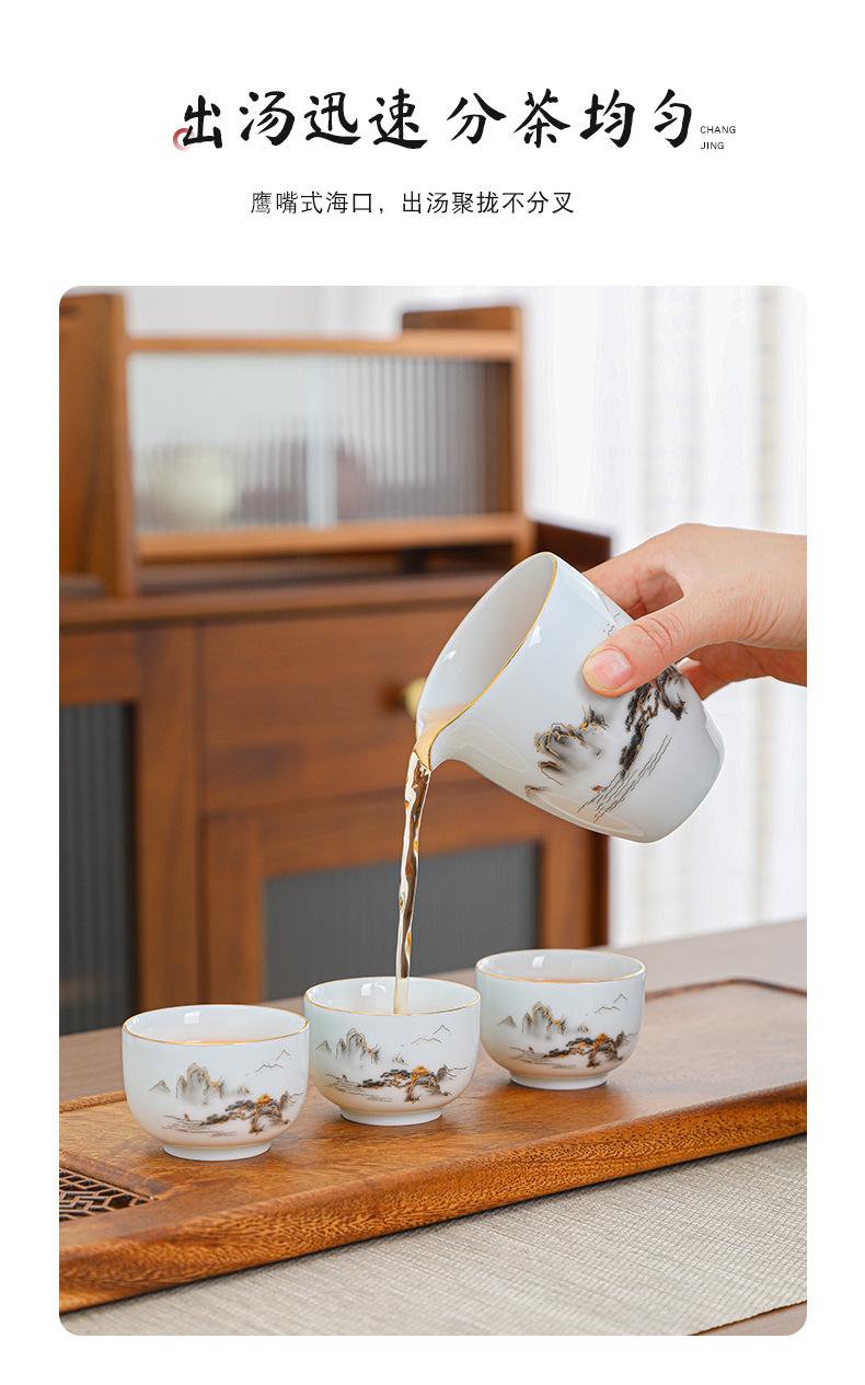 陶瓷茶杯中式描金家用待客喝茶品茗杯功夫茶山水小茶杯过滤公道杯