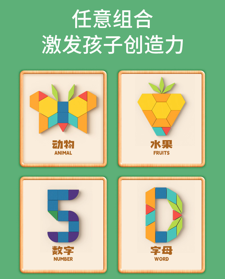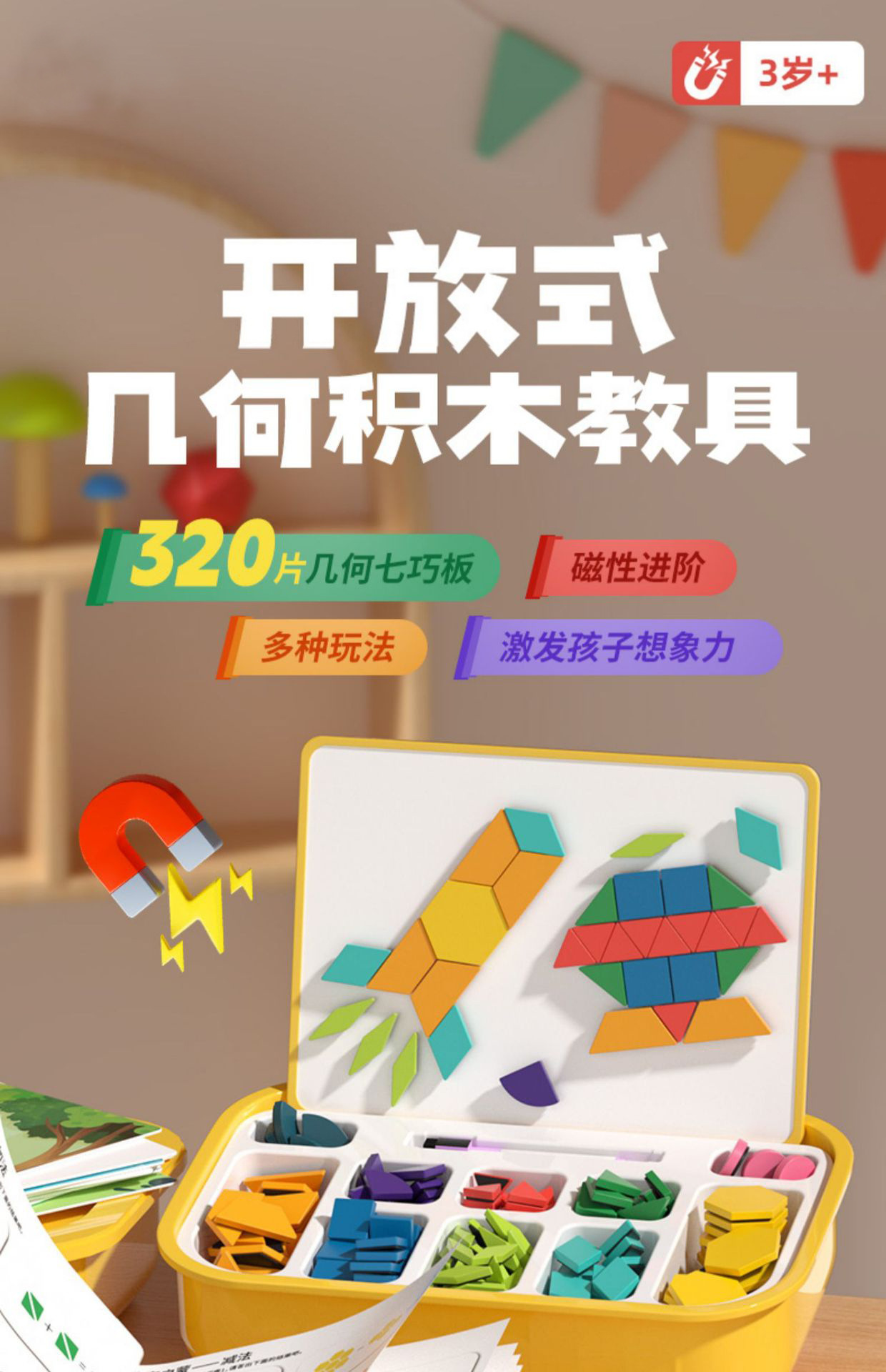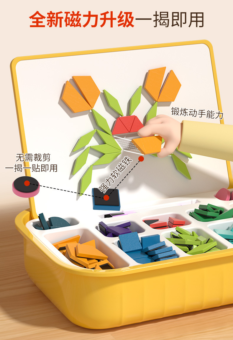 磁力拼图七巧板几何积木宝宝幼儿园益智力3到6岁男孩女孩儿童玩具