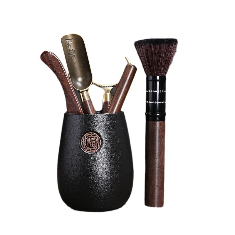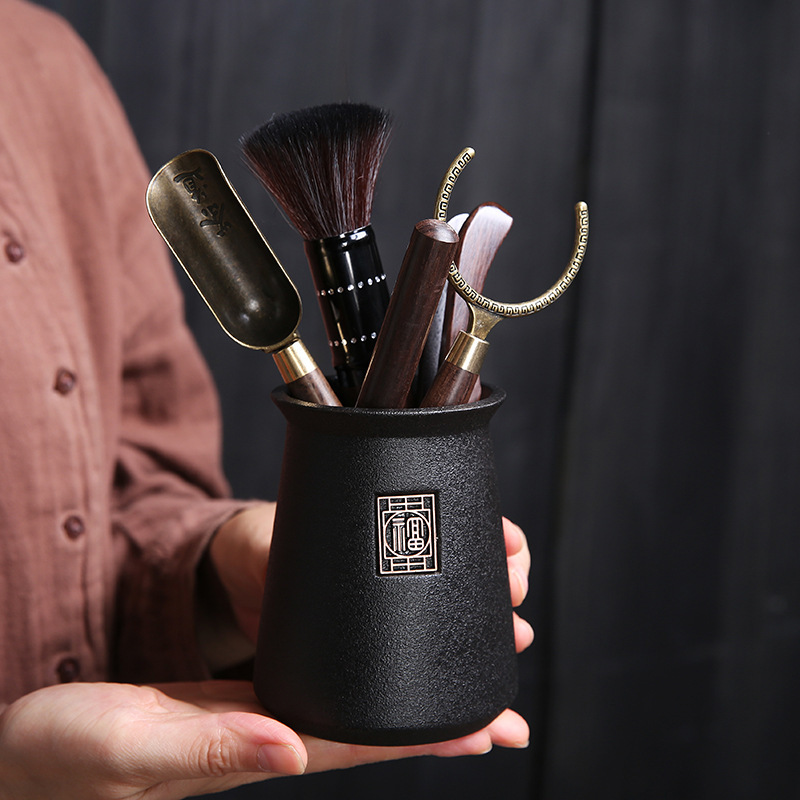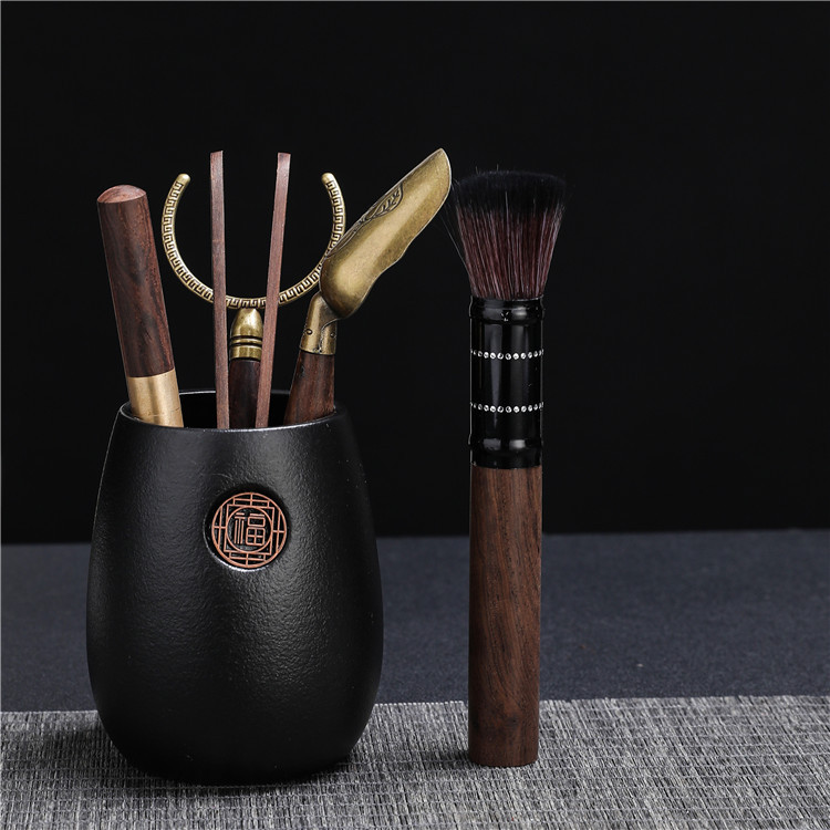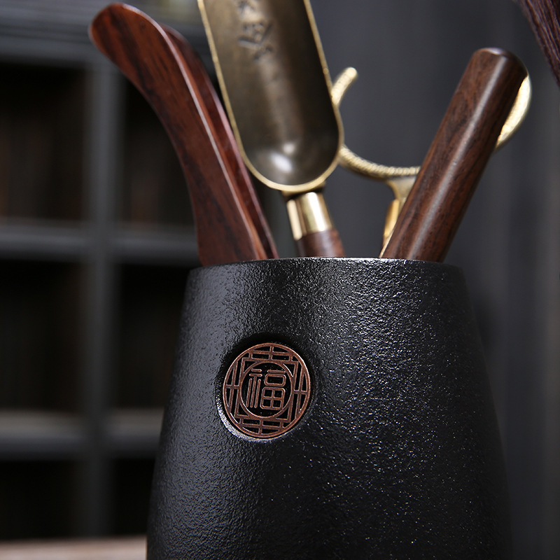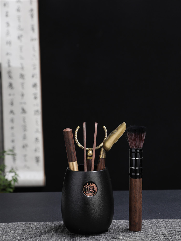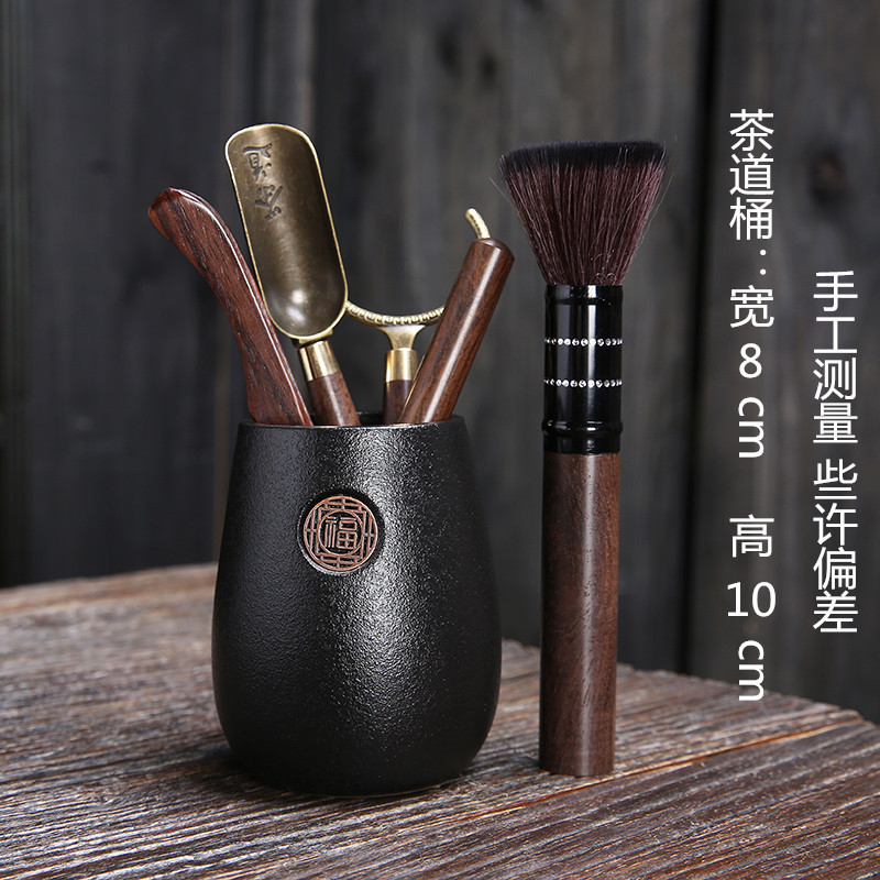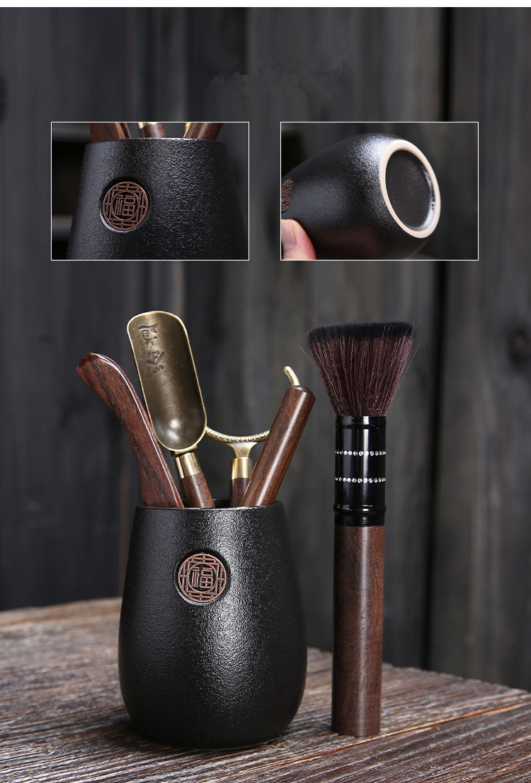 黑陶茶道六君子陶瓷茶具配件办公客厅茶夹镊子整套泡茶工具摆件
