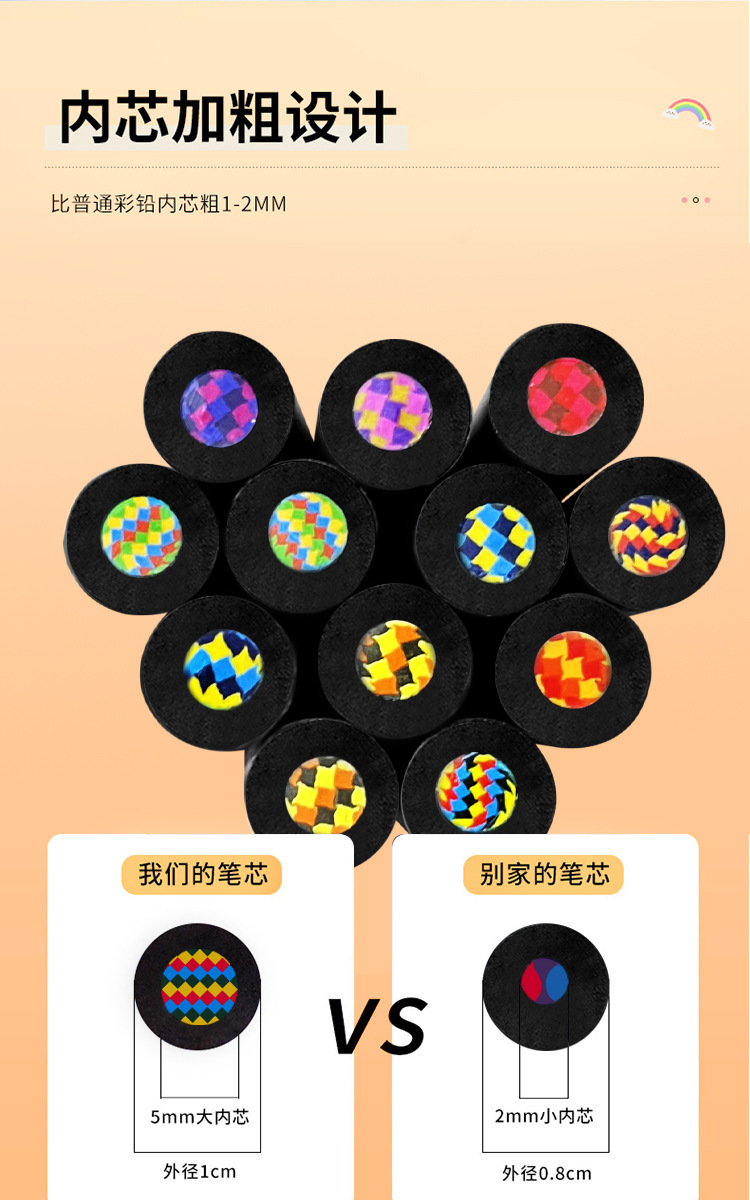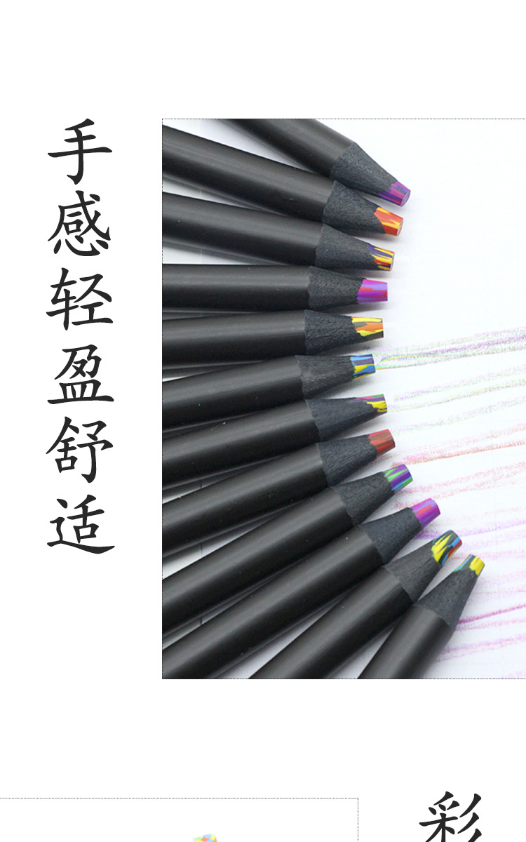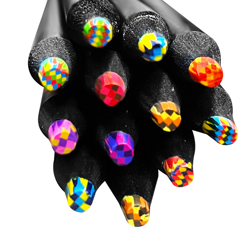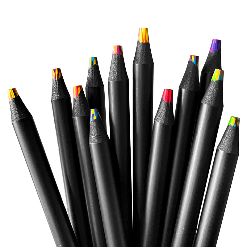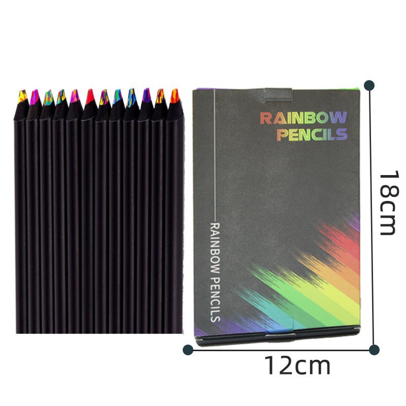 跨境12色彩铅一笔多色彩芯混色铅笔儿童彩虹笔学生绘画木质彩铅