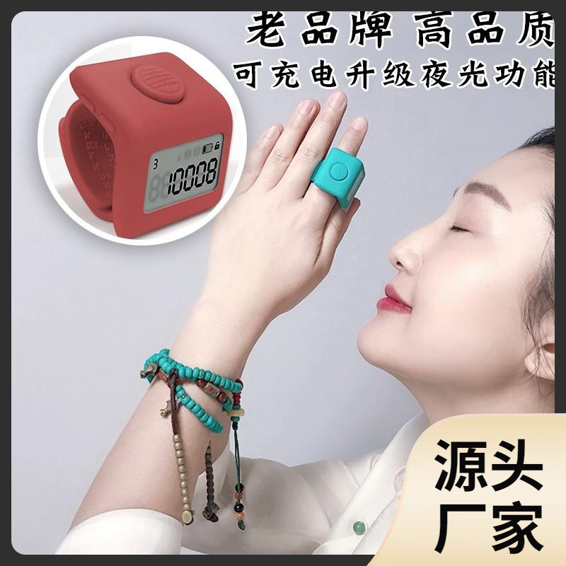 G杨幂计数器电子数显手按指环手指戒指夜光可充电念数记数器