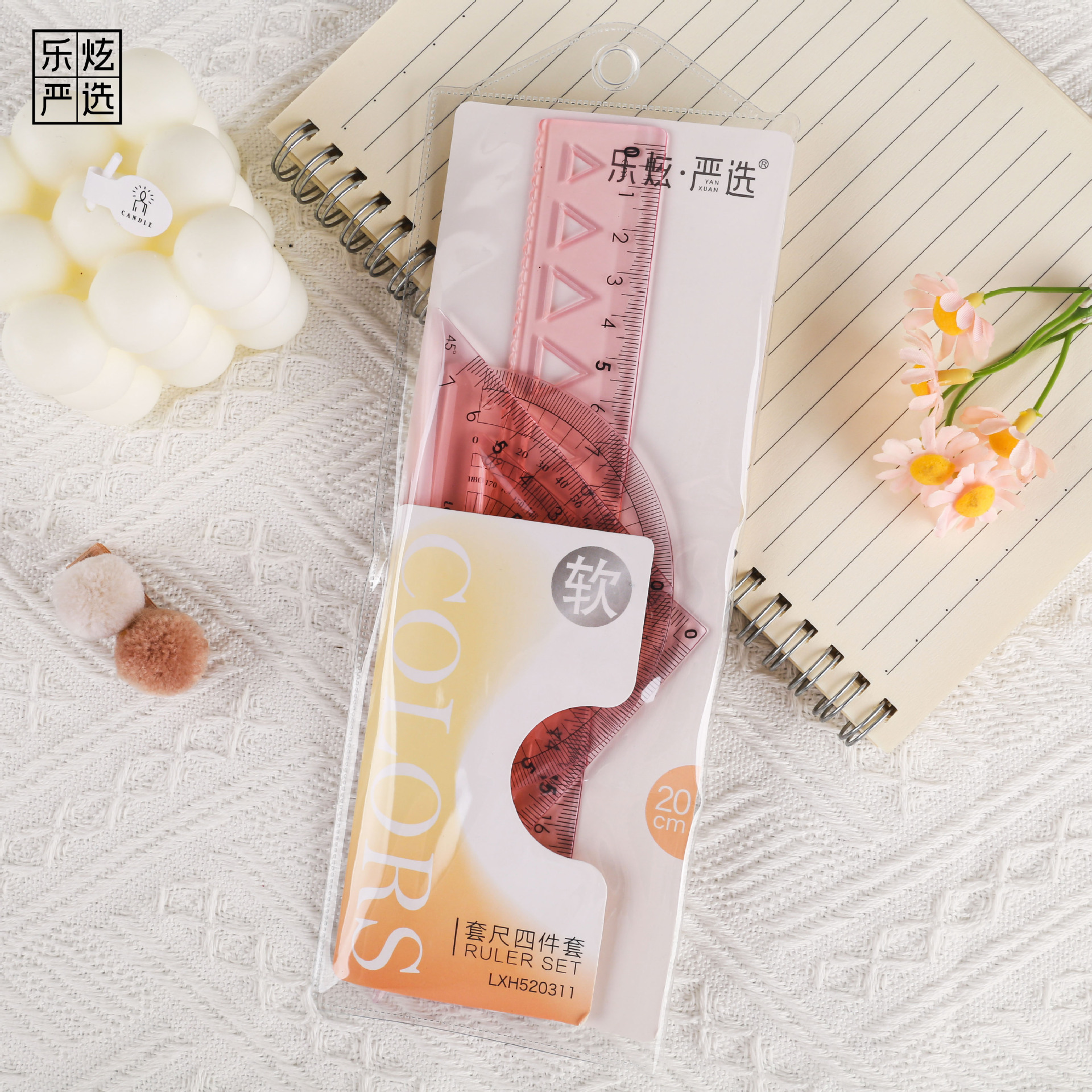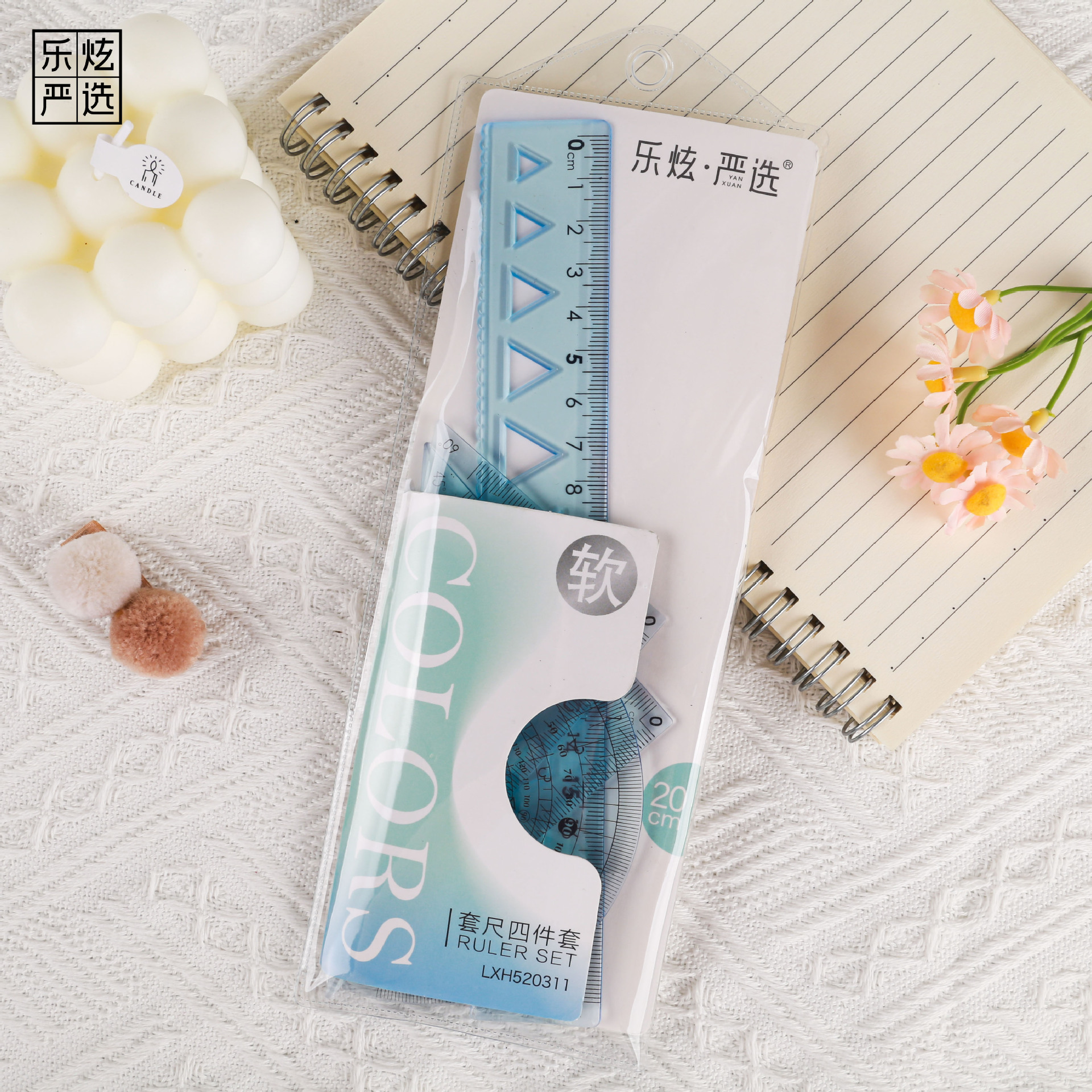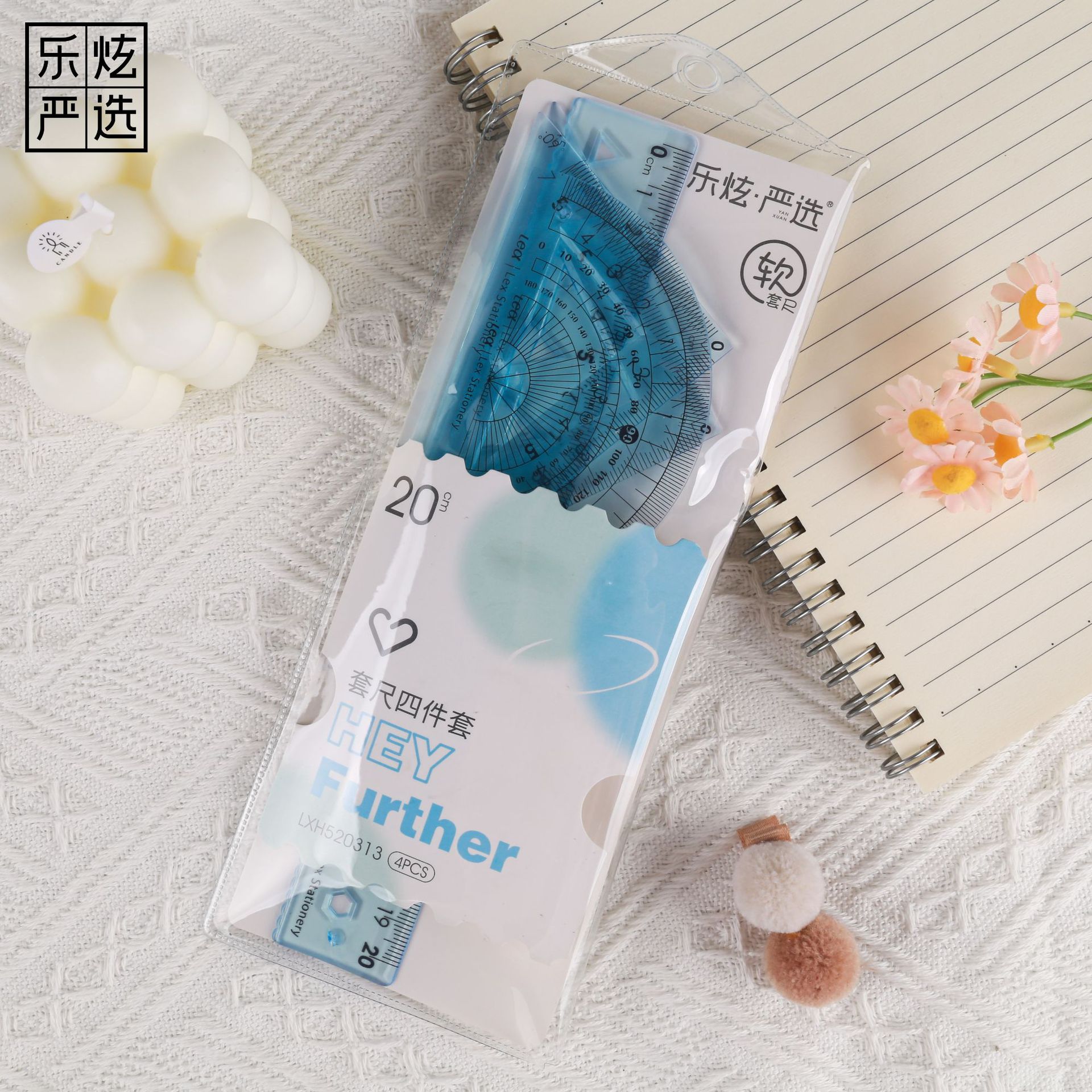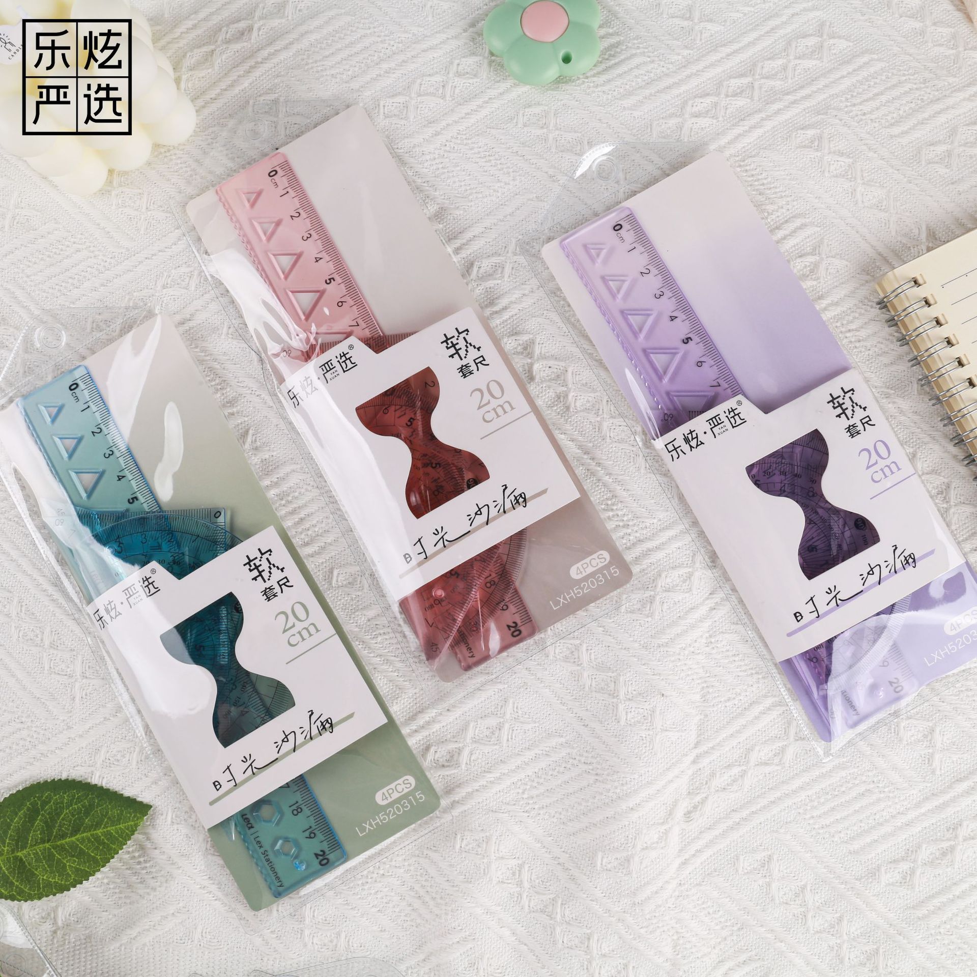 乐炫20cm软尺套装学生绘图用三角版直尺量角器多规格套尺批发