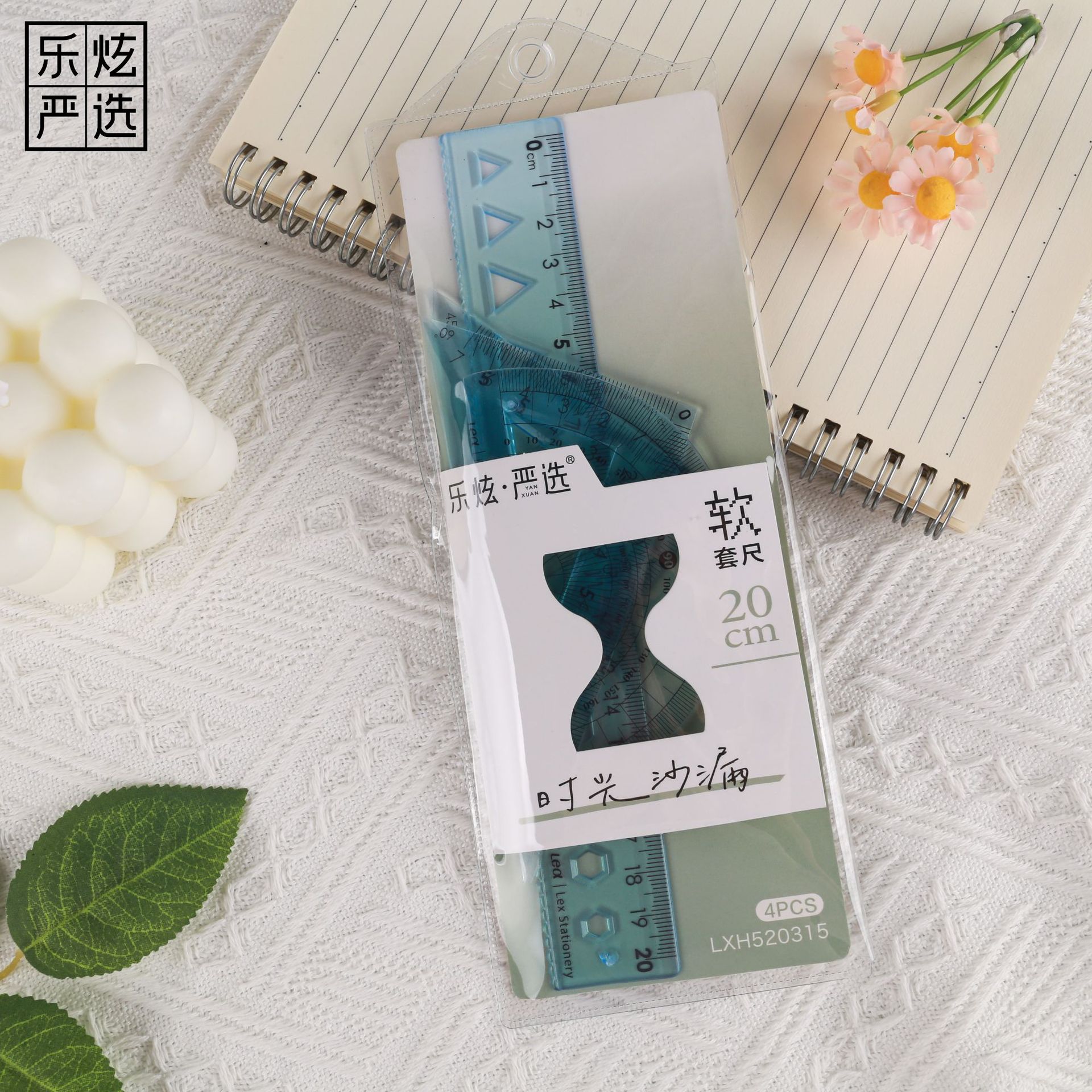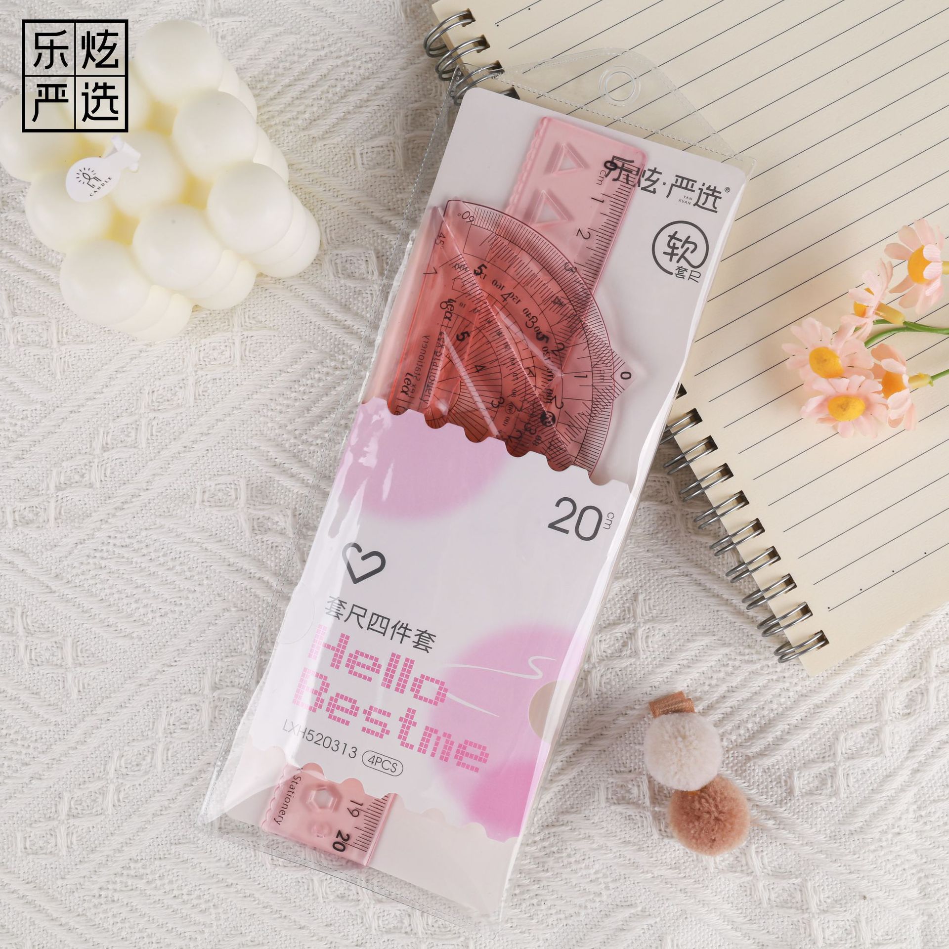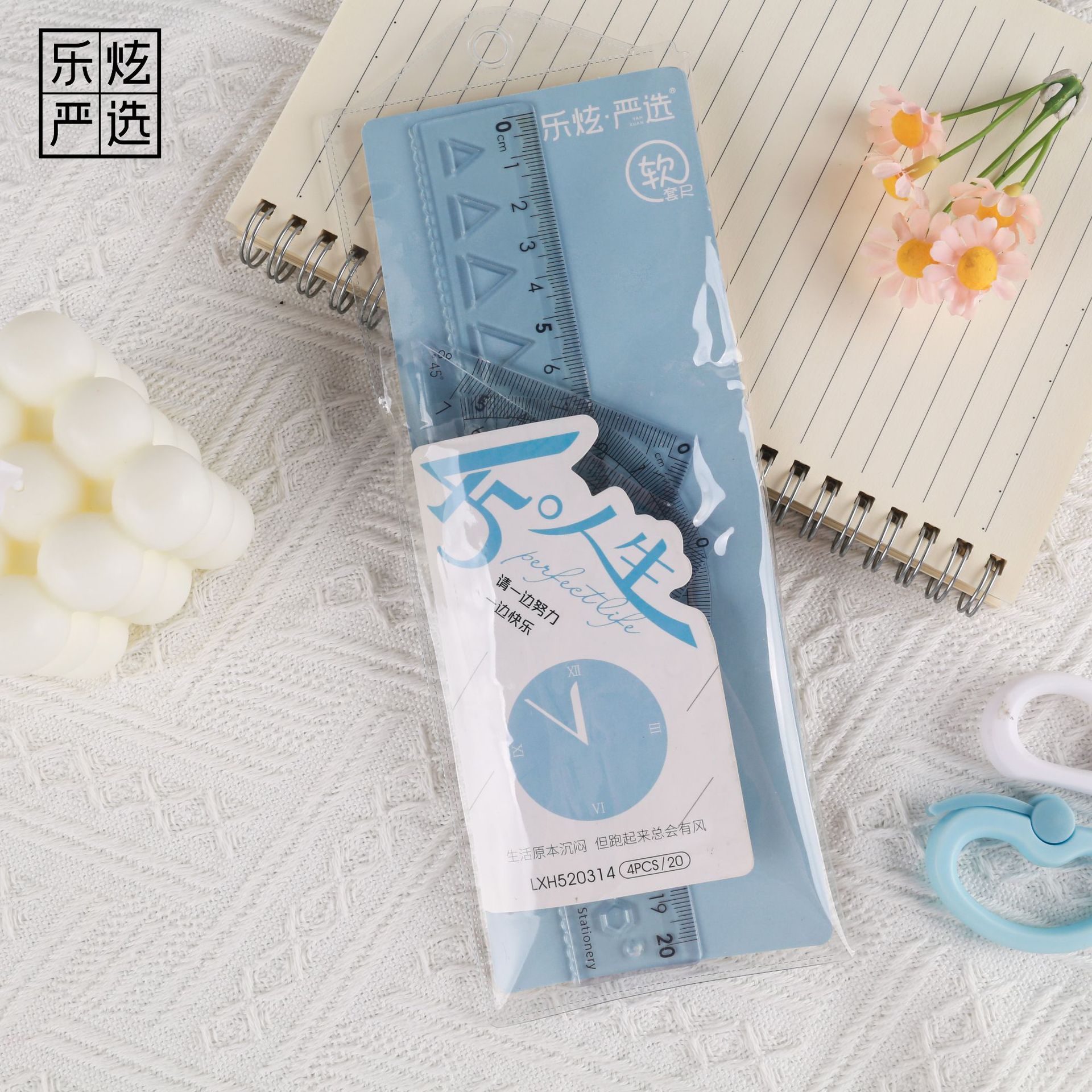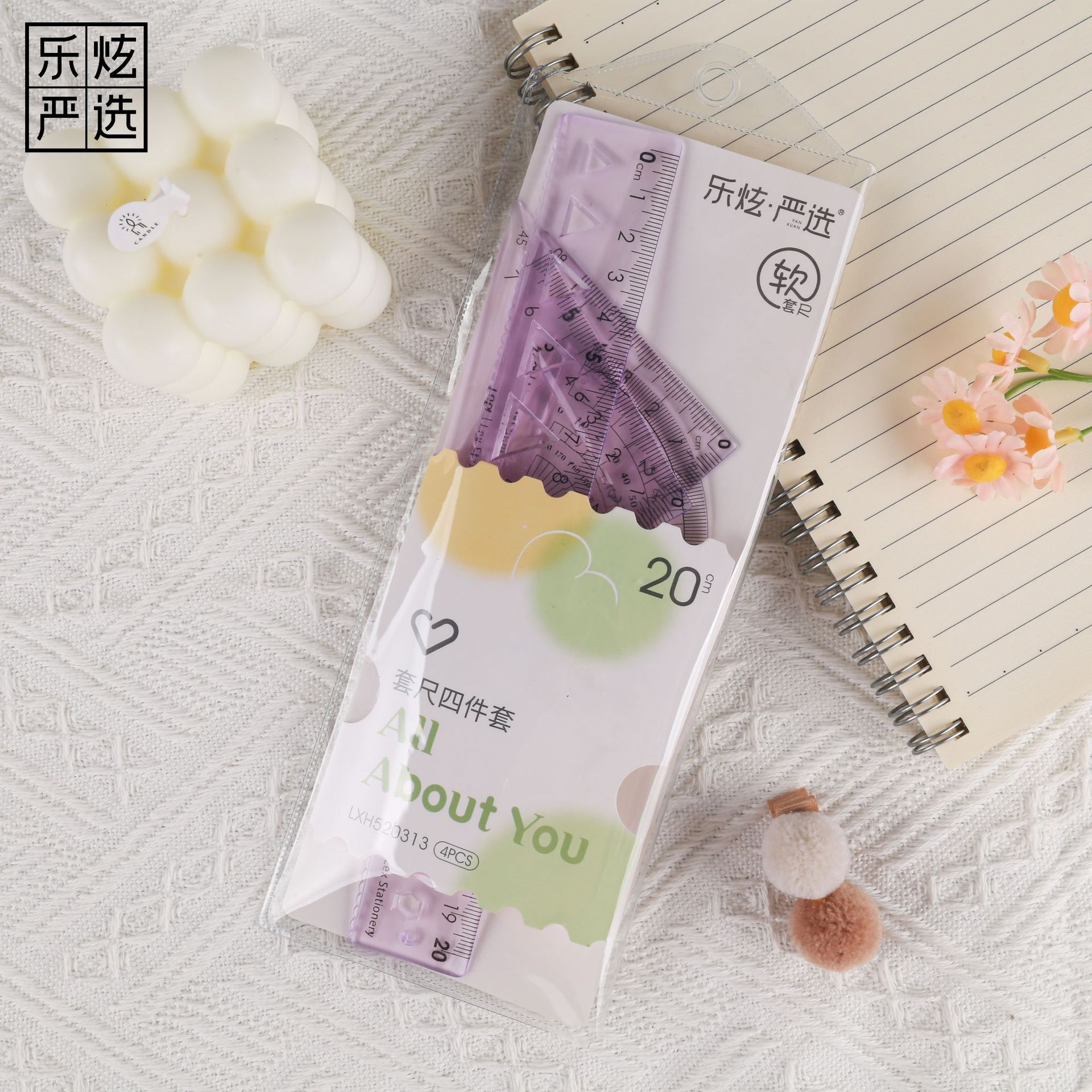 乐炫20cm软尺套装学生绘图用三角版直尺量角器多规格套尺批发