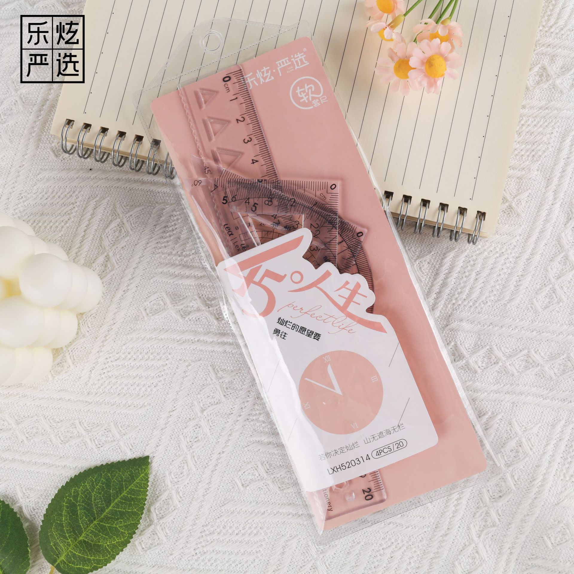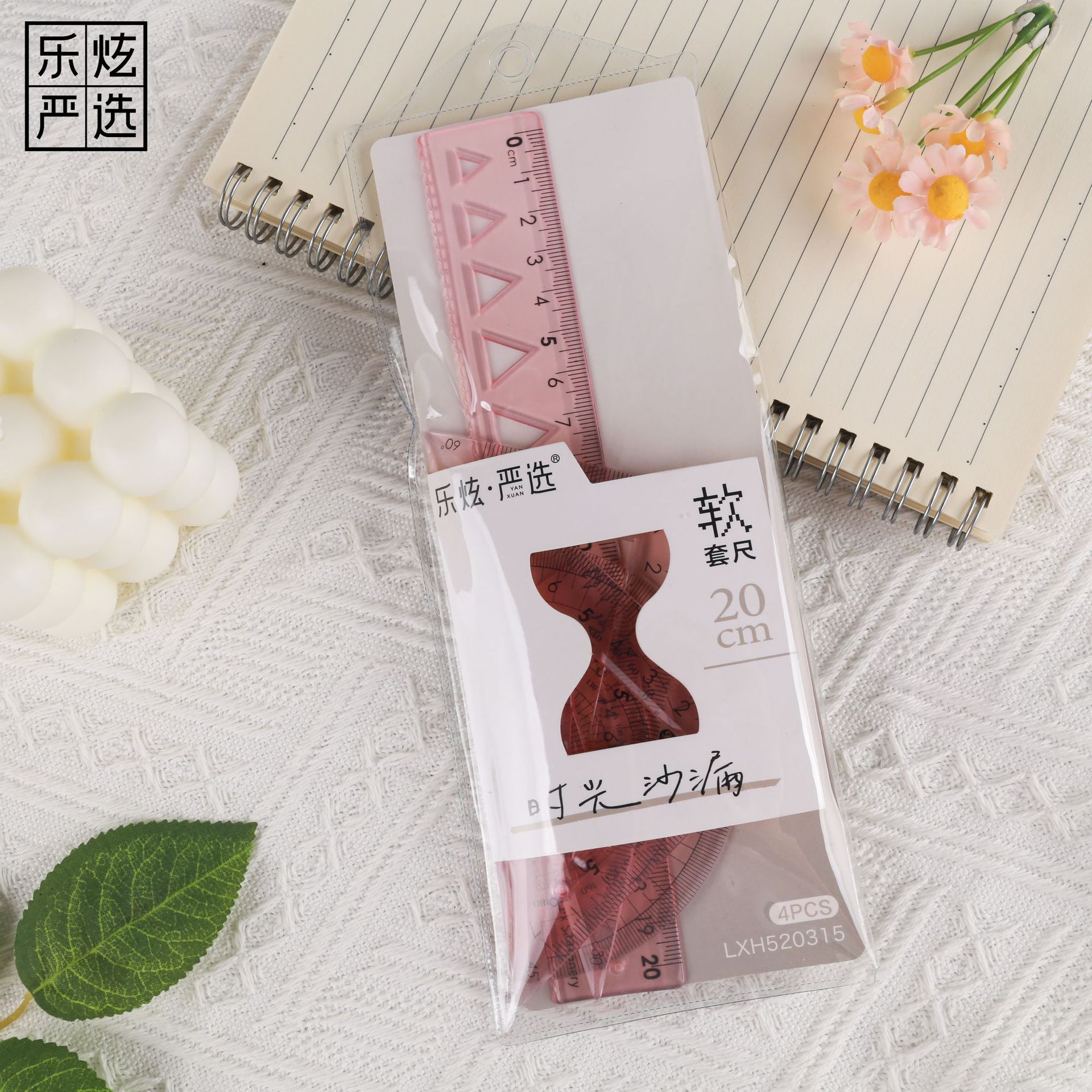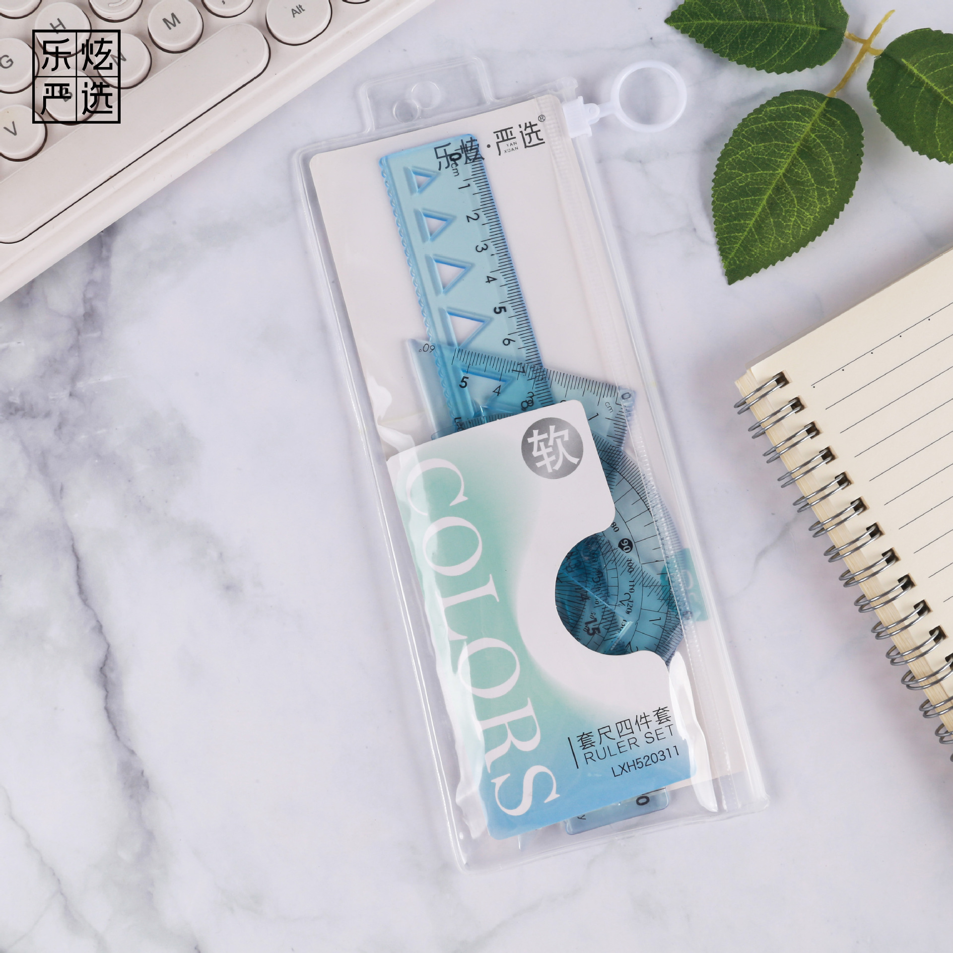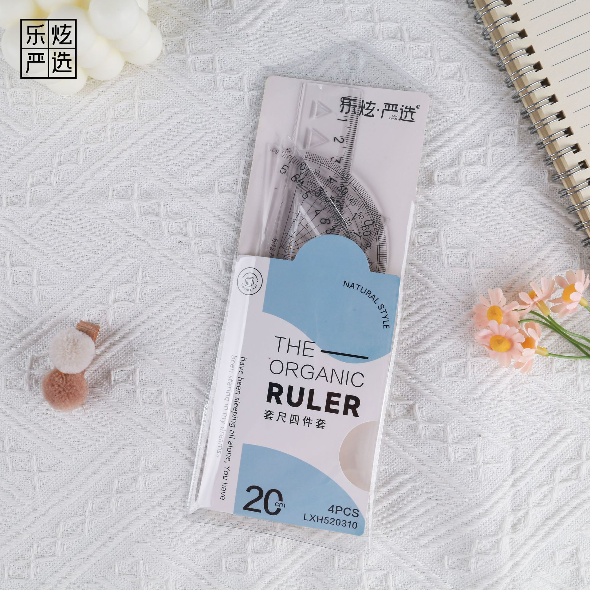 乐炫20cm软尺套装学生绘图用三角版直尺量角器多规格套尺批发