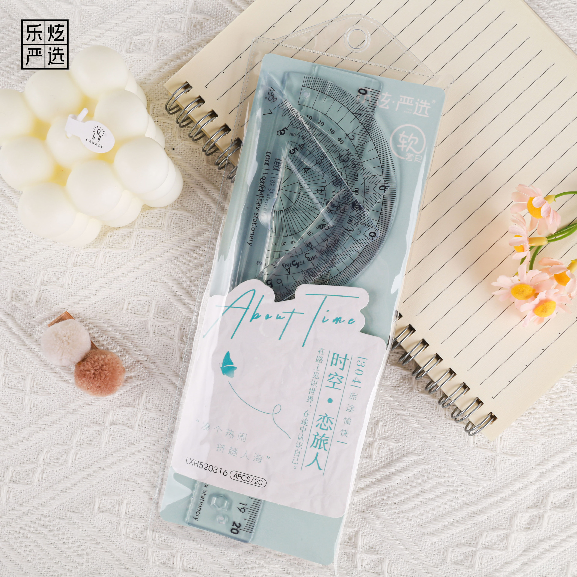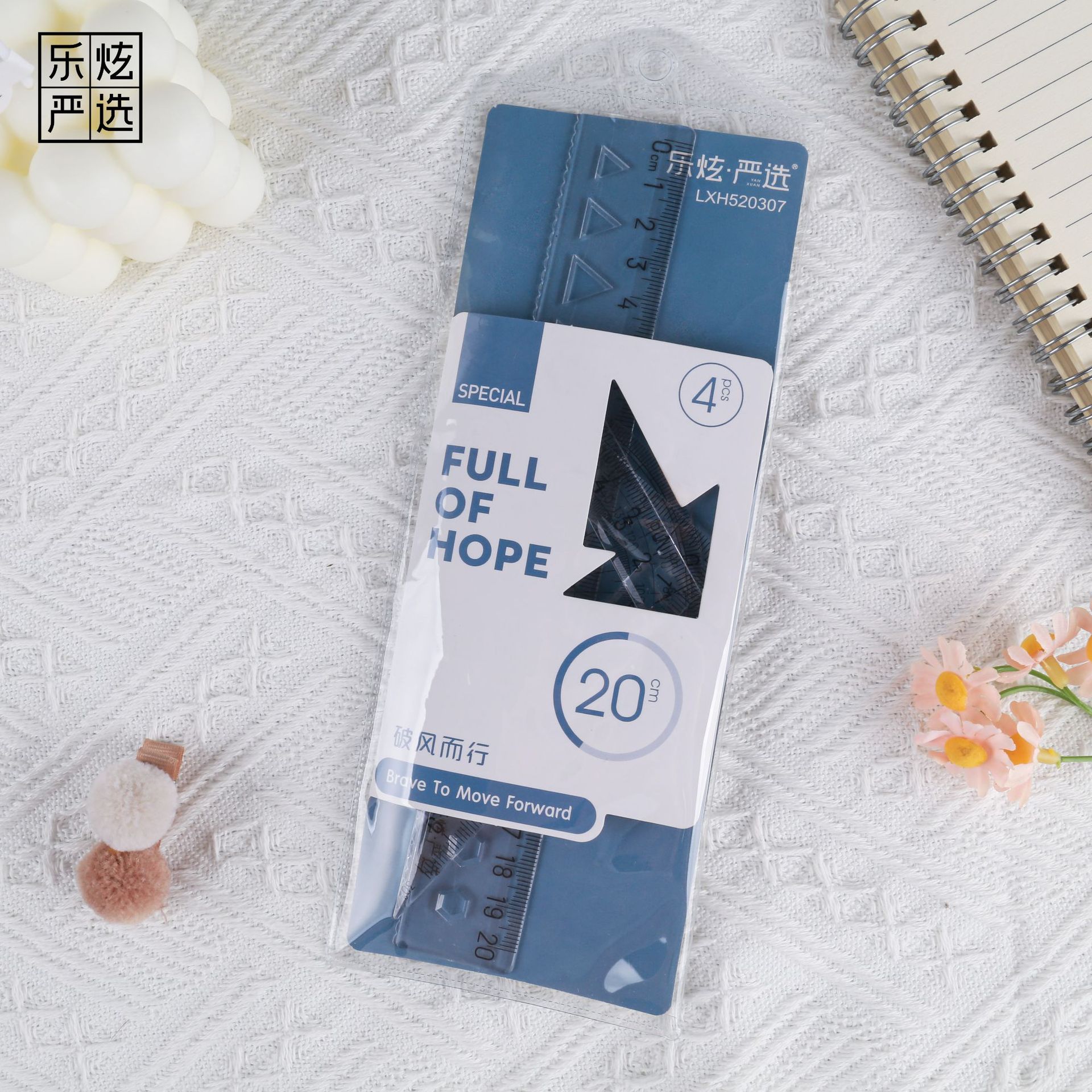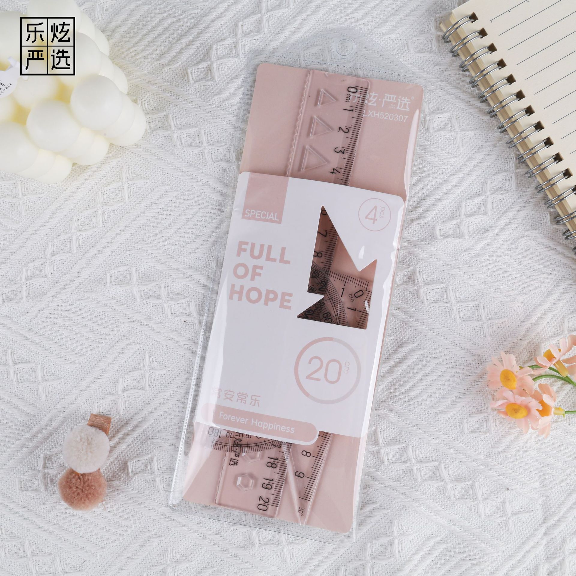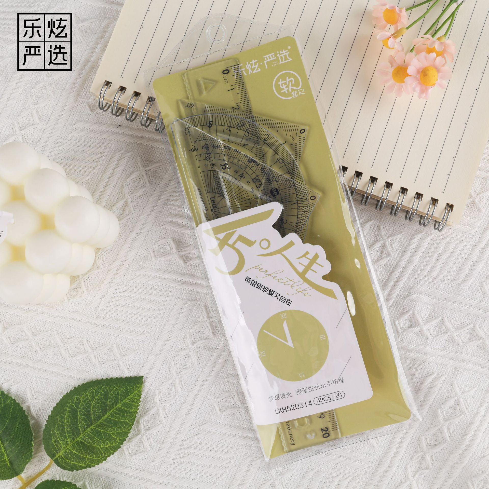 乐炫20cm软尺套装学生绘图用三角版直尺量角器多规格套尺批发