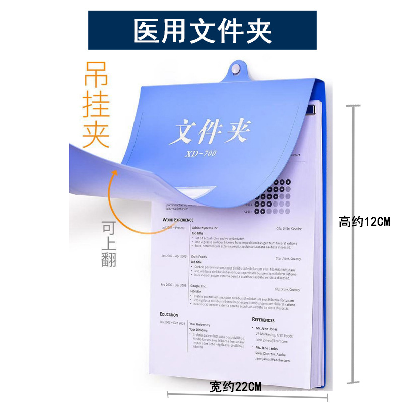 塑料病历夹加强病历夹ABS病历夹蓝色医院诊所护士病历文件夹耐摔