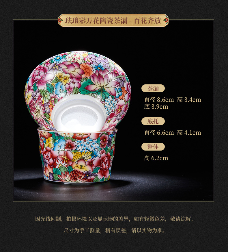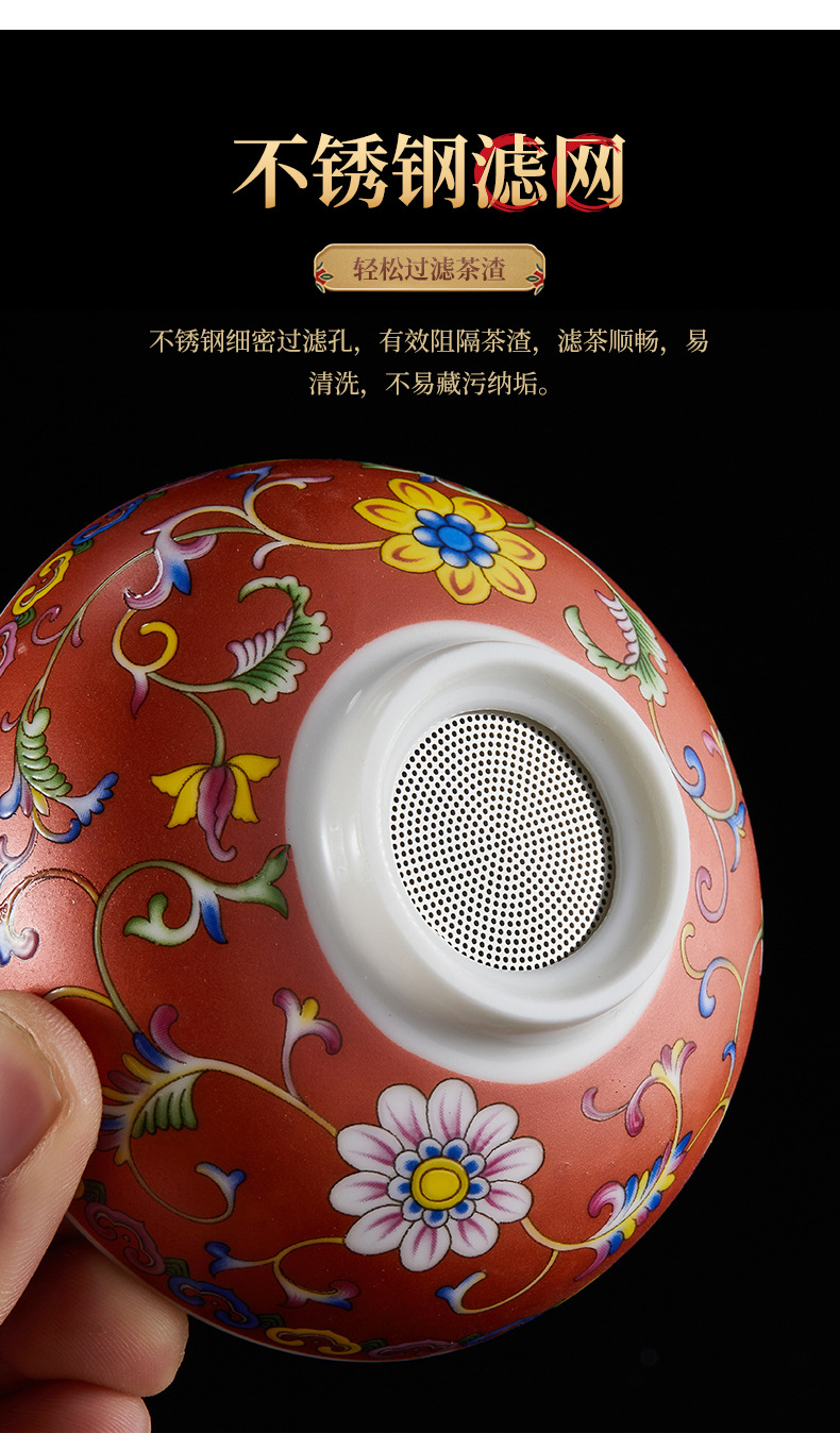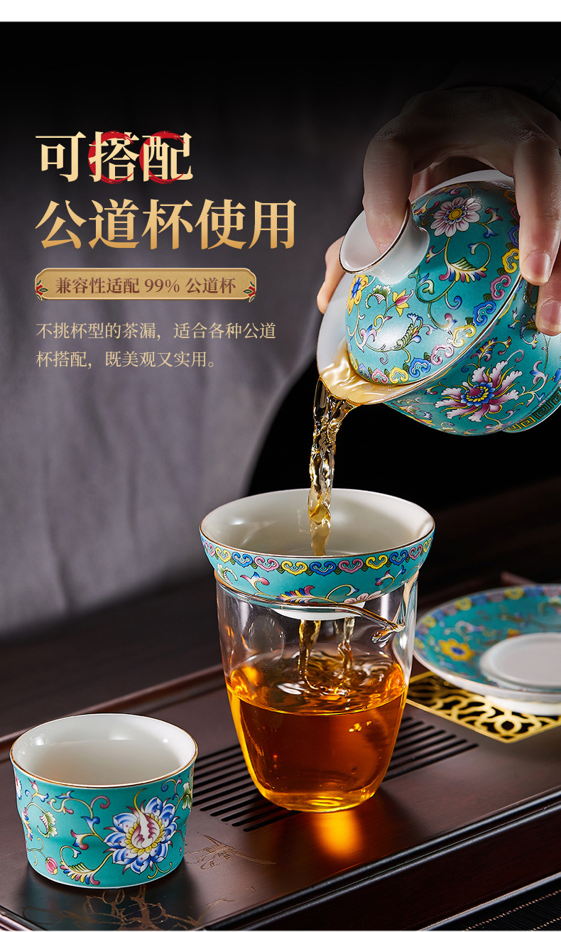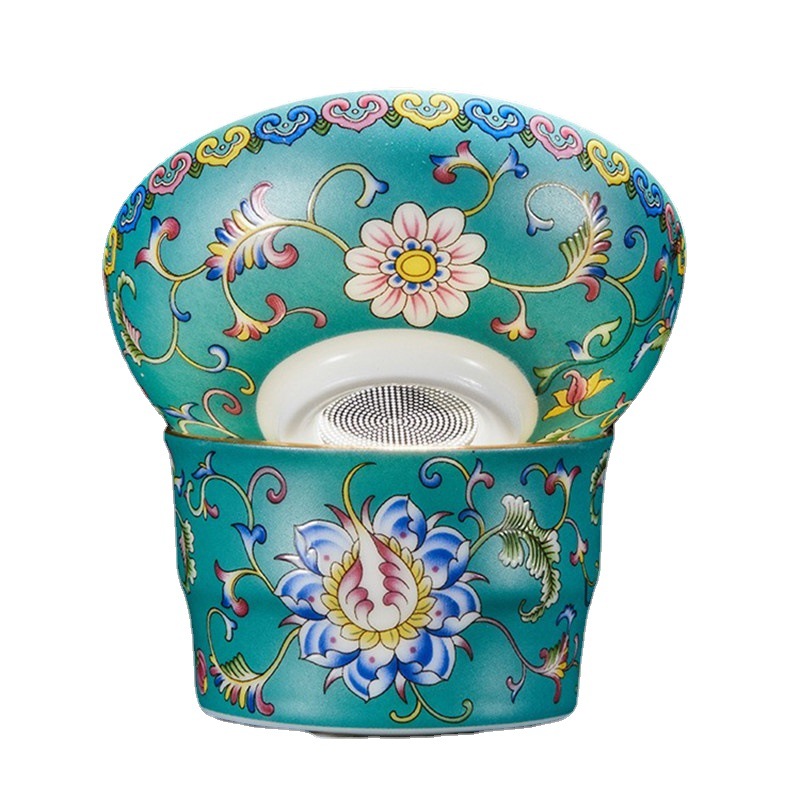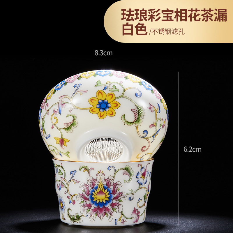 珐琅彩茶滤茶漏陶瓷功夫过滤网茶道单配件茶具茶隔茶道茶叶过滤器