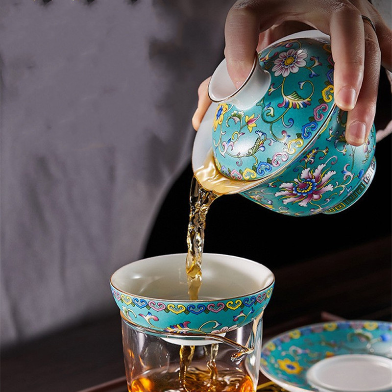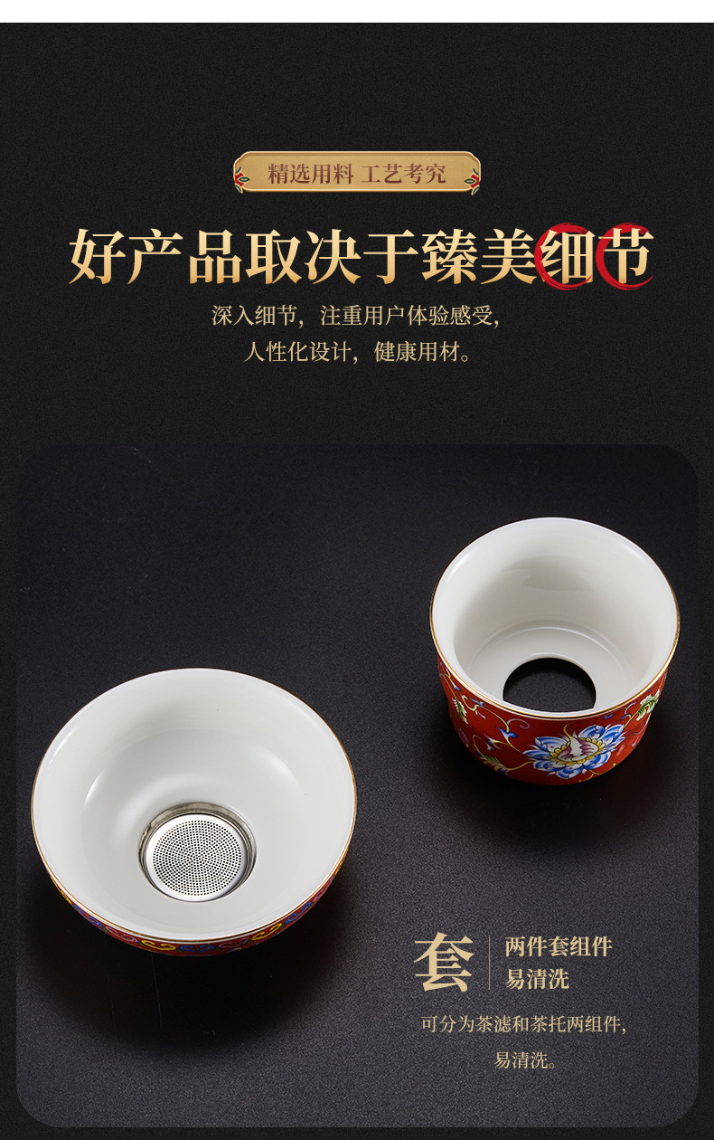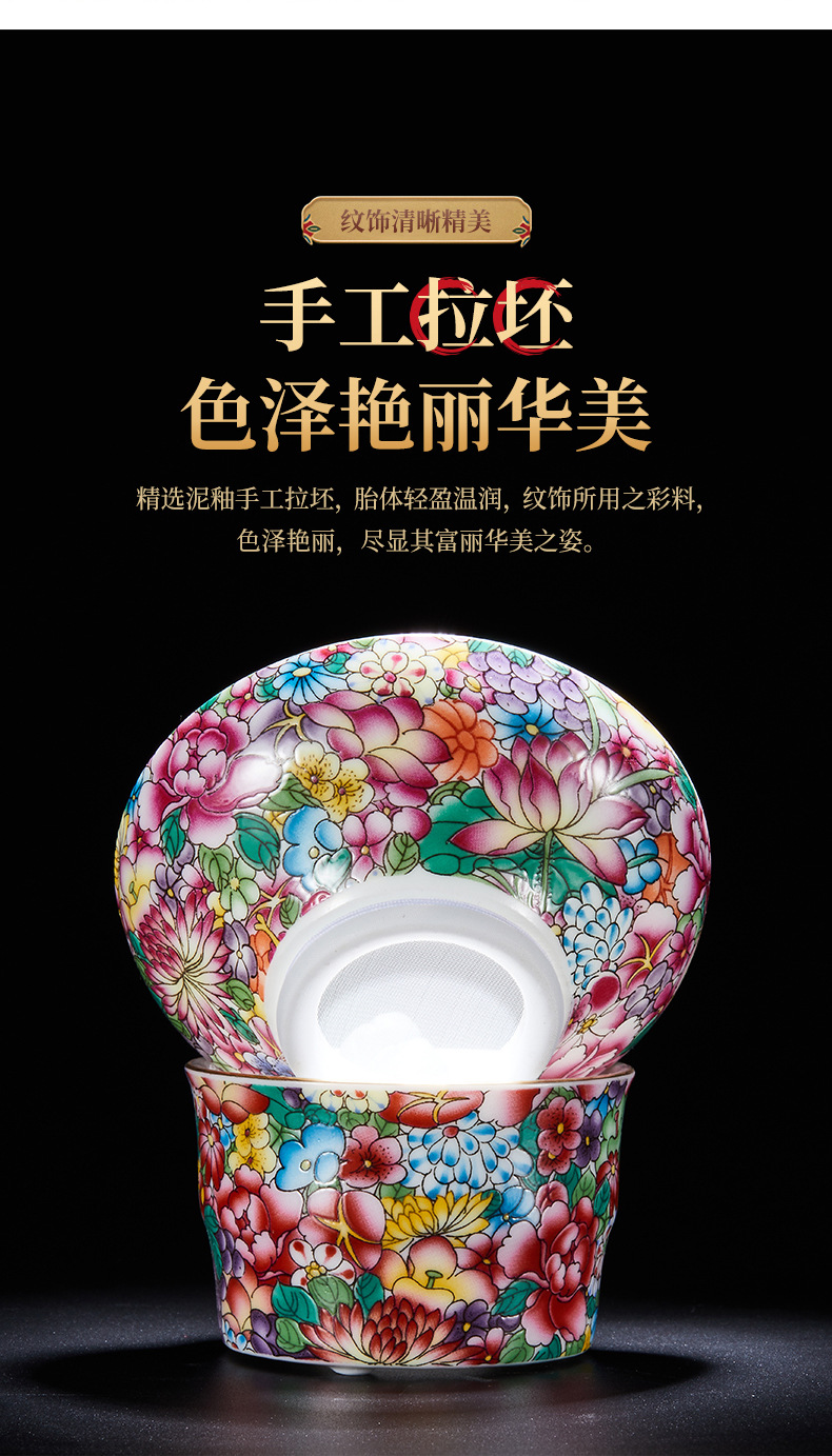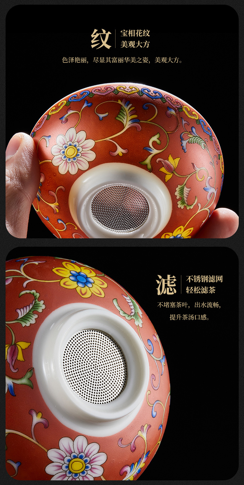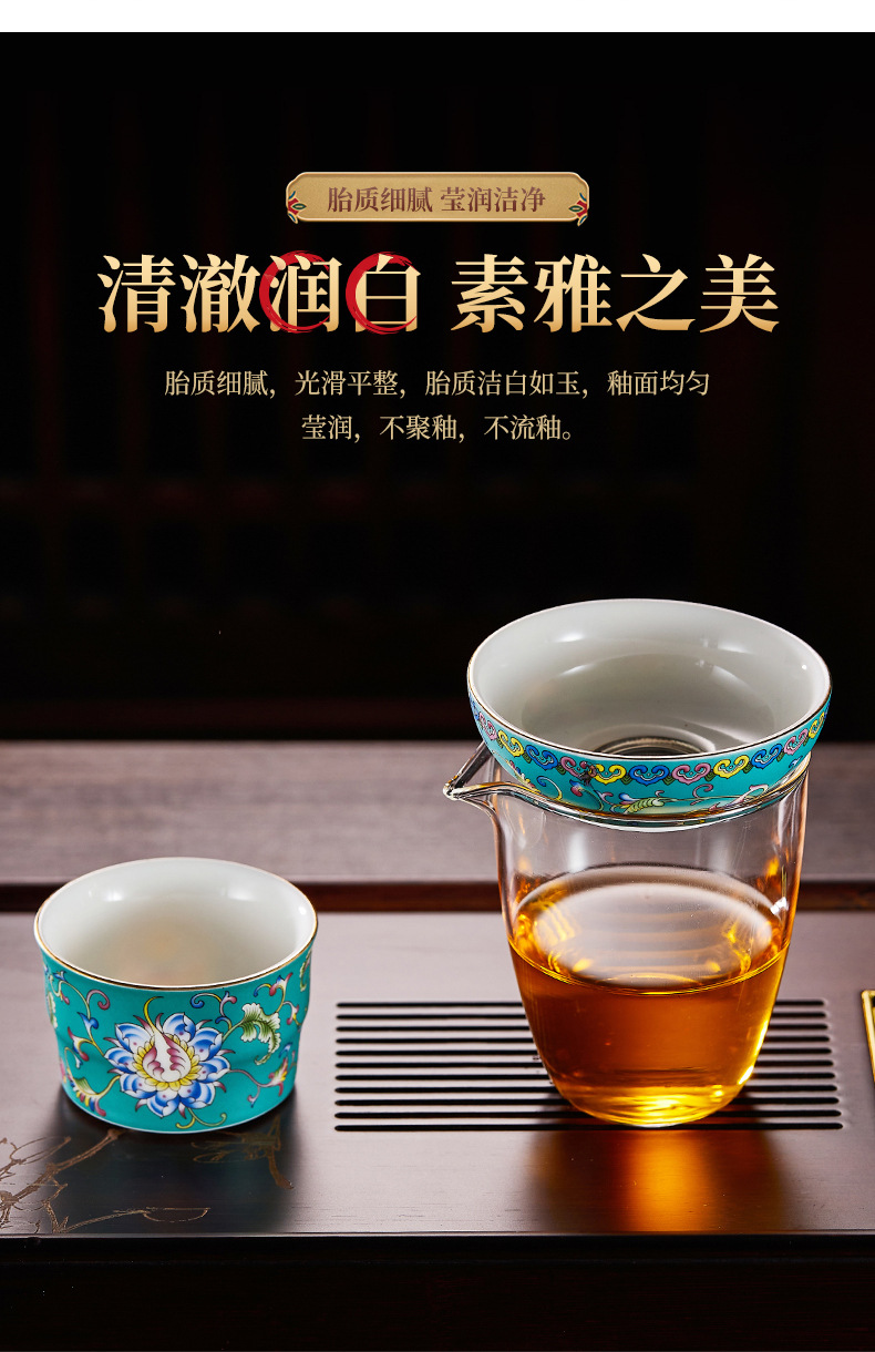 珐琅彩茶滤茶漏陶瓷功夫过滤网茶道单配件茶具茶隔茶道茶叶过滤器