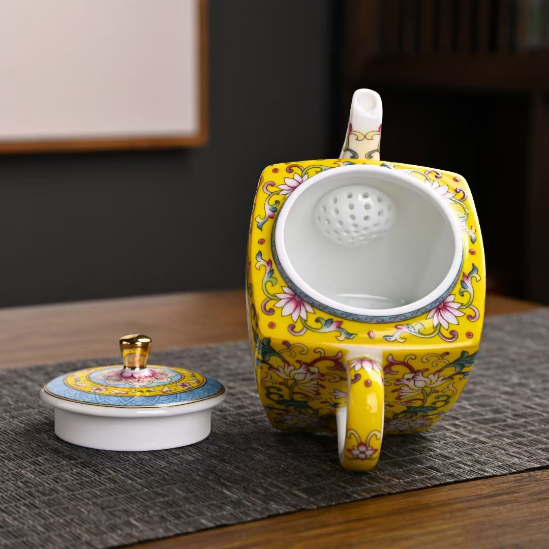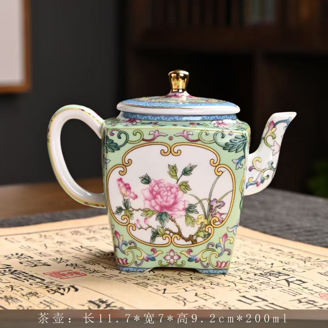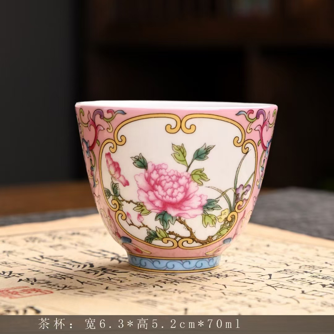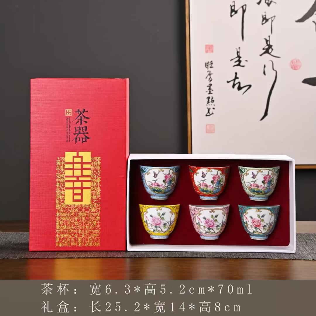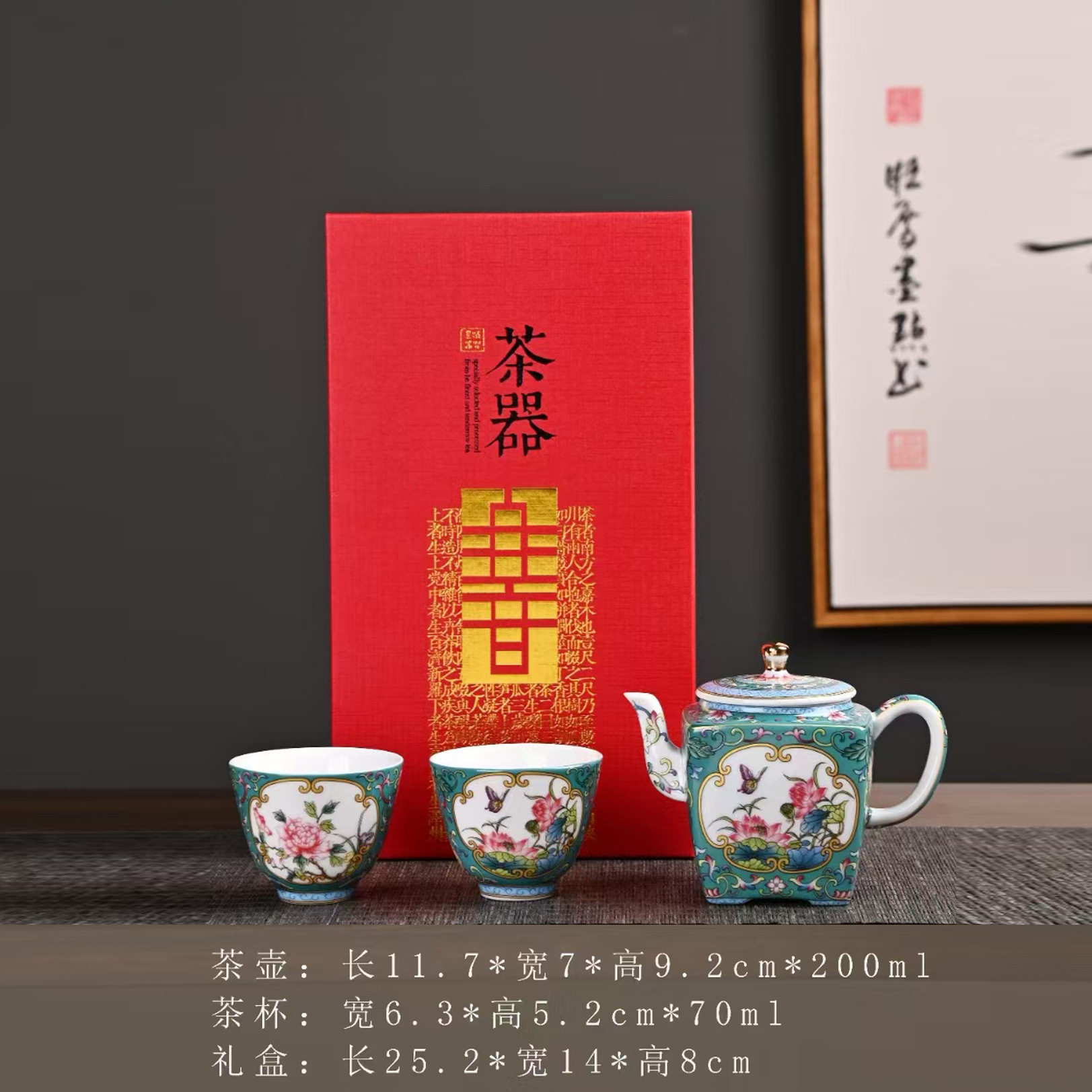 中国风茶壶茶杯个人杯扒花满彩茶壶一壶2杯礼盒万花锦绣主人杯礼
