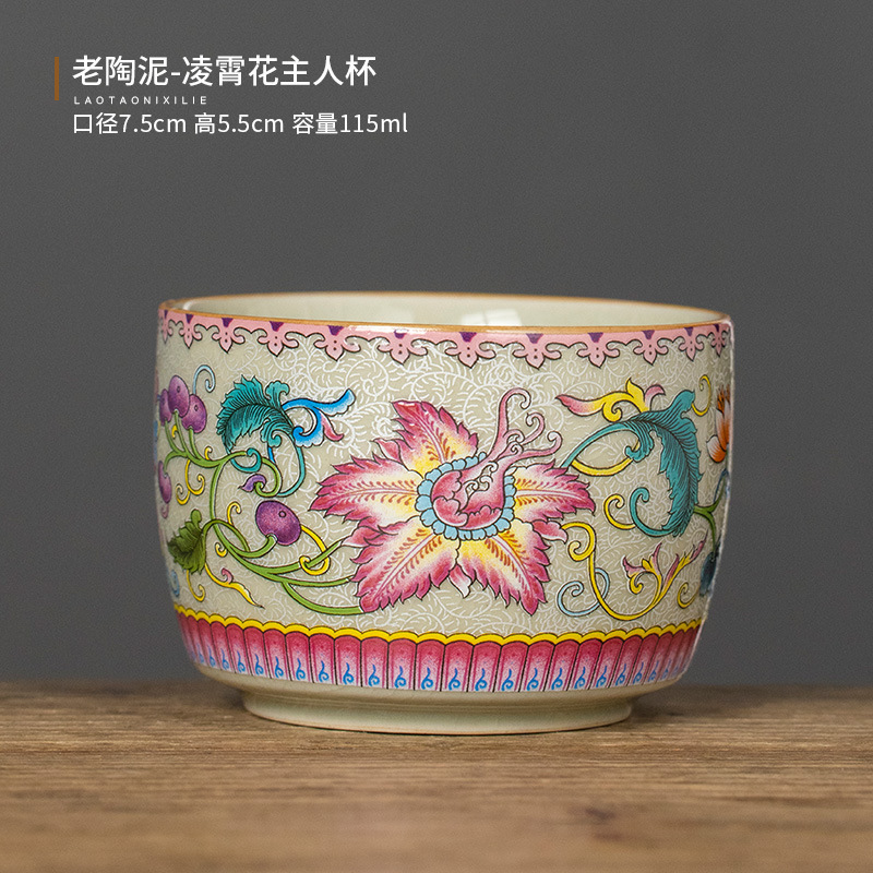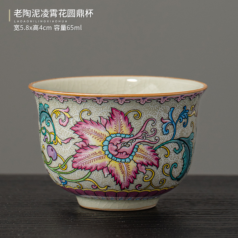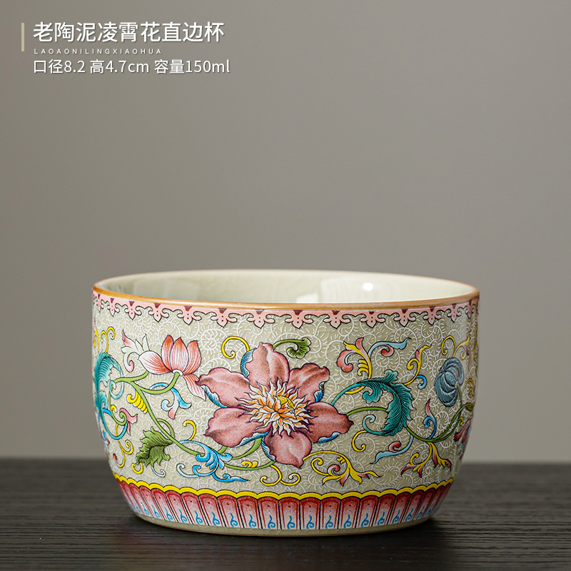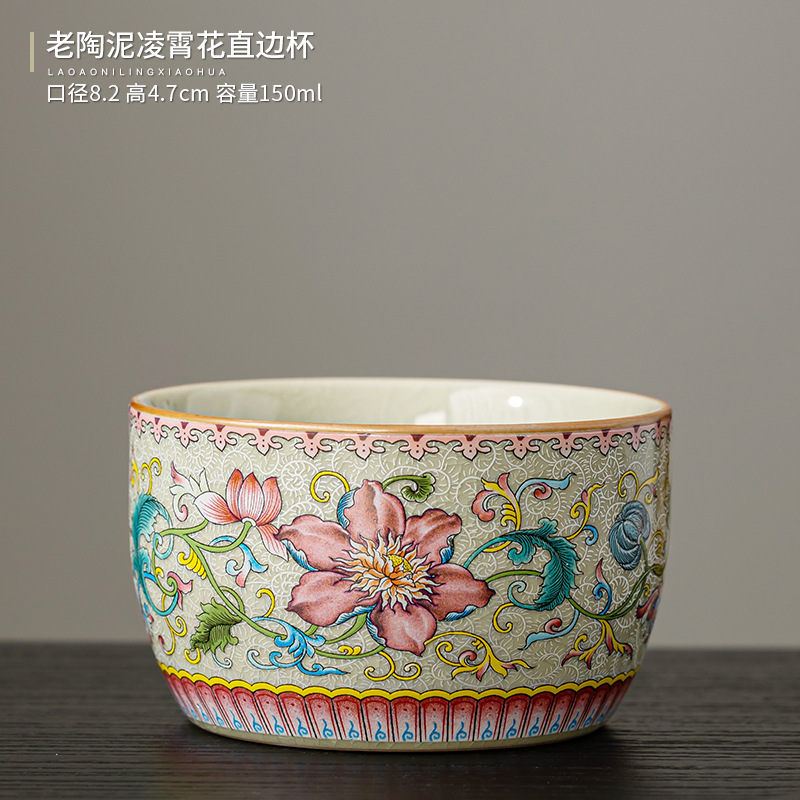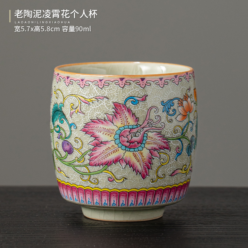 老陶泥凌霄花主人杯茶杯品茗杯功夫茶花瓣杯中式家用喝茶杯可养杯