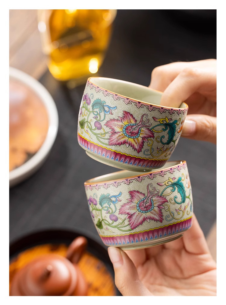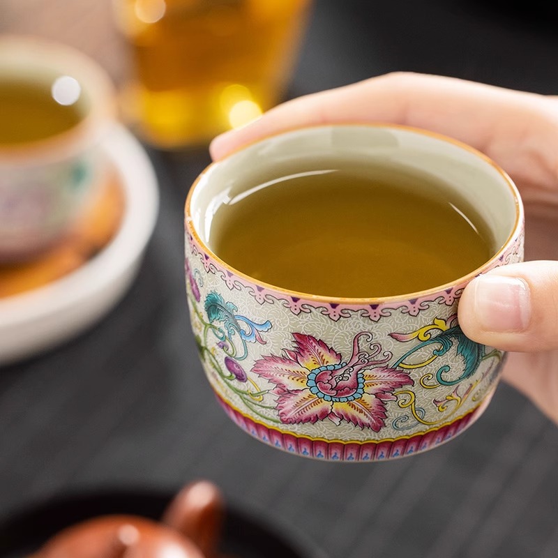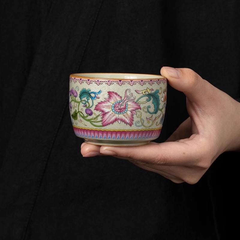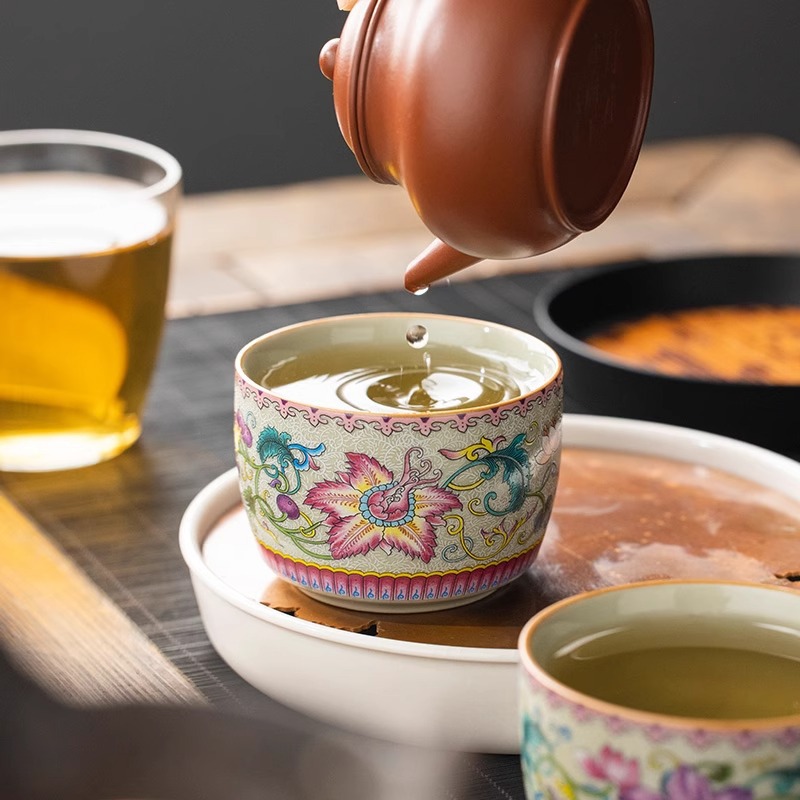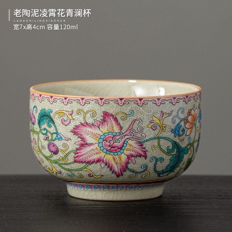 老陶泥凌霄花主人杯茶杯品茗杯功夫茶花瓣杯中式家用喝茶杯可养杯