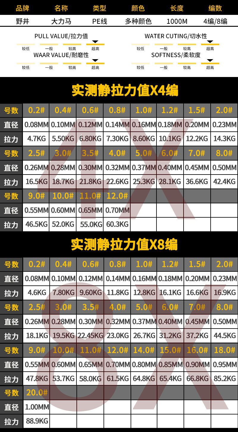 野井钓鱼线大力马线正品路亚8编编织1000米强拉力pe线主线子线撒4