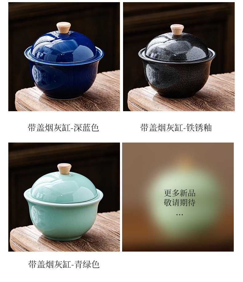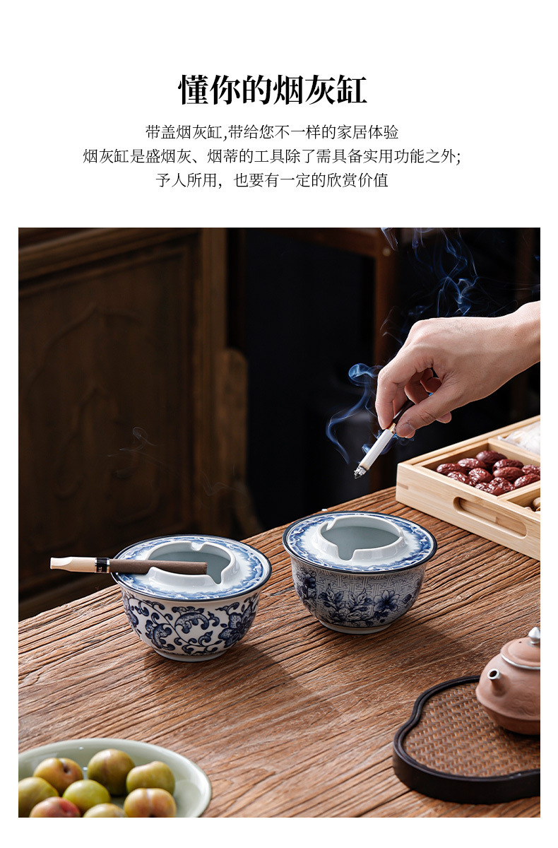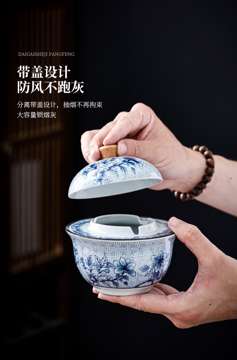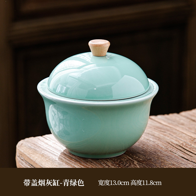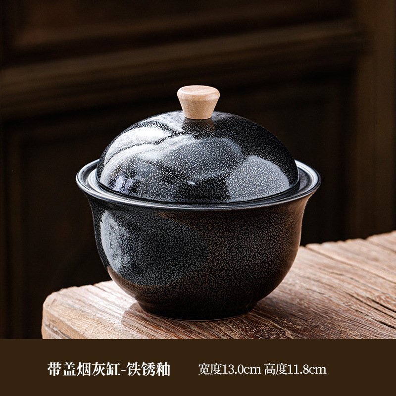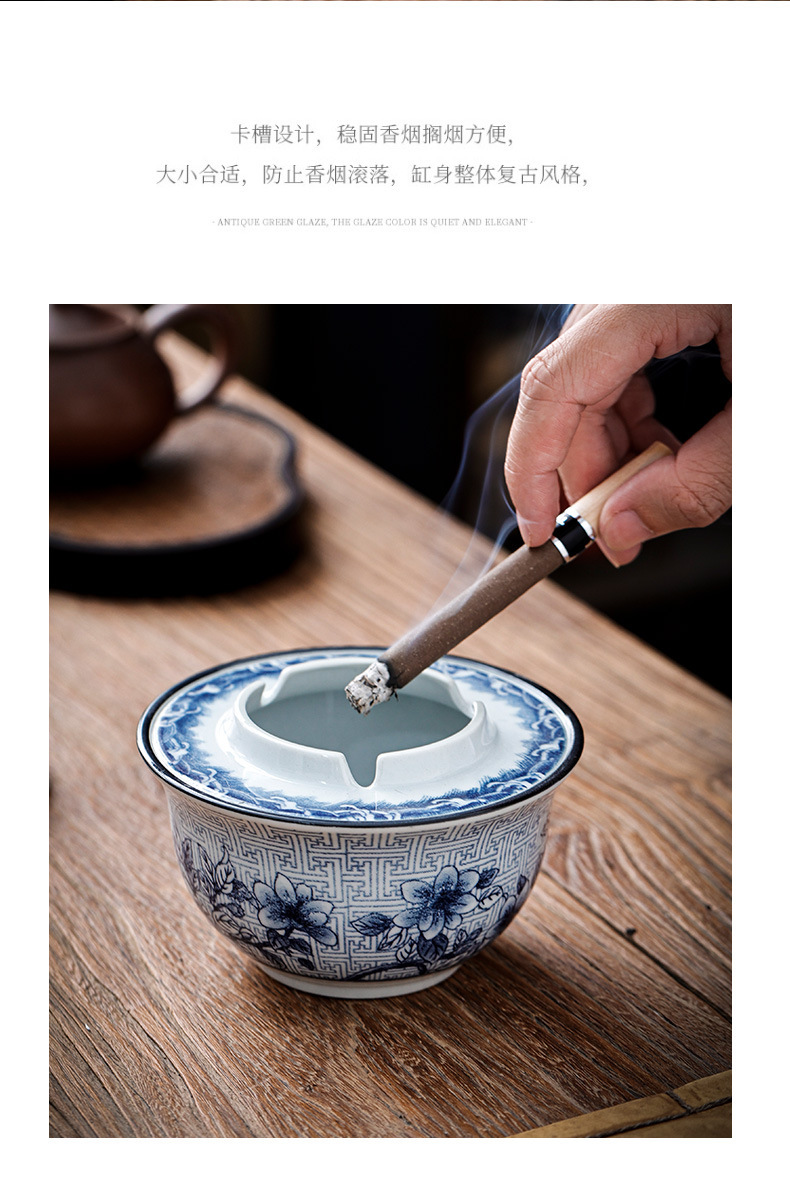烟灰缸带盖子陶瓷复古家用办公室防飞灰防自燃烟灰桶防风雪茄烟缸