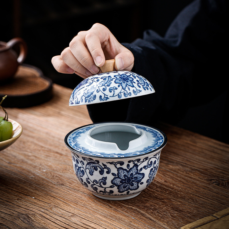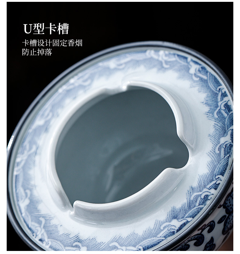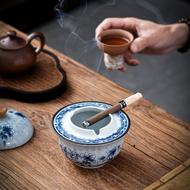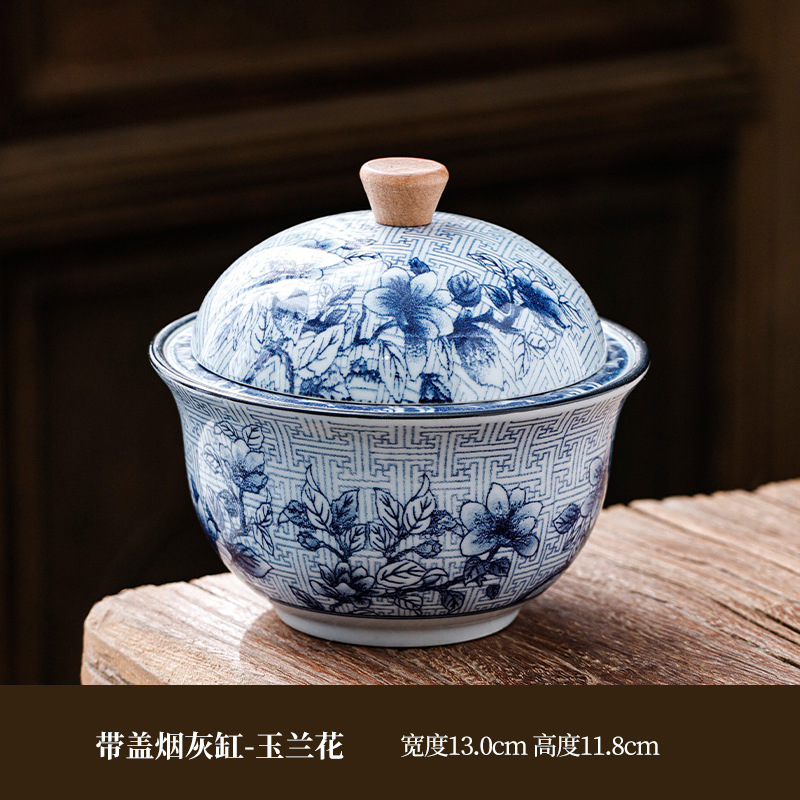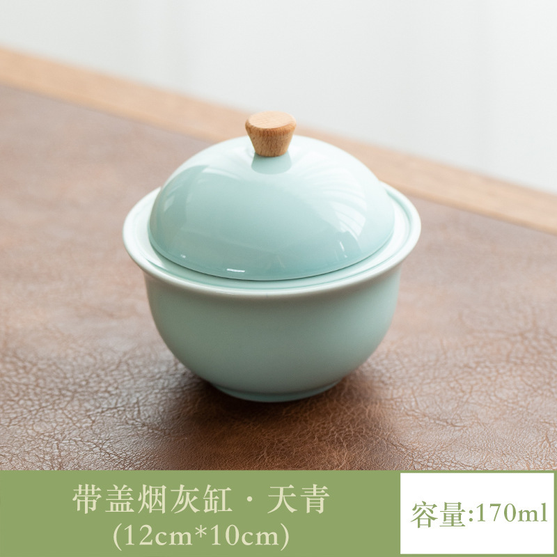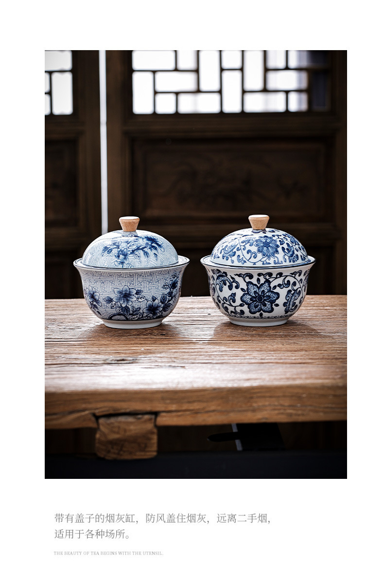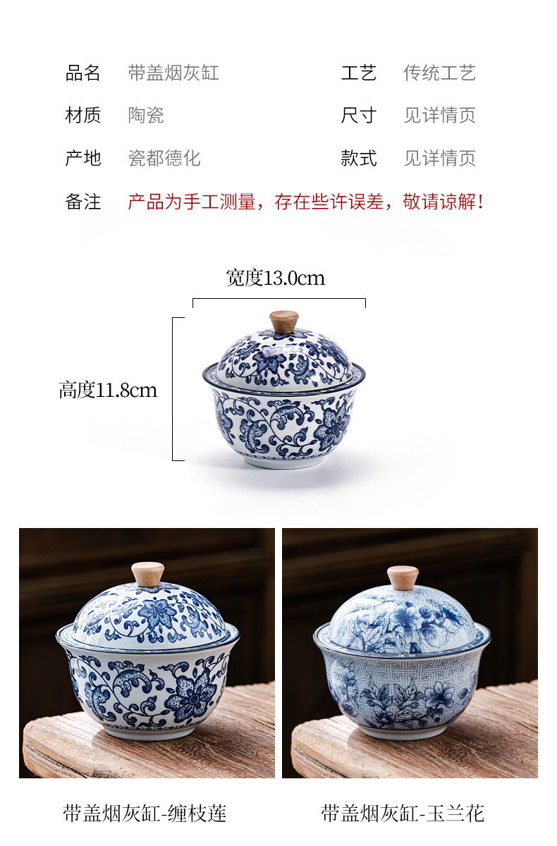 烟灰缸带盖子陶瓷复古家用办公室防飞灰防自燃烟灰桶防风雪茄烟缸