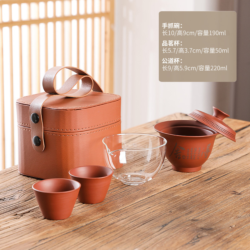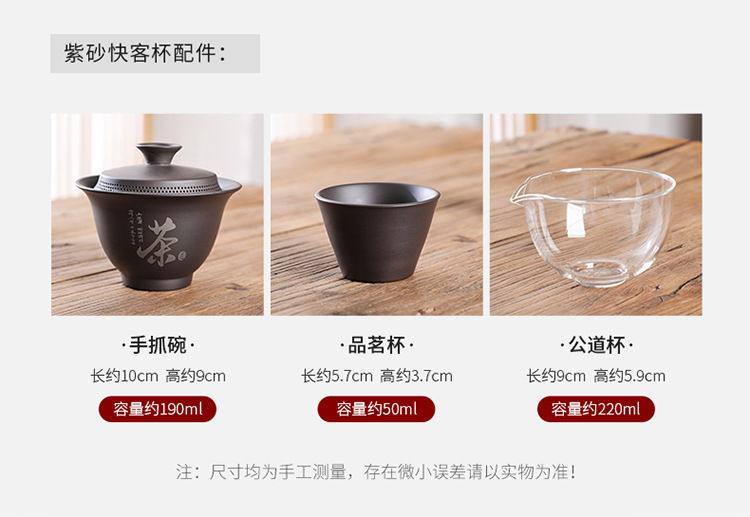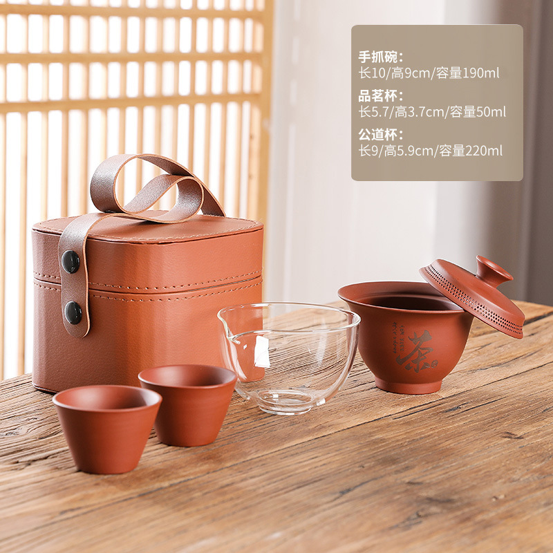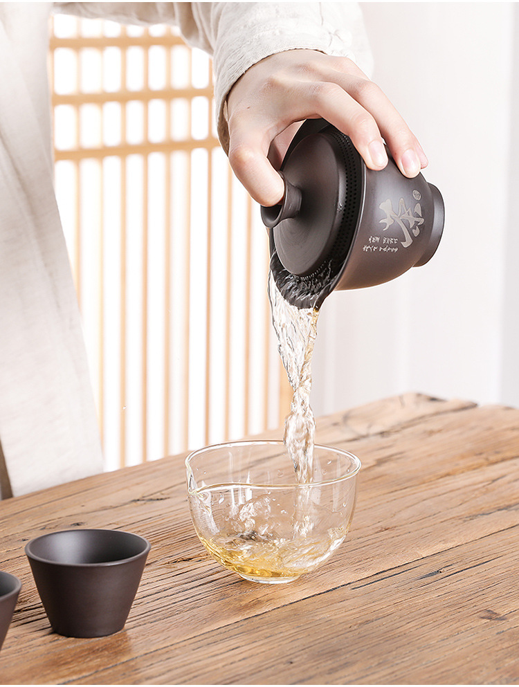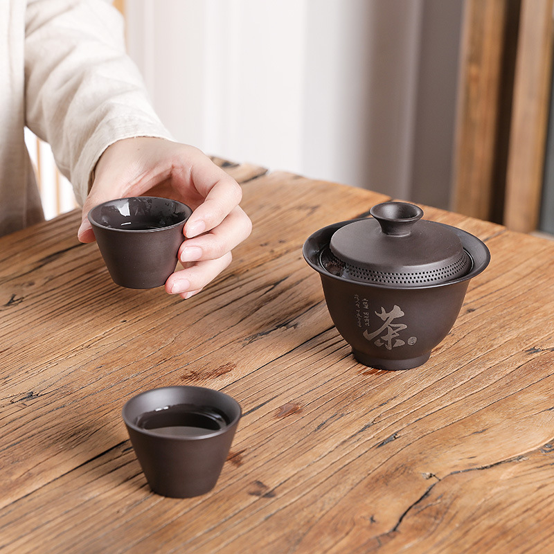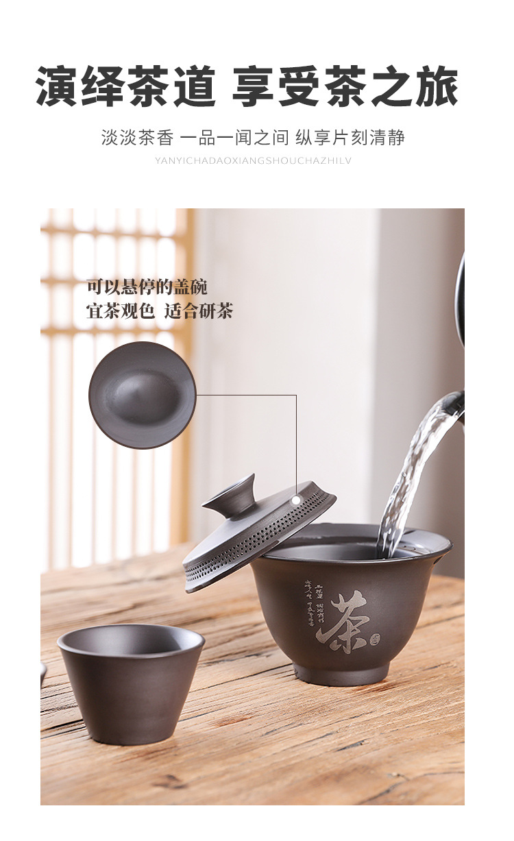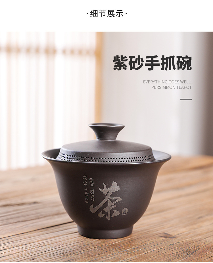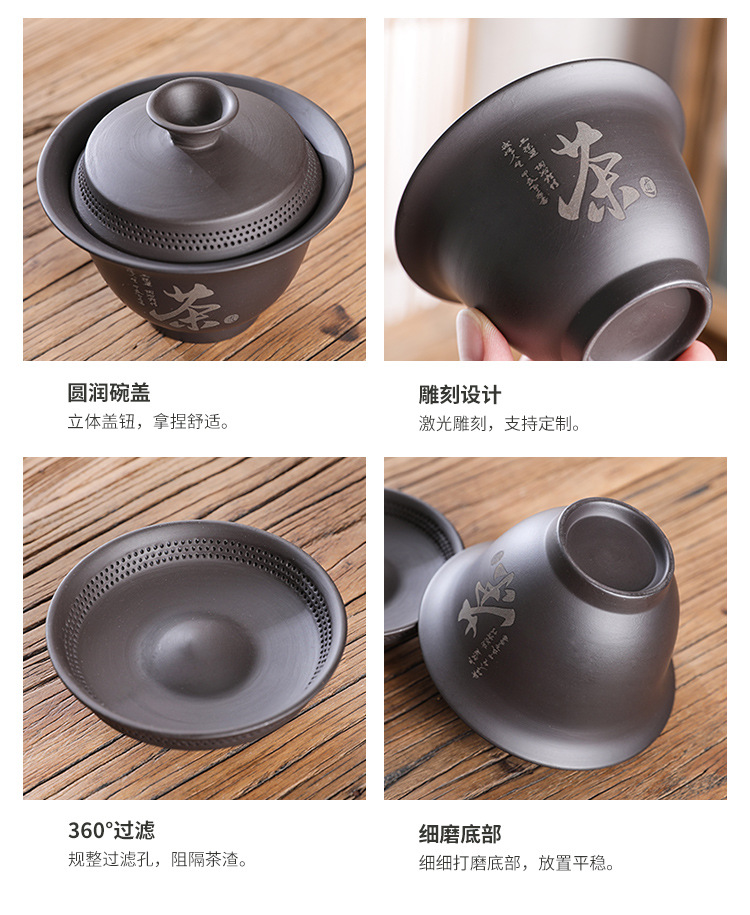 原矿紫砂旅行茶具可悬停盖碗多孔过滤盖碗快客杯手抓碗礼品logo