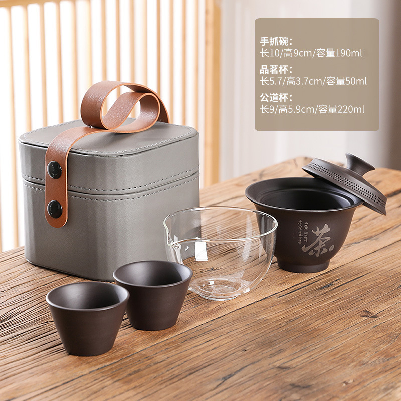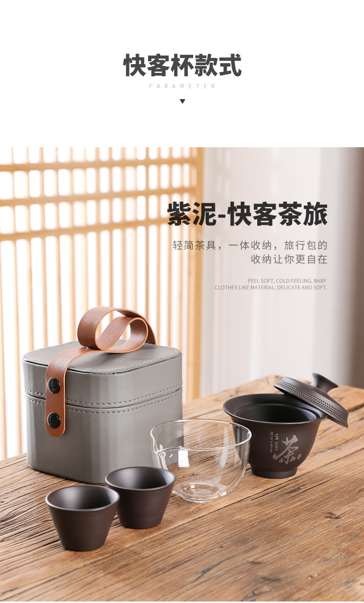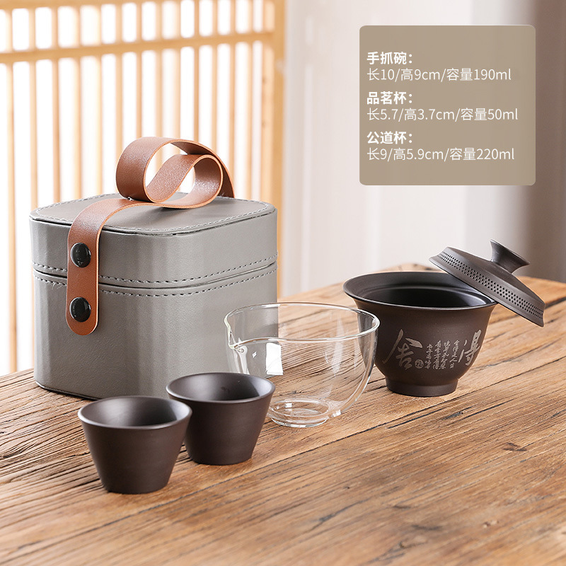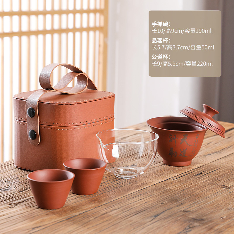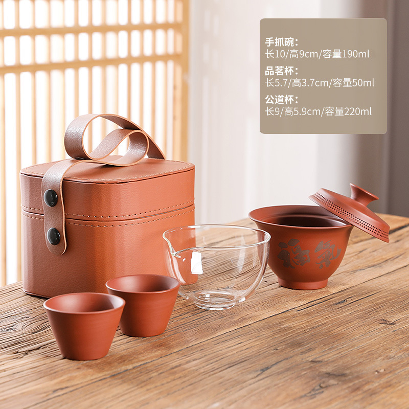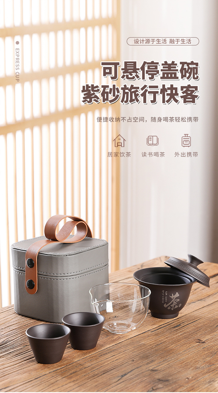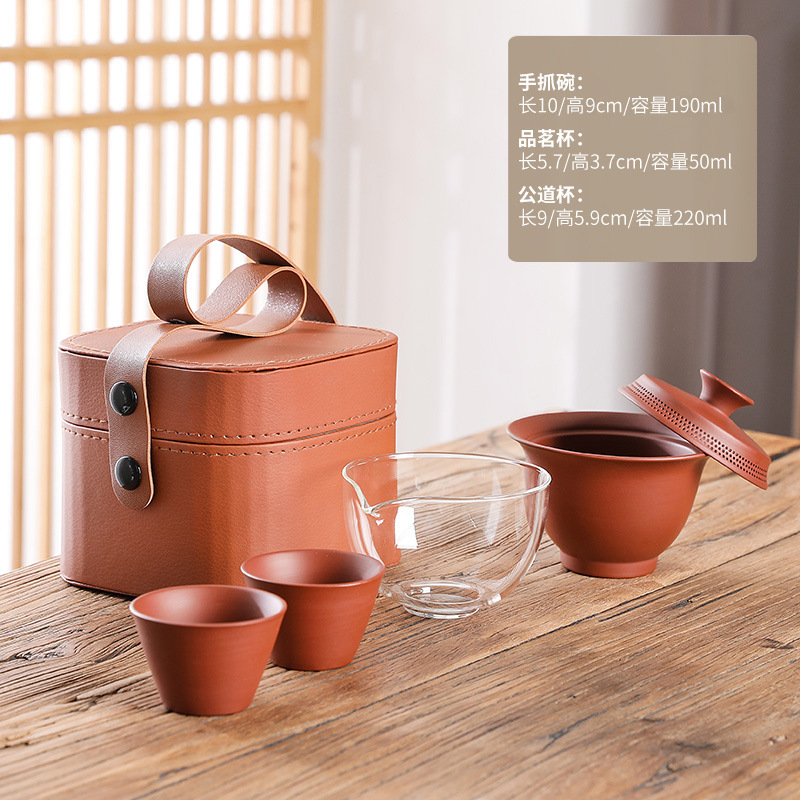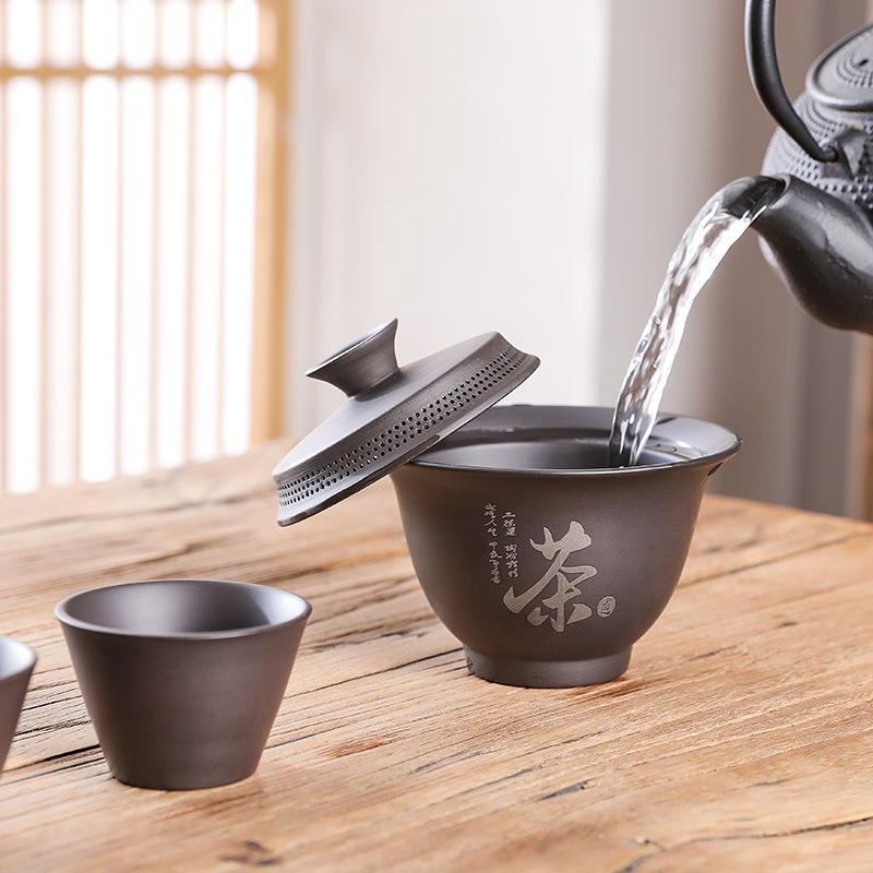 原矿紫砂旅行茶具可悬停盖碗多孔过滤盖碗快客杯手抓碗礼品logo