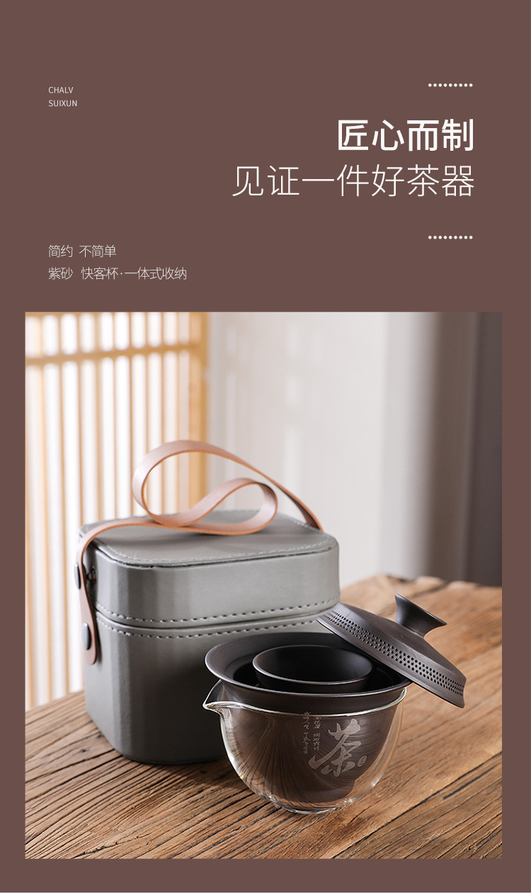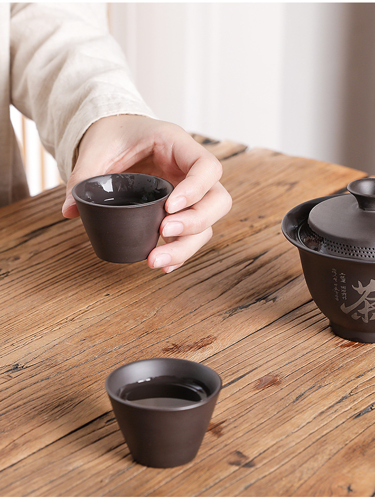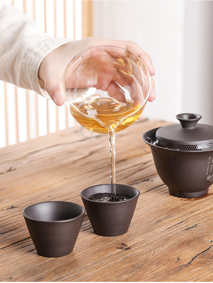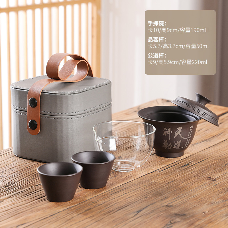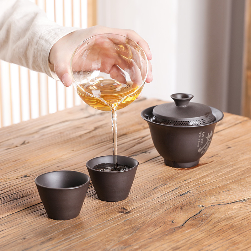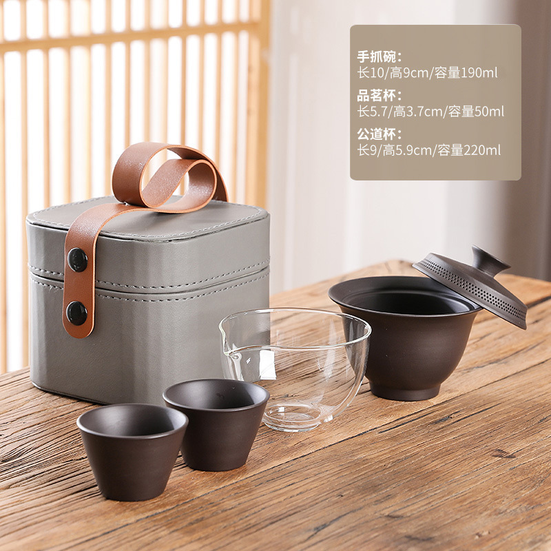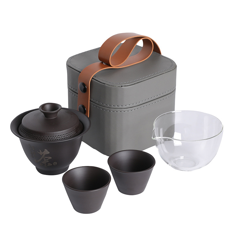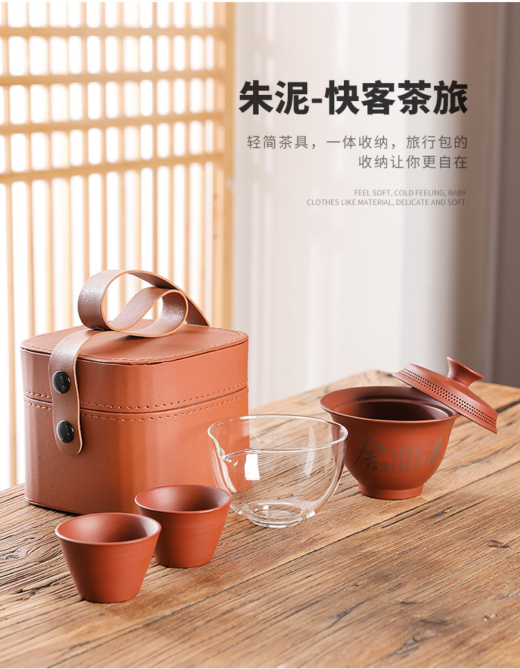 原矿紫砂旅行茶具可悬停盖碗多孔过滤盖碗快客杯手抓碗礼品logo