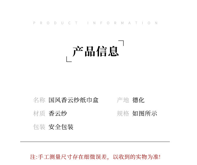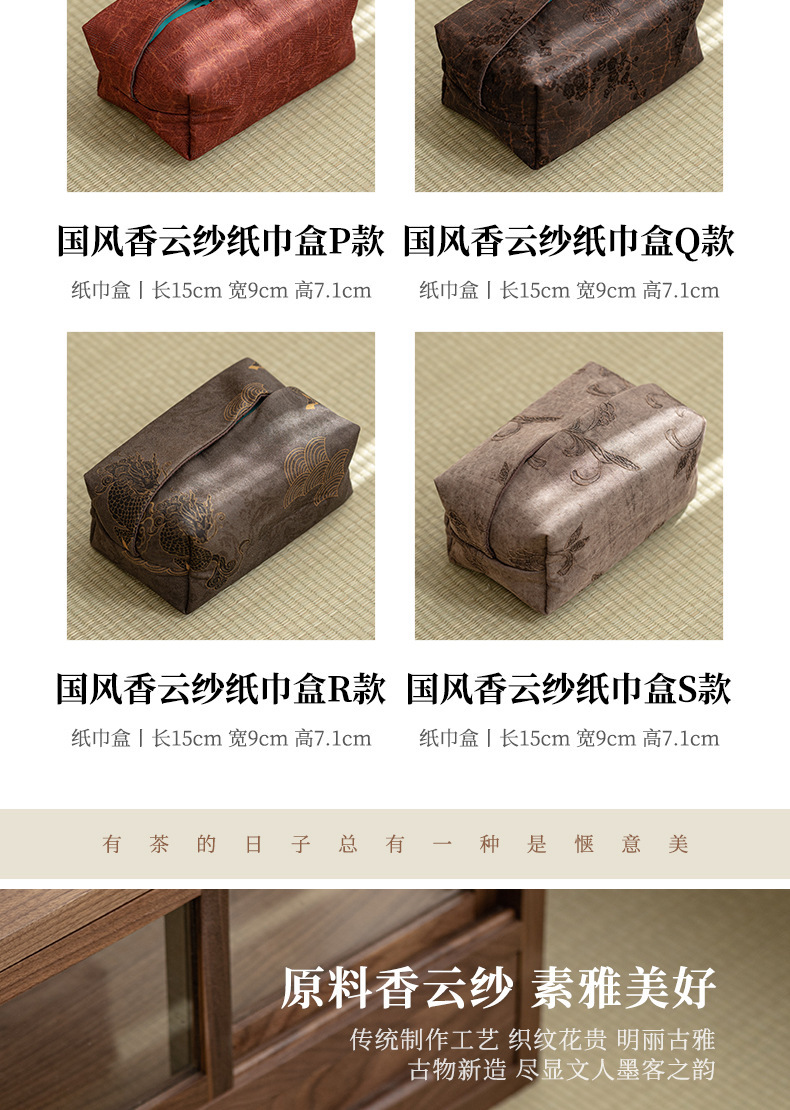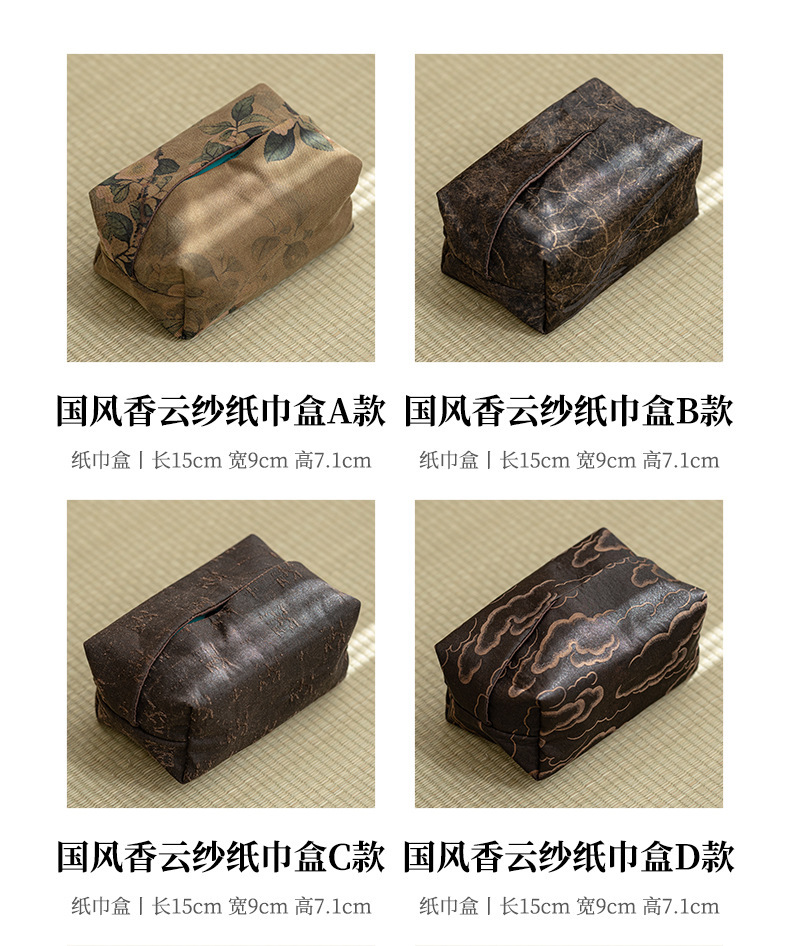 | 国风香云纱纸巾盒 | USD $12.76 | 9998 piece available |