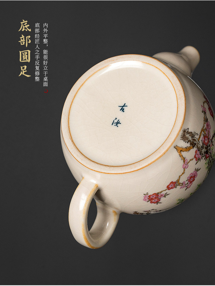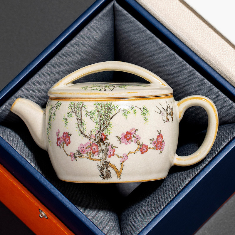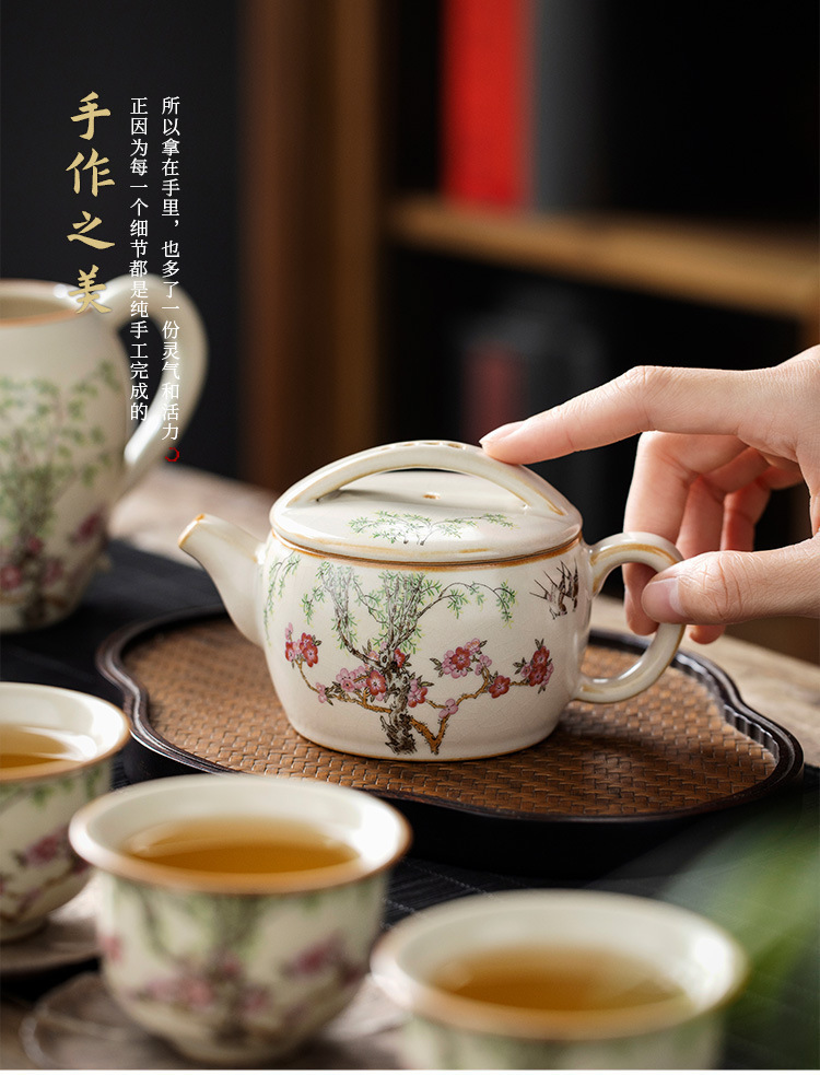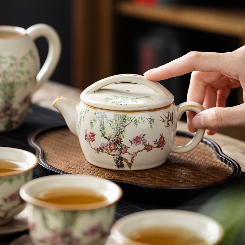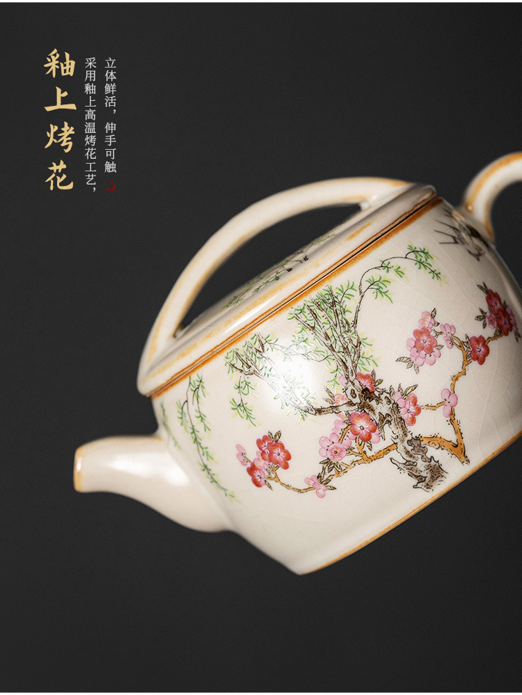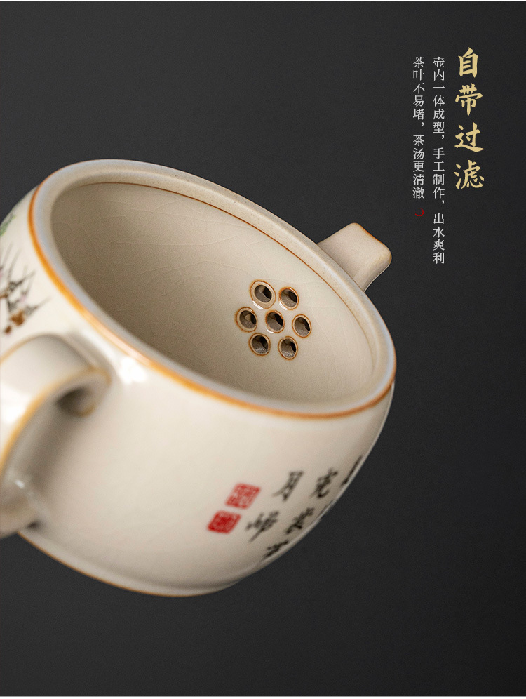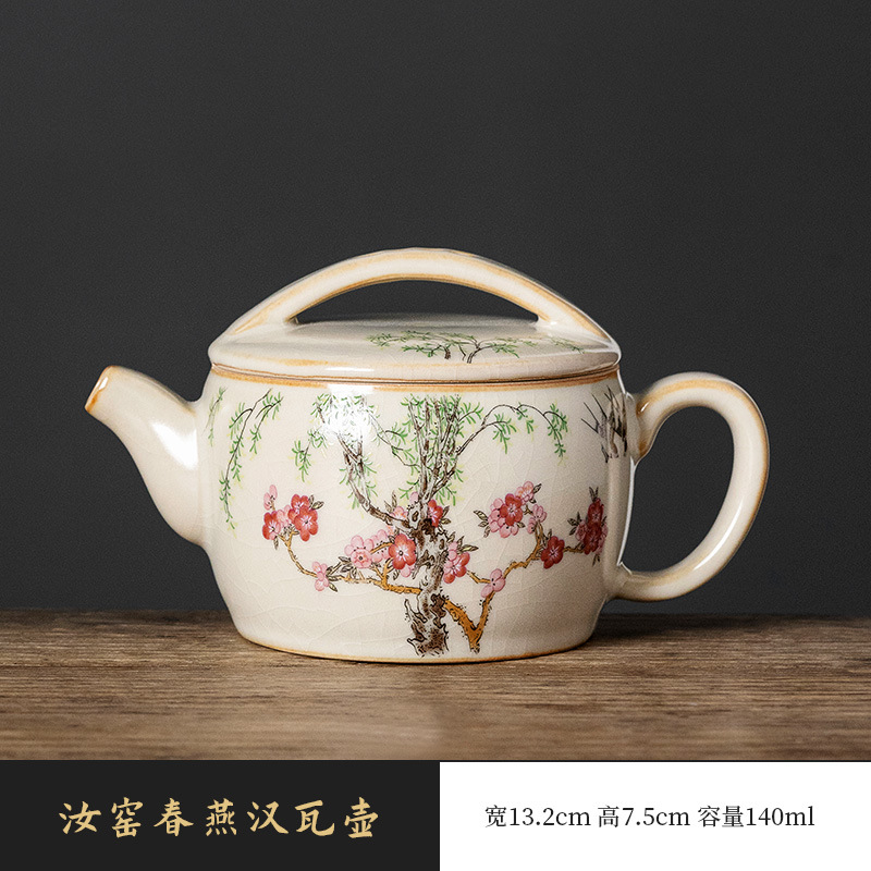 汝窑春燕汉方茶壶家用陶瓷单壶中式功夫茶具茶水分离泡茶壶泡茶器
